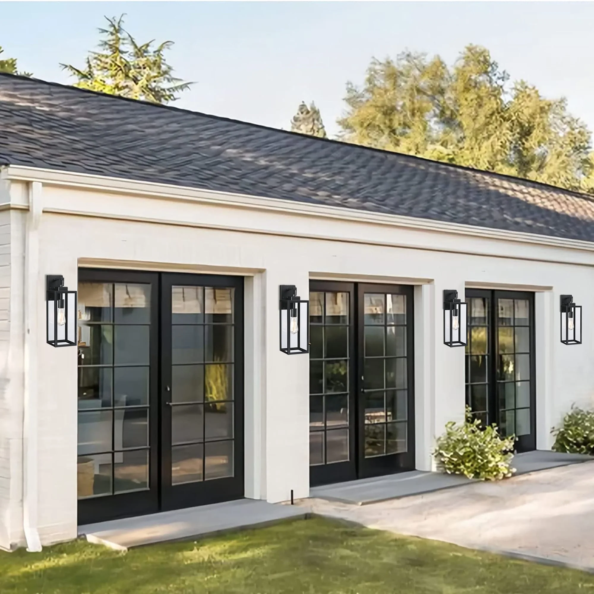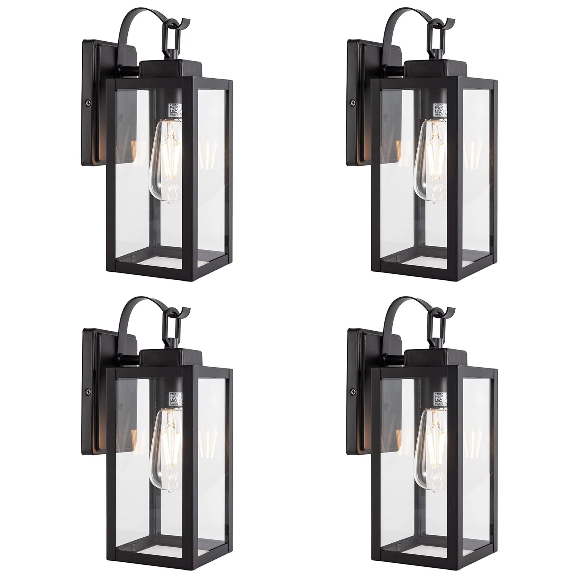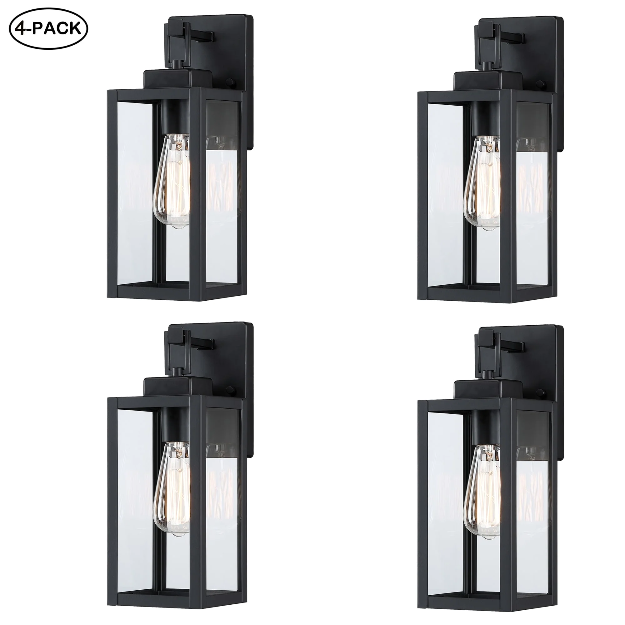 4-pack 1-Light Outdoor Wall Light with Matte Black Finish & Clear glass shade