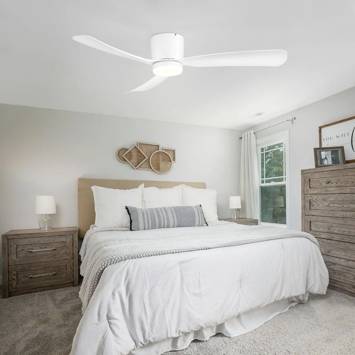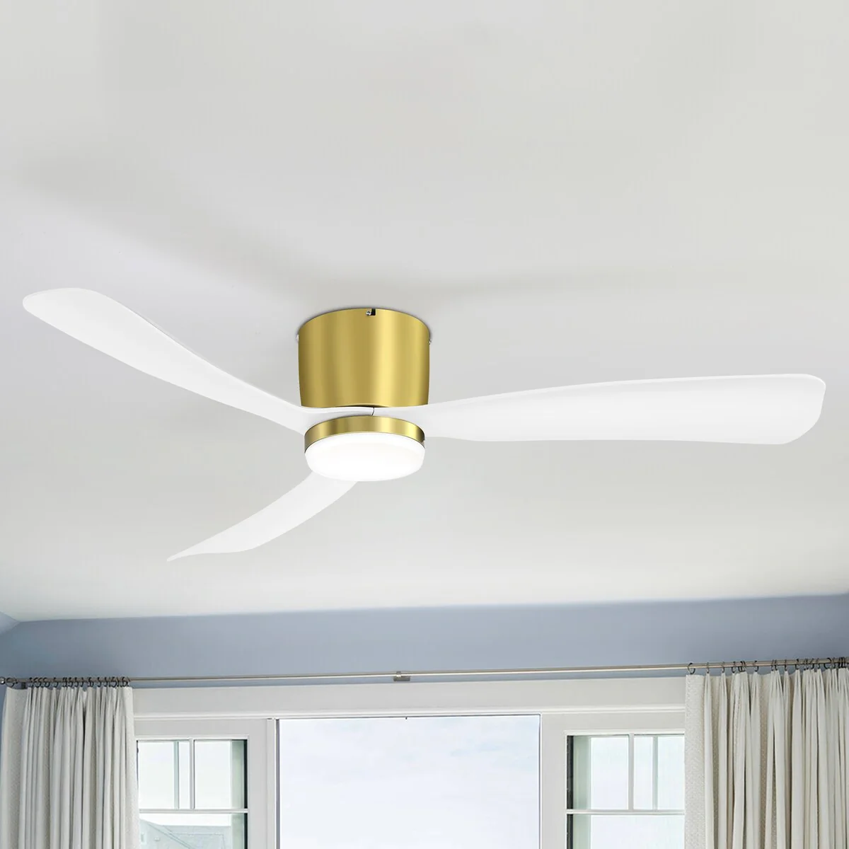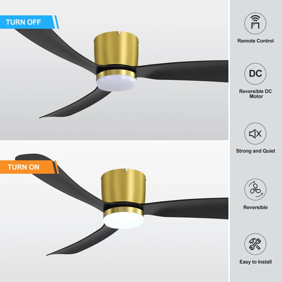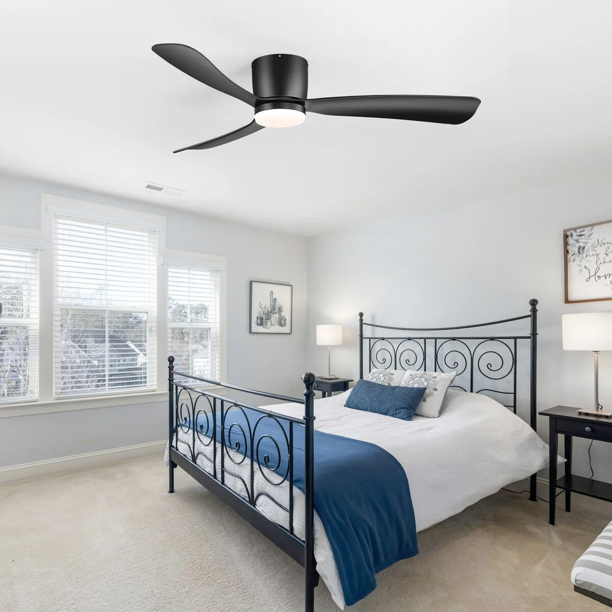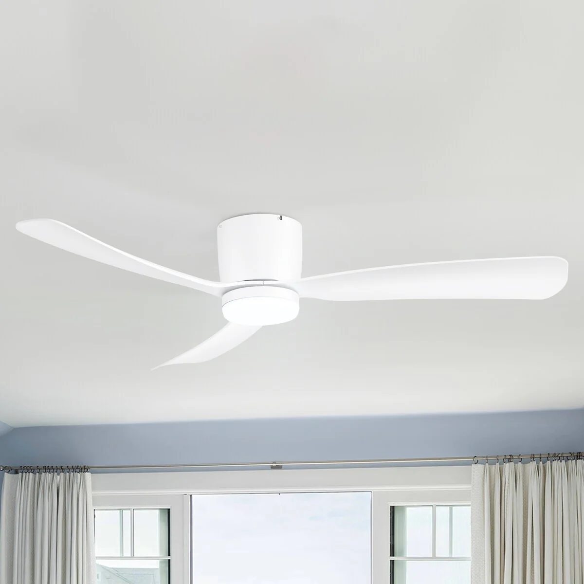 52 Inch Black/White Flush Mount LED Ceiling Fan with Lights Remote(3-Blade)