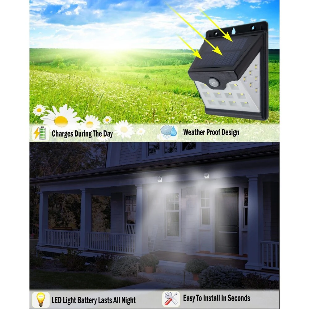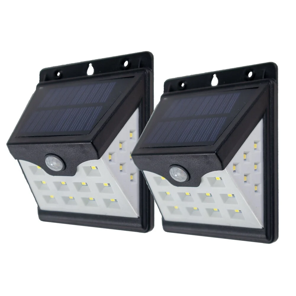 2pc - 22 LED Solar Motion Security Sensor Lights With Side LEDs - Wireless Waterproof Outdoor Light With Auto On/Off - N/A