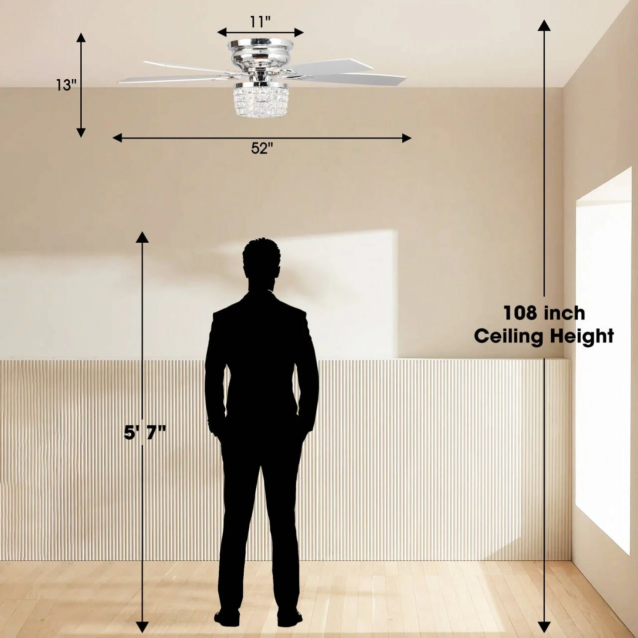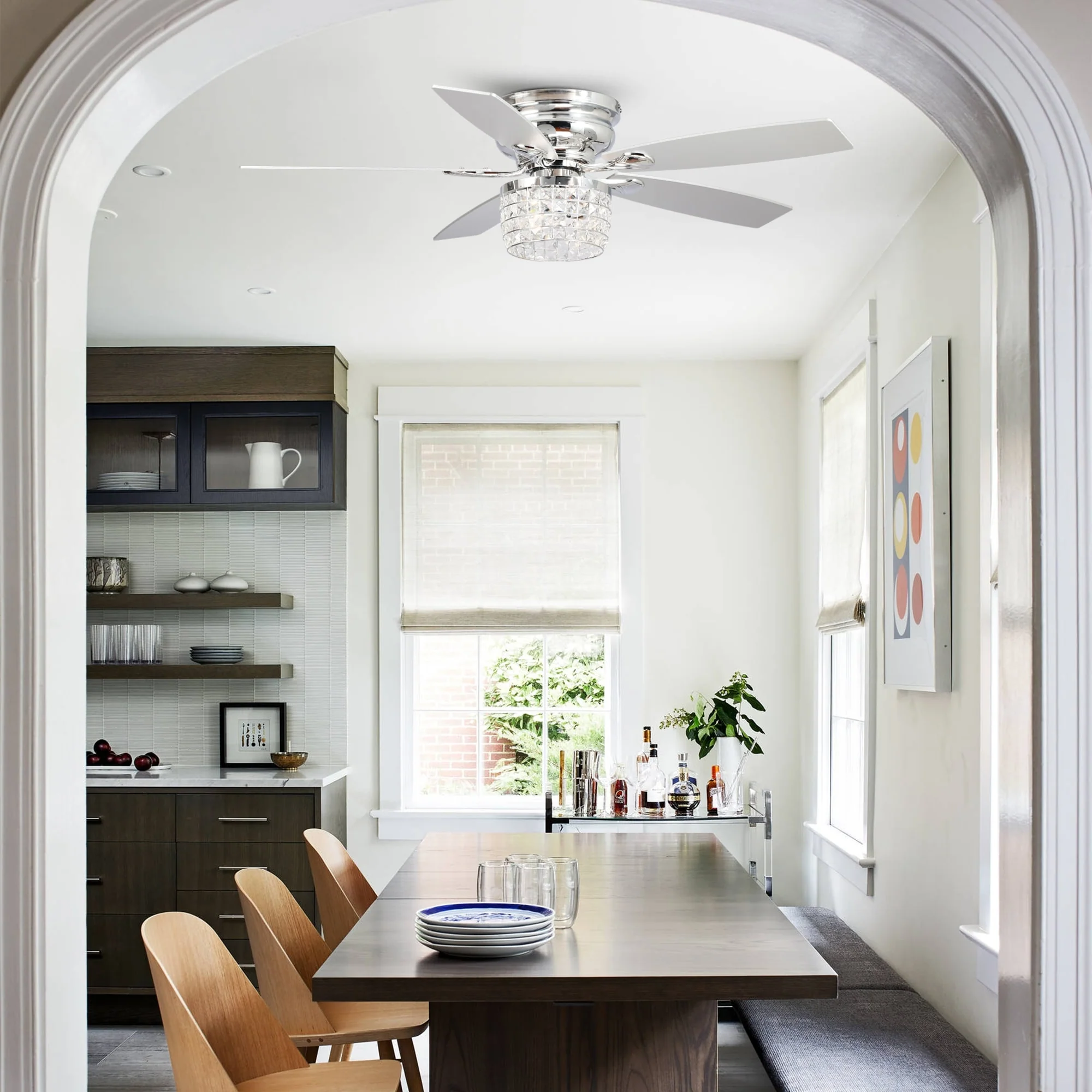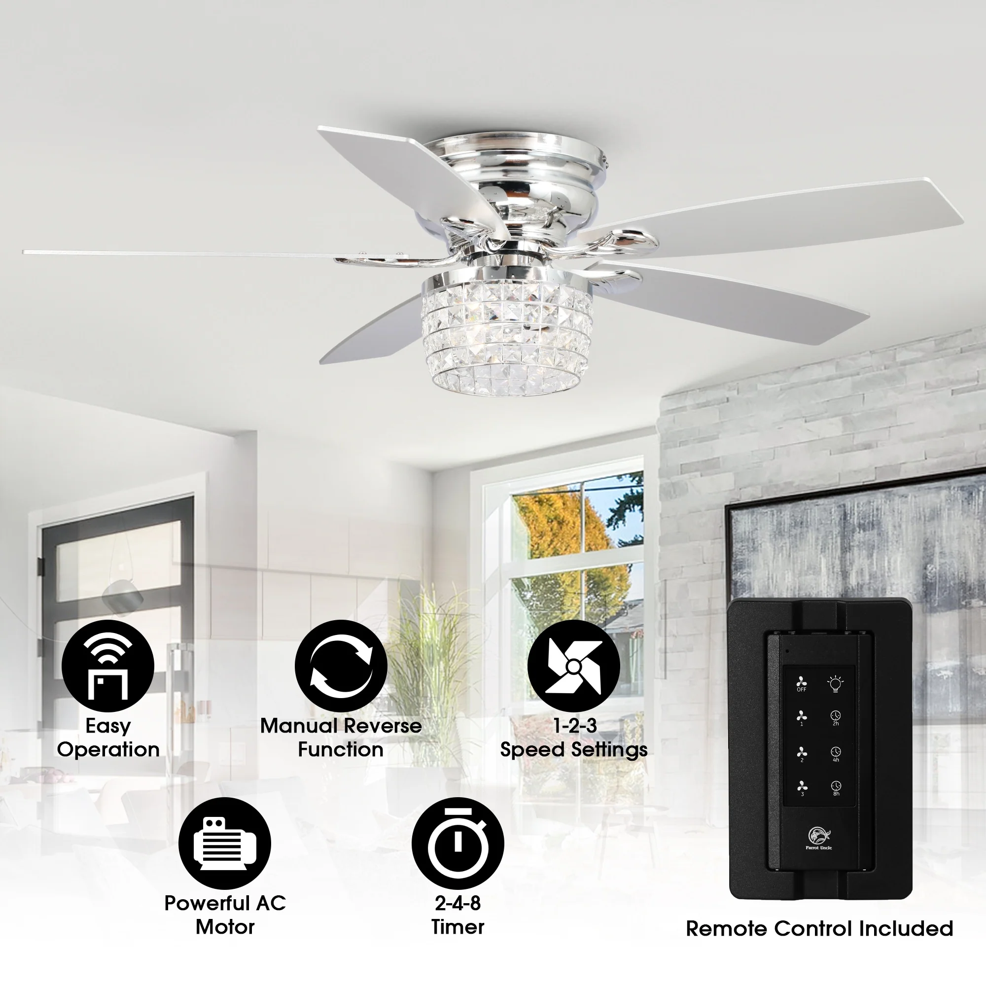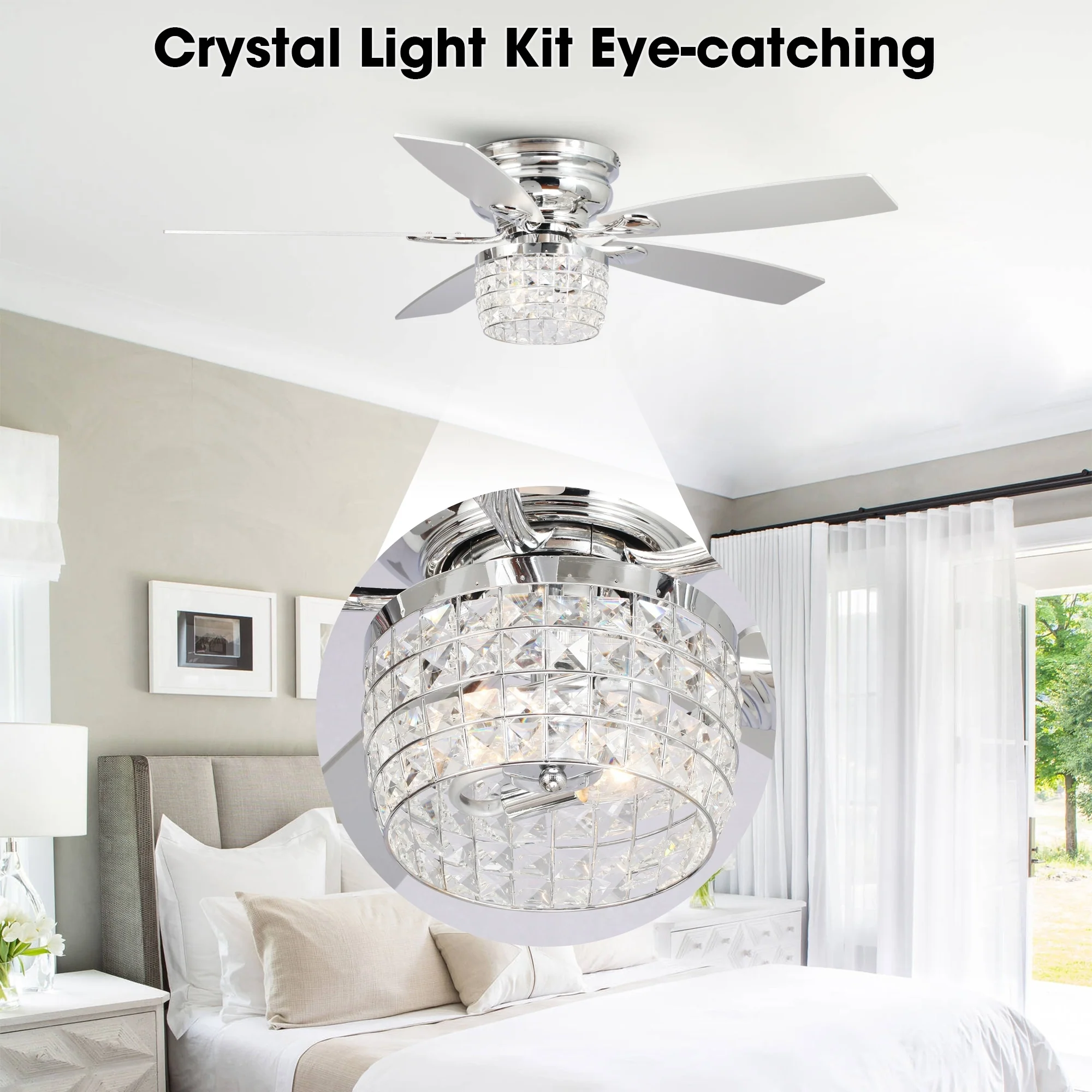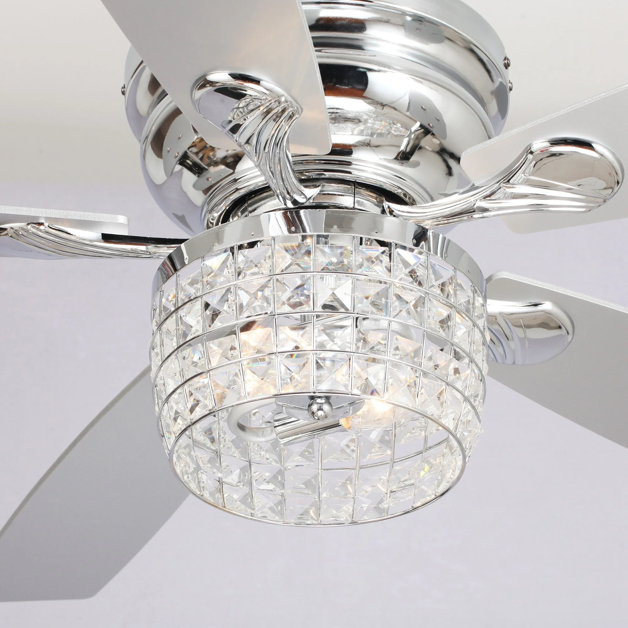 42-inch Chrome Retractable 3-Blade Crystal Chandelier Ceiling Fan with Remote and Light Kit