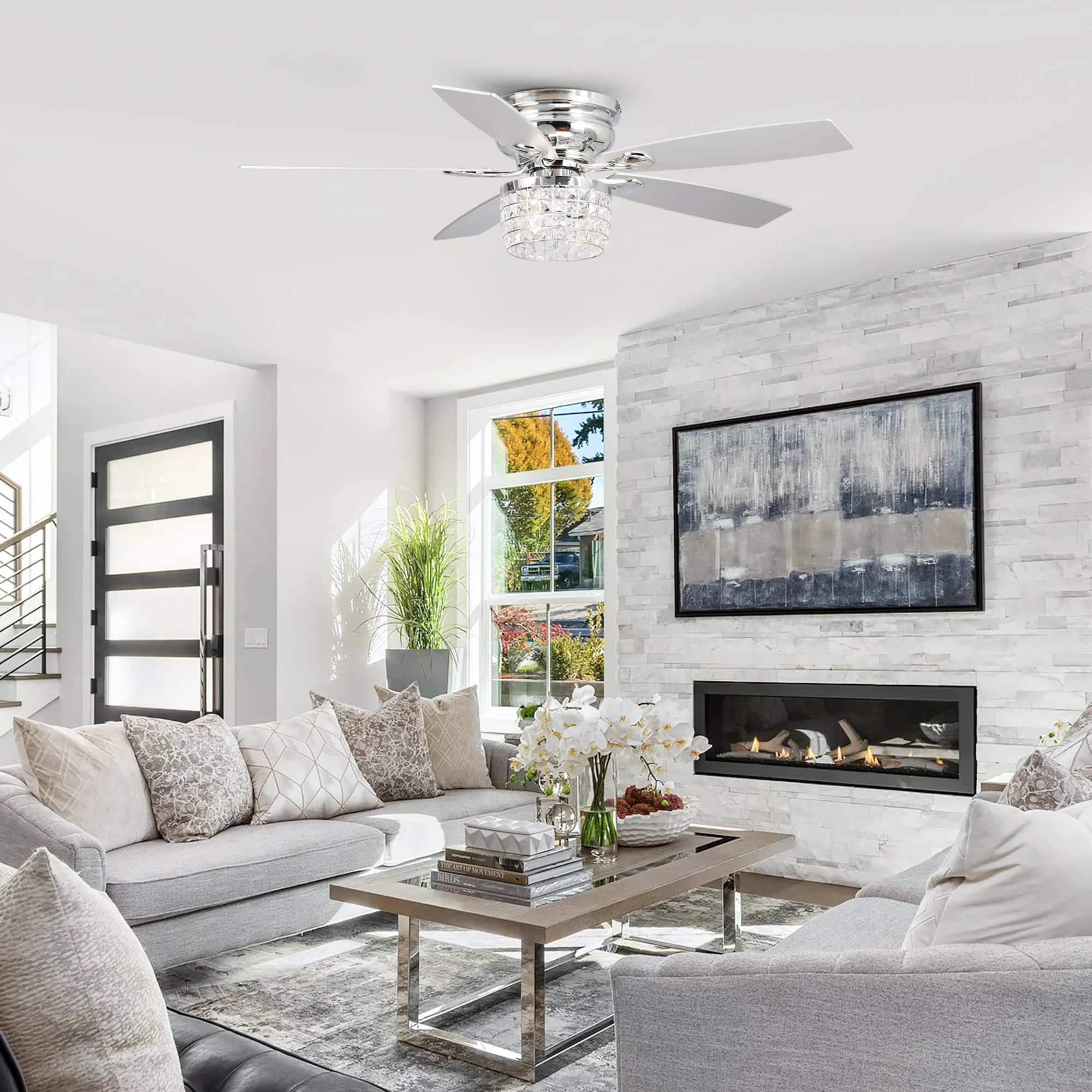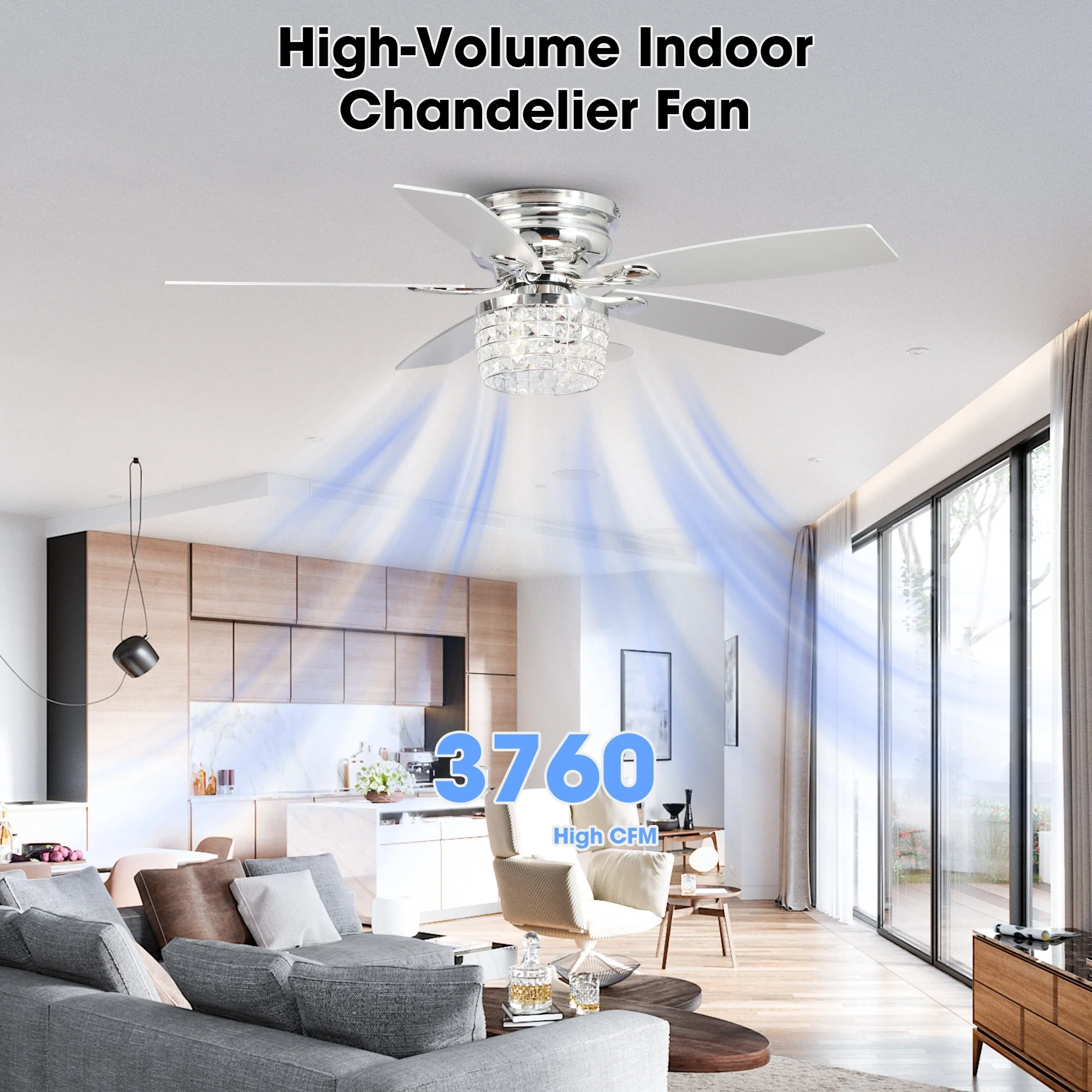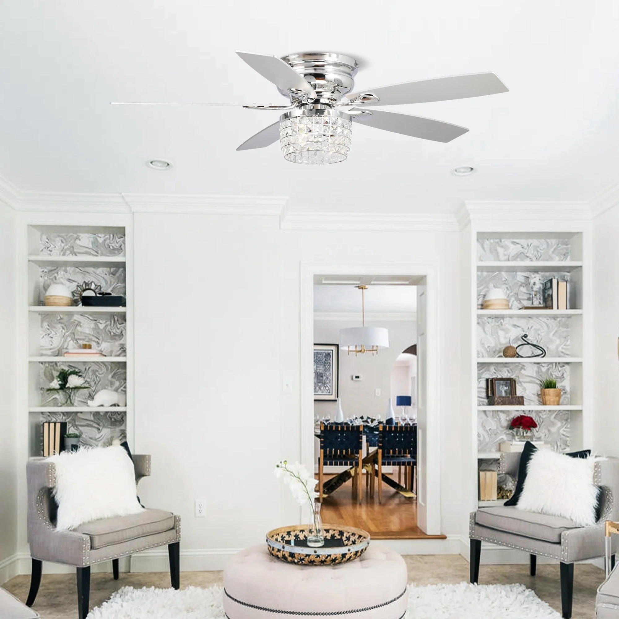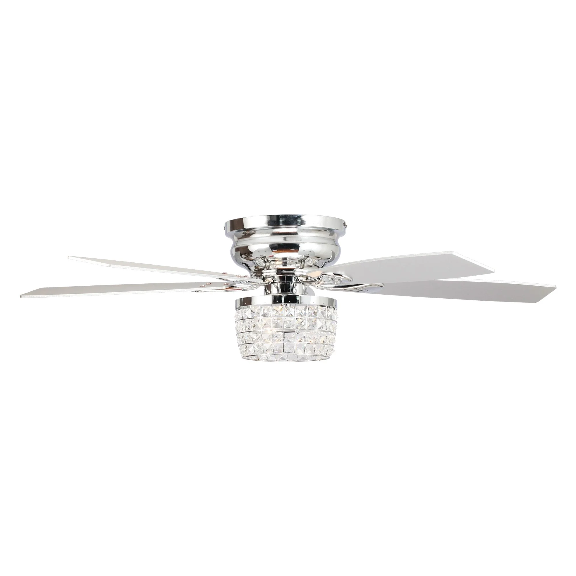 52" Chrome Crystal Flush Mount Ceiling Fan with Light Kit and Remote