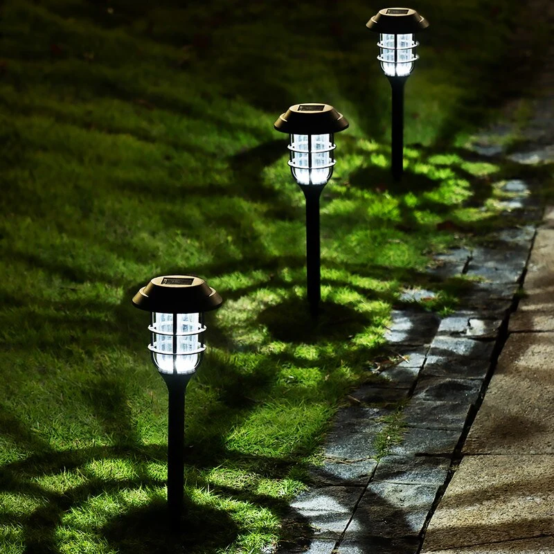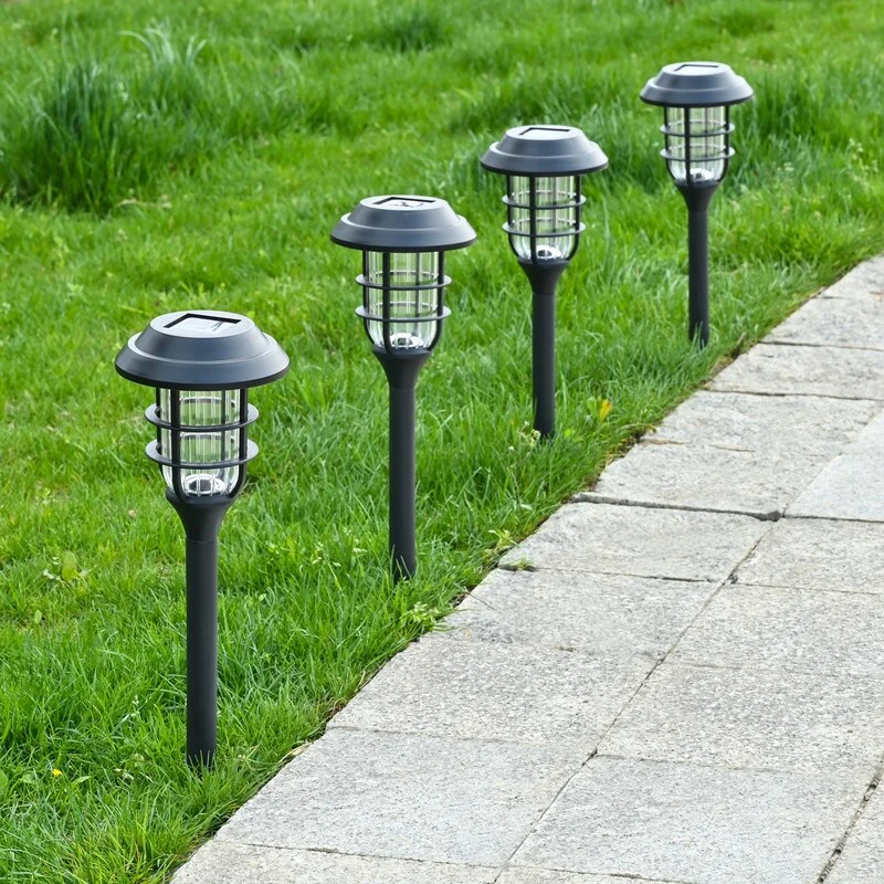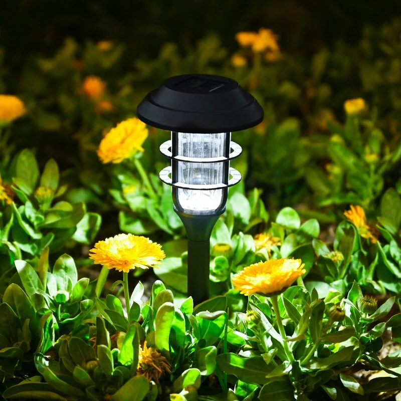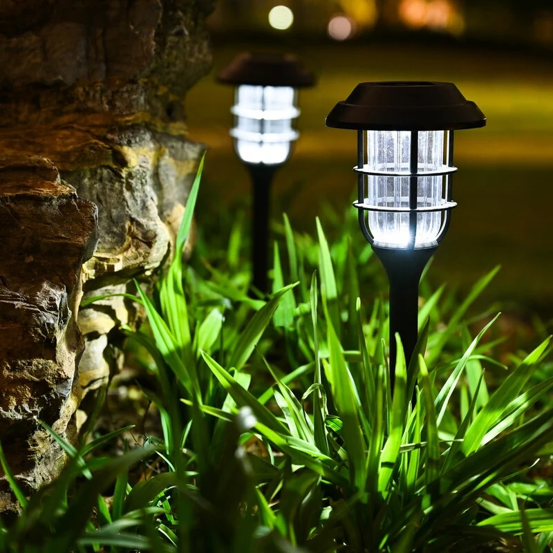 Black Solar Powered Decortice Lantern Outdoor 8-Pack Pathway LED Light - 8 Pack