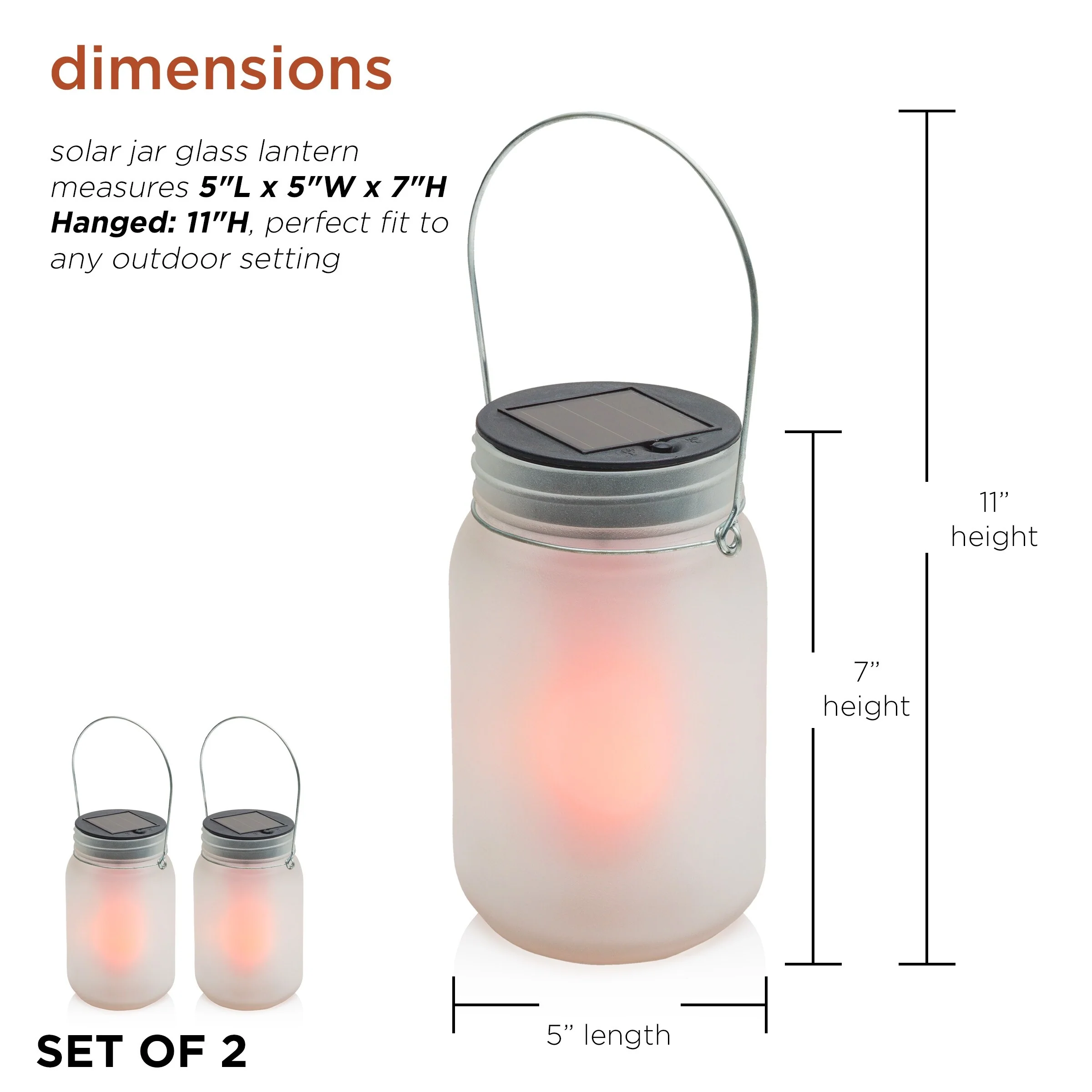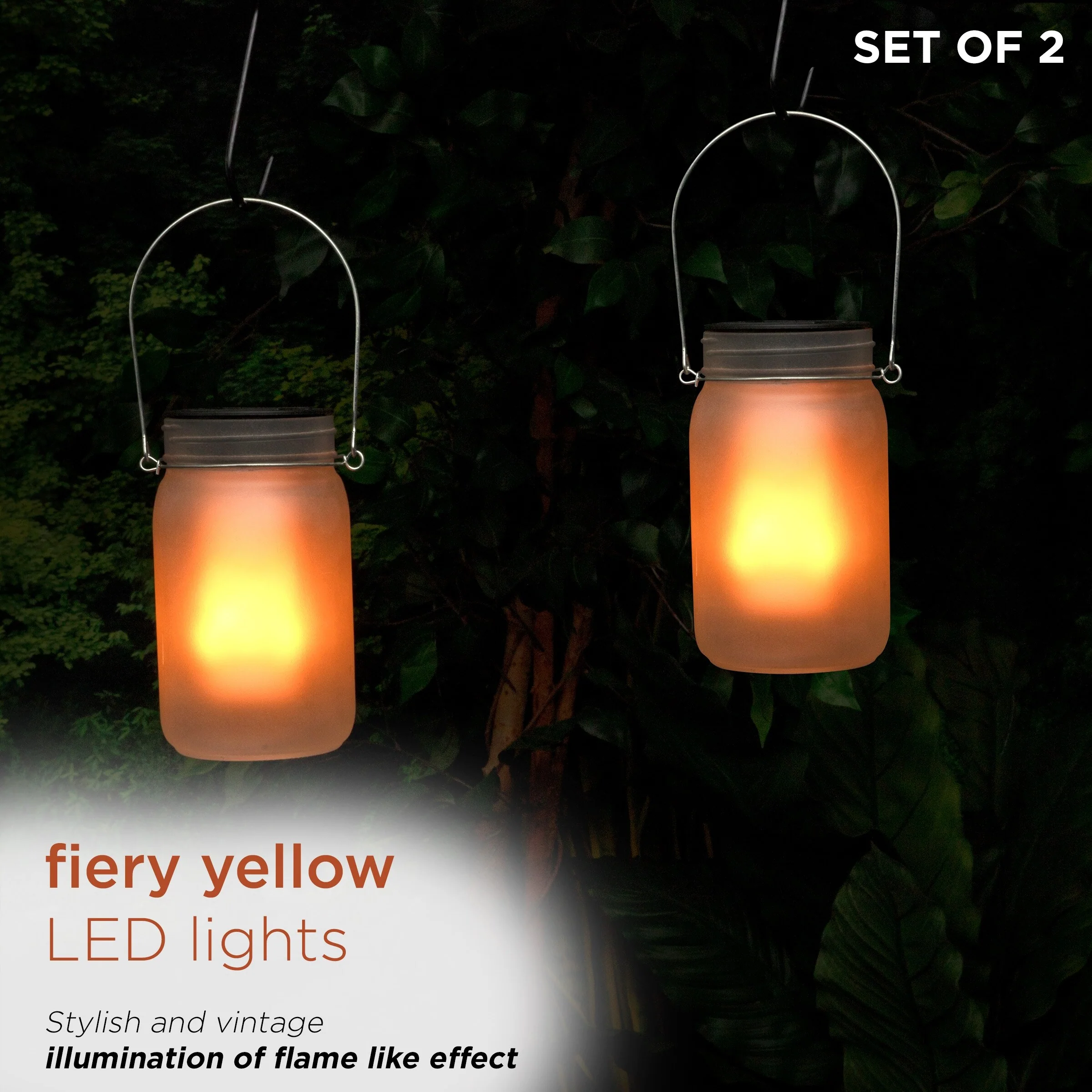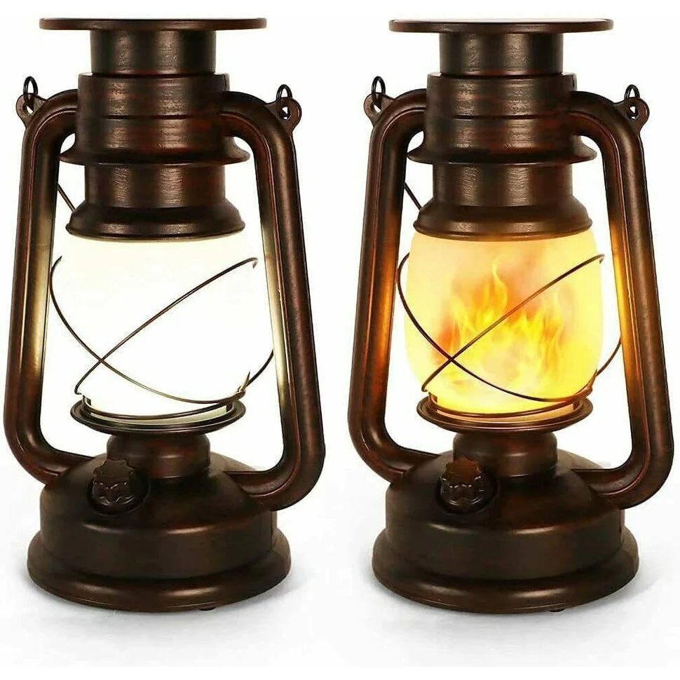 2 PCS Solar Flickering Flame LED Vintage Hanging Lantern