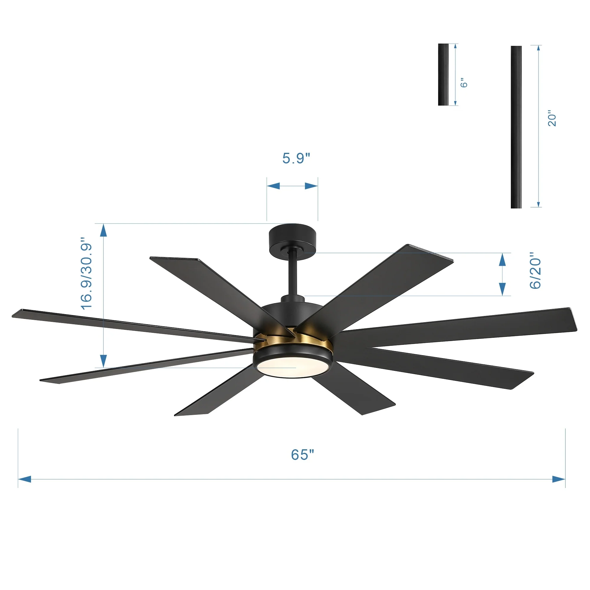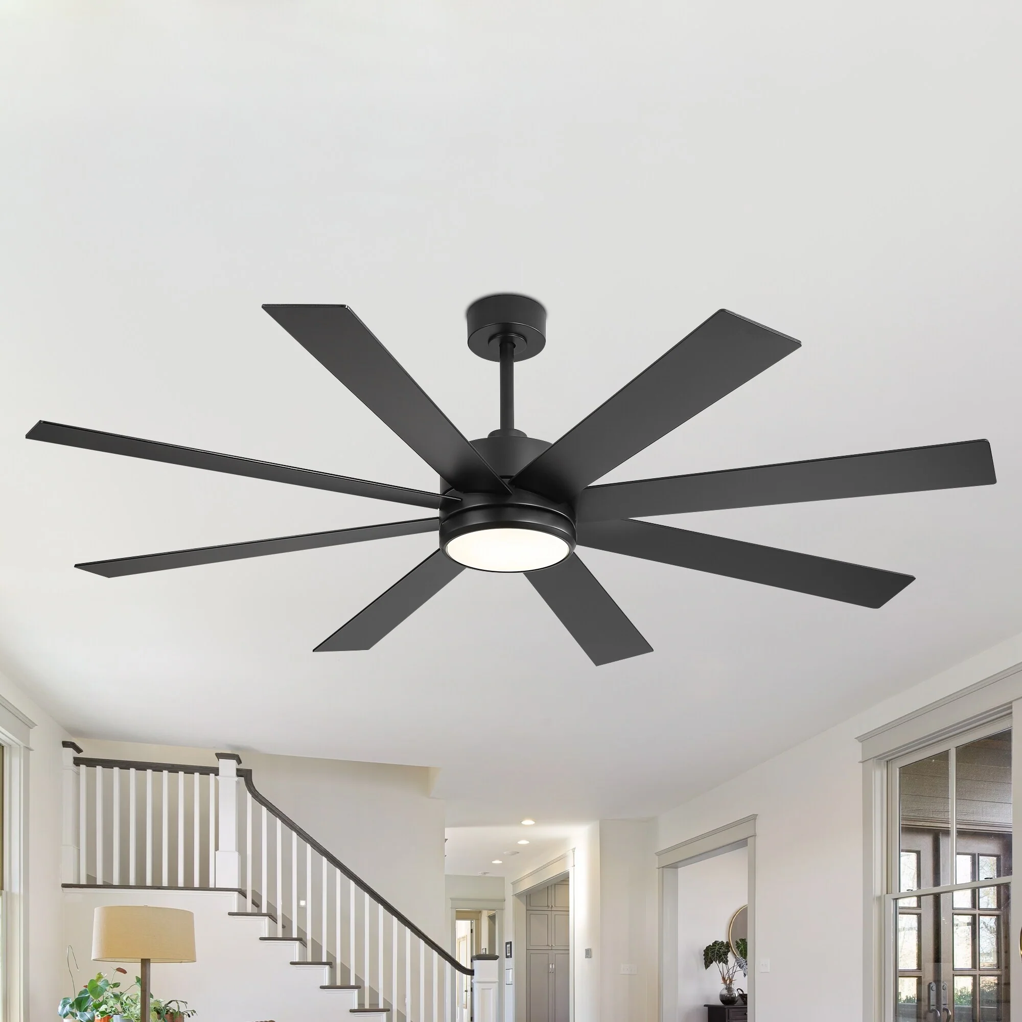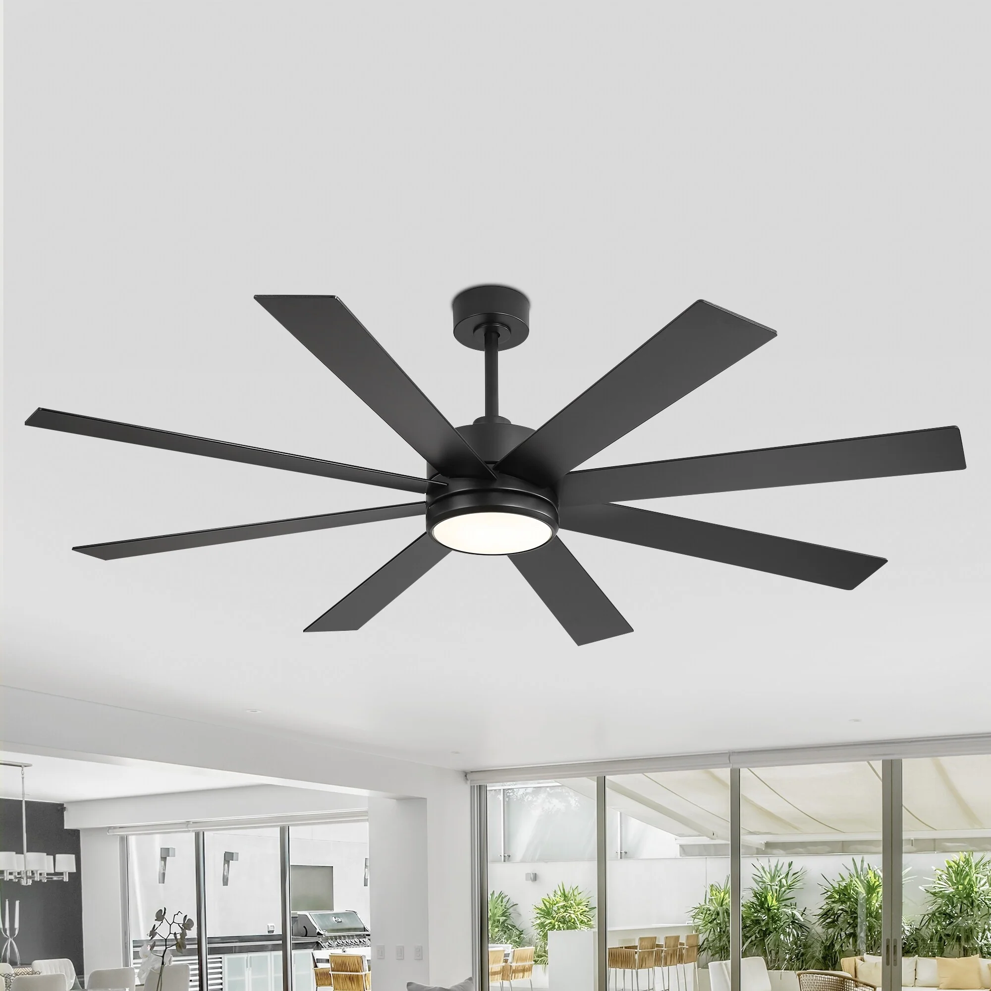 65 Inch 8-Blade Black LED Ceiling Fan with Light and Remote