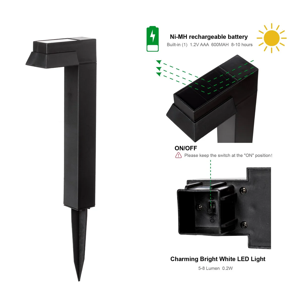 8 Pack 2 LED Solar Deck Lights Solar Lights Waterproof