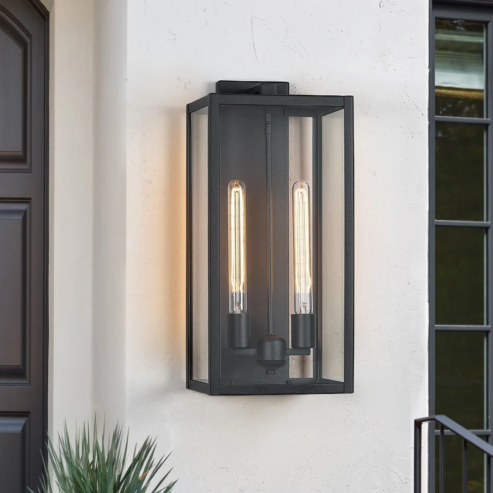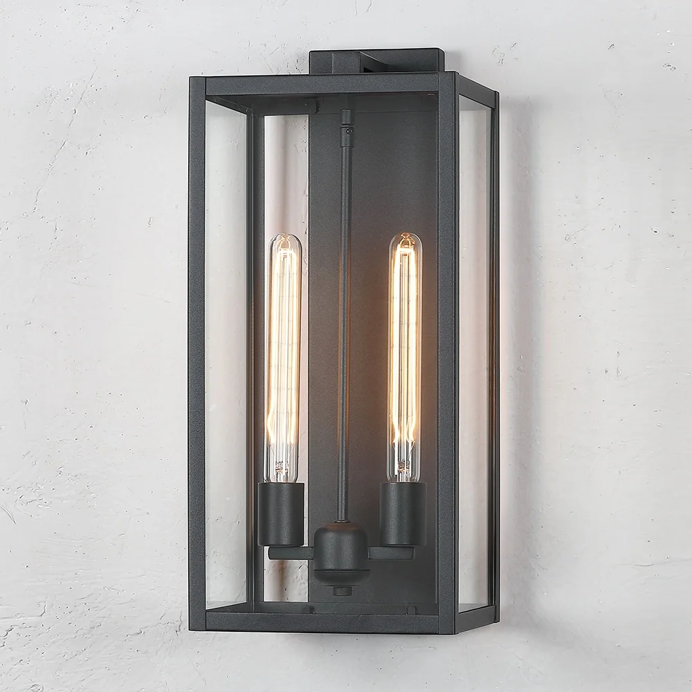 Forti 2-Light Modern Black Outdoor Wall Sconce Lantern Light - 20.5in H