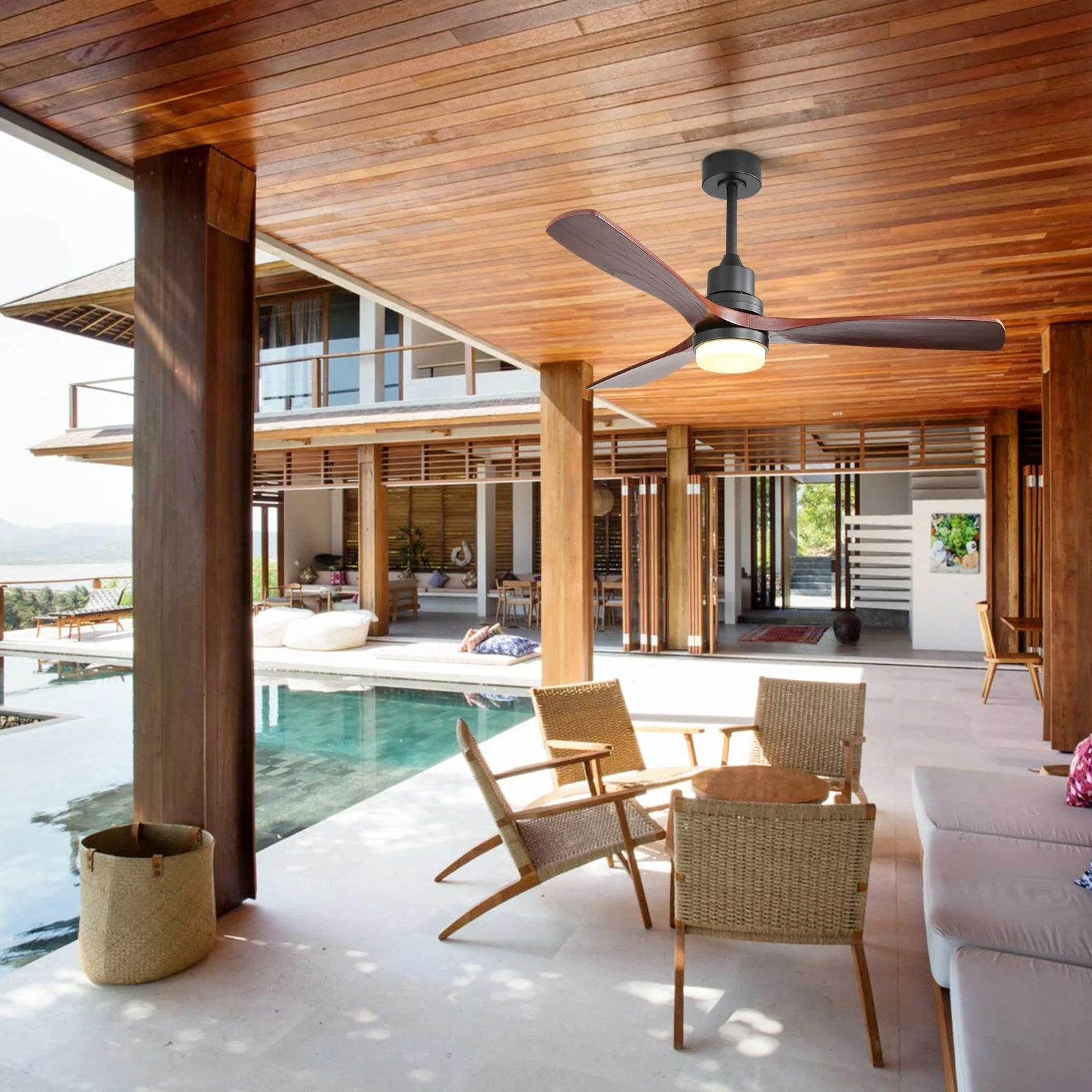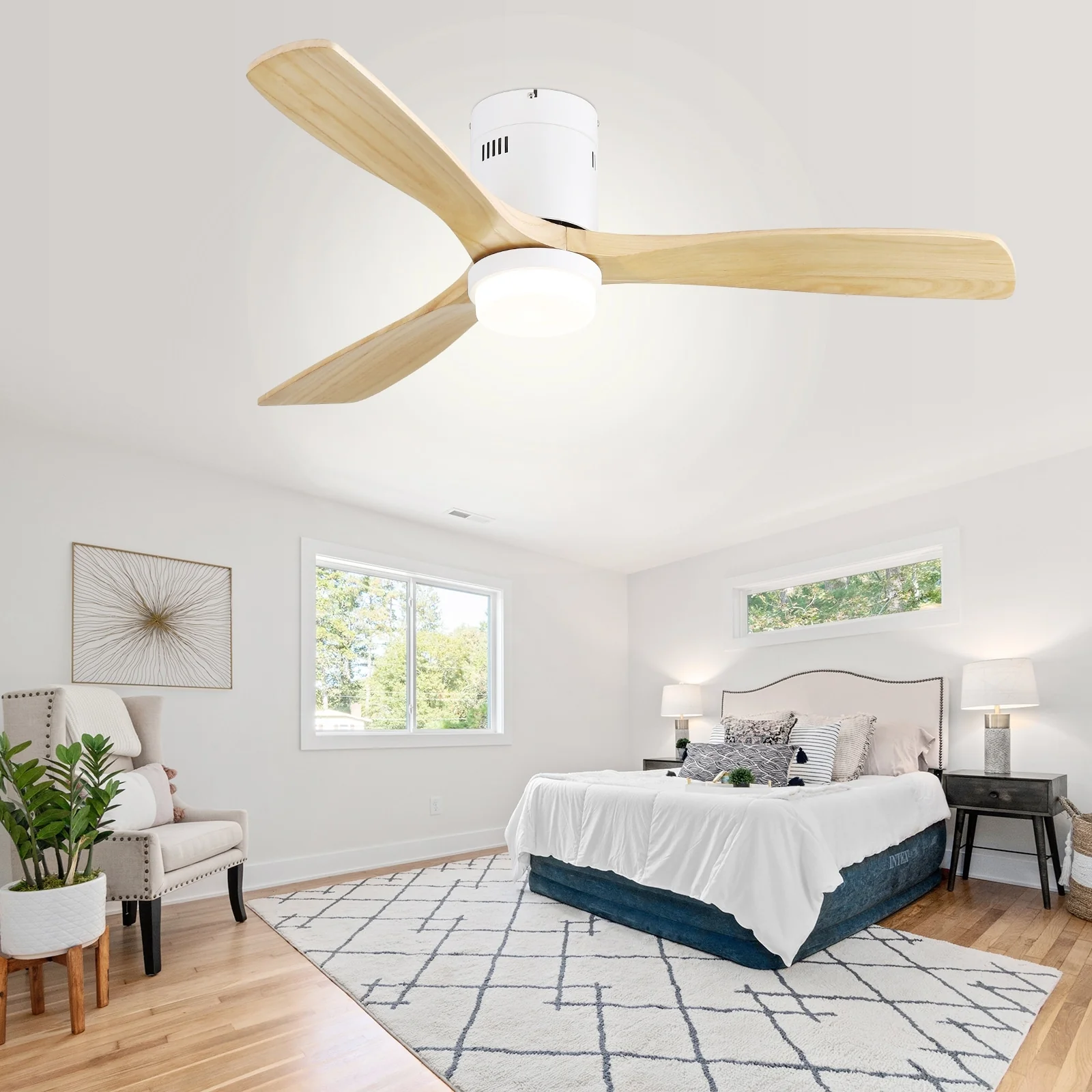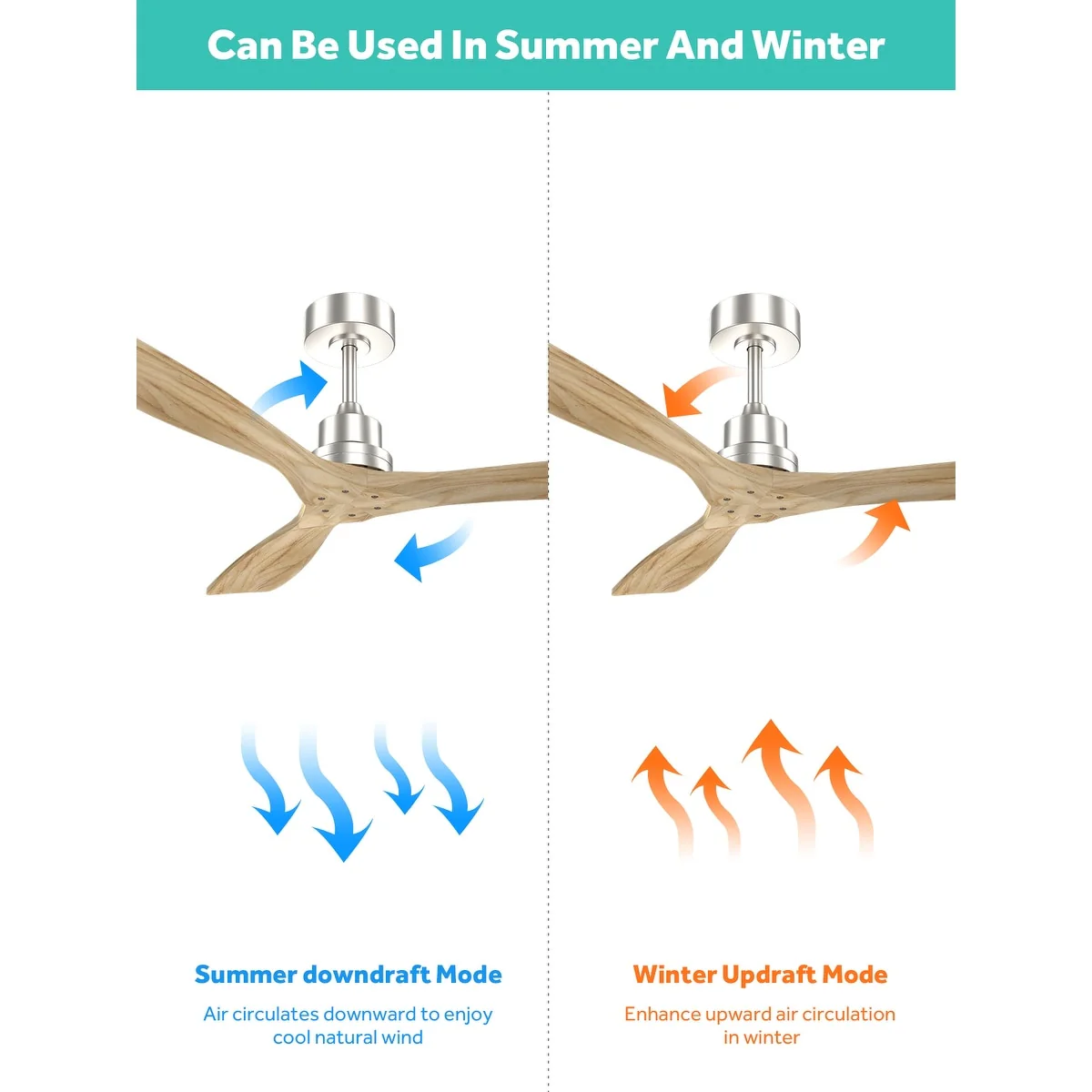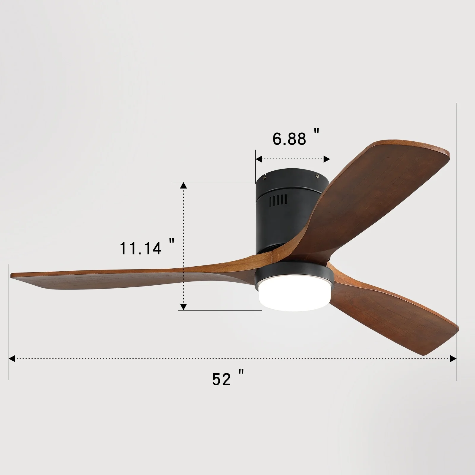 Sofucor 52" Indoor Wood Ceiling Fan Light with Remote, Integrated Light Optional