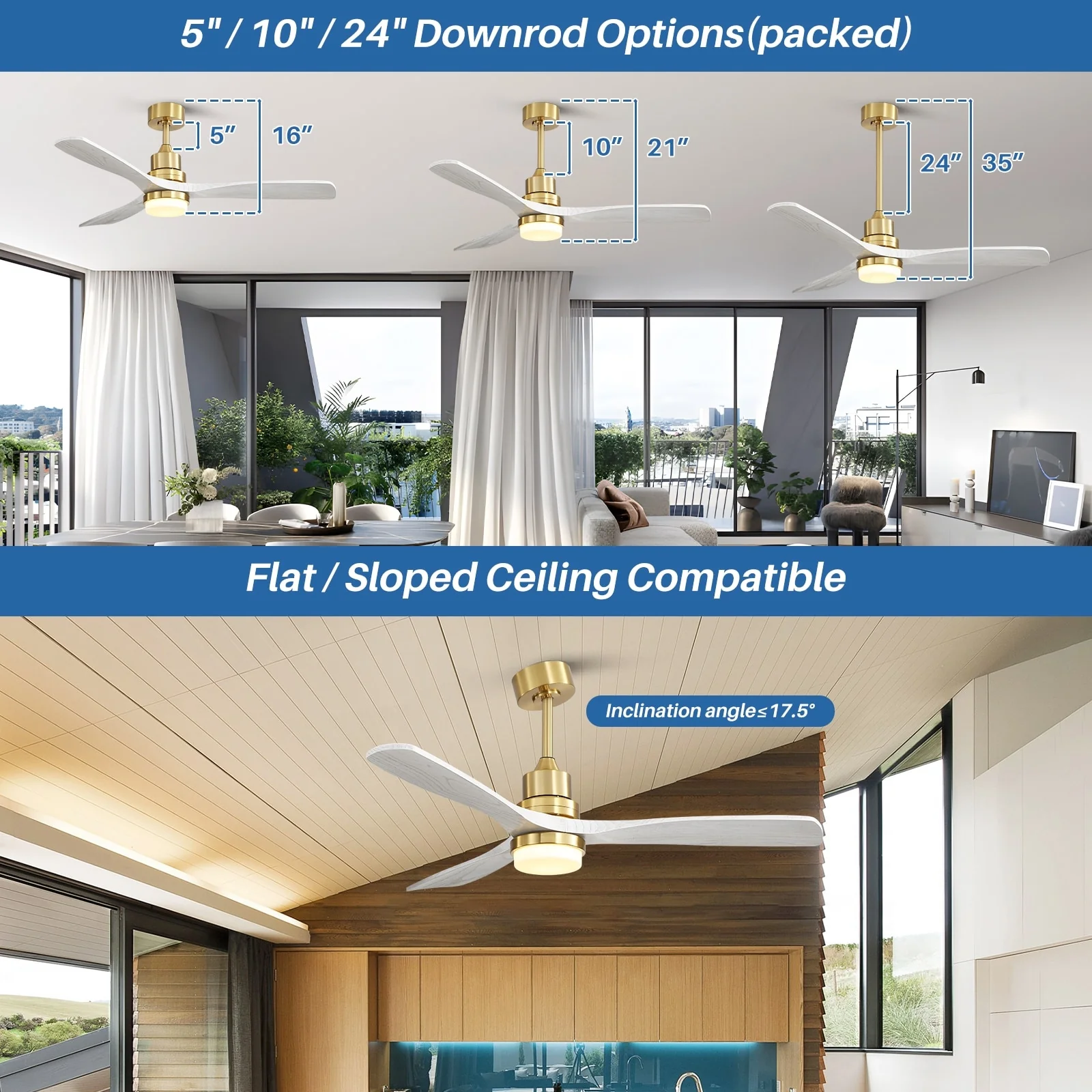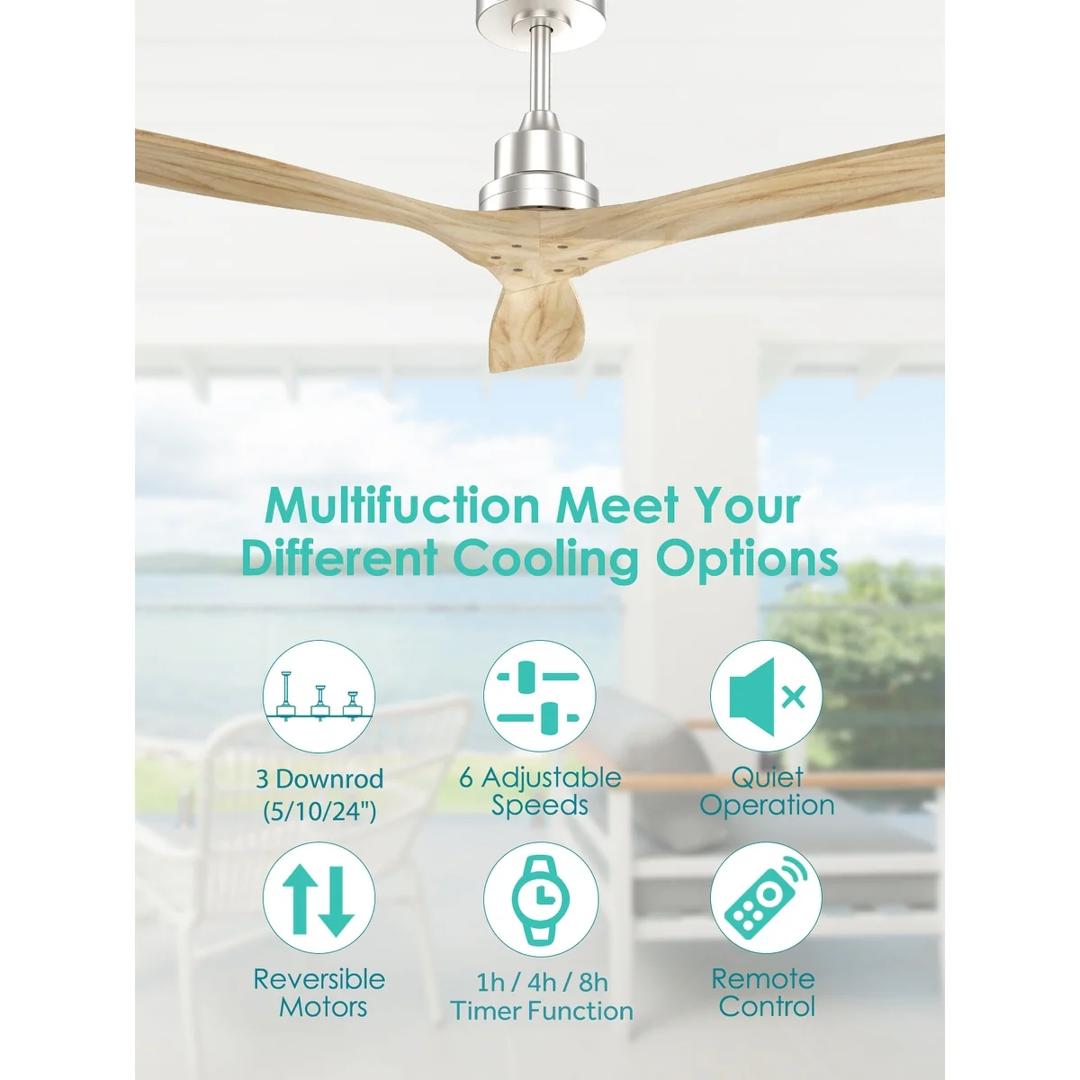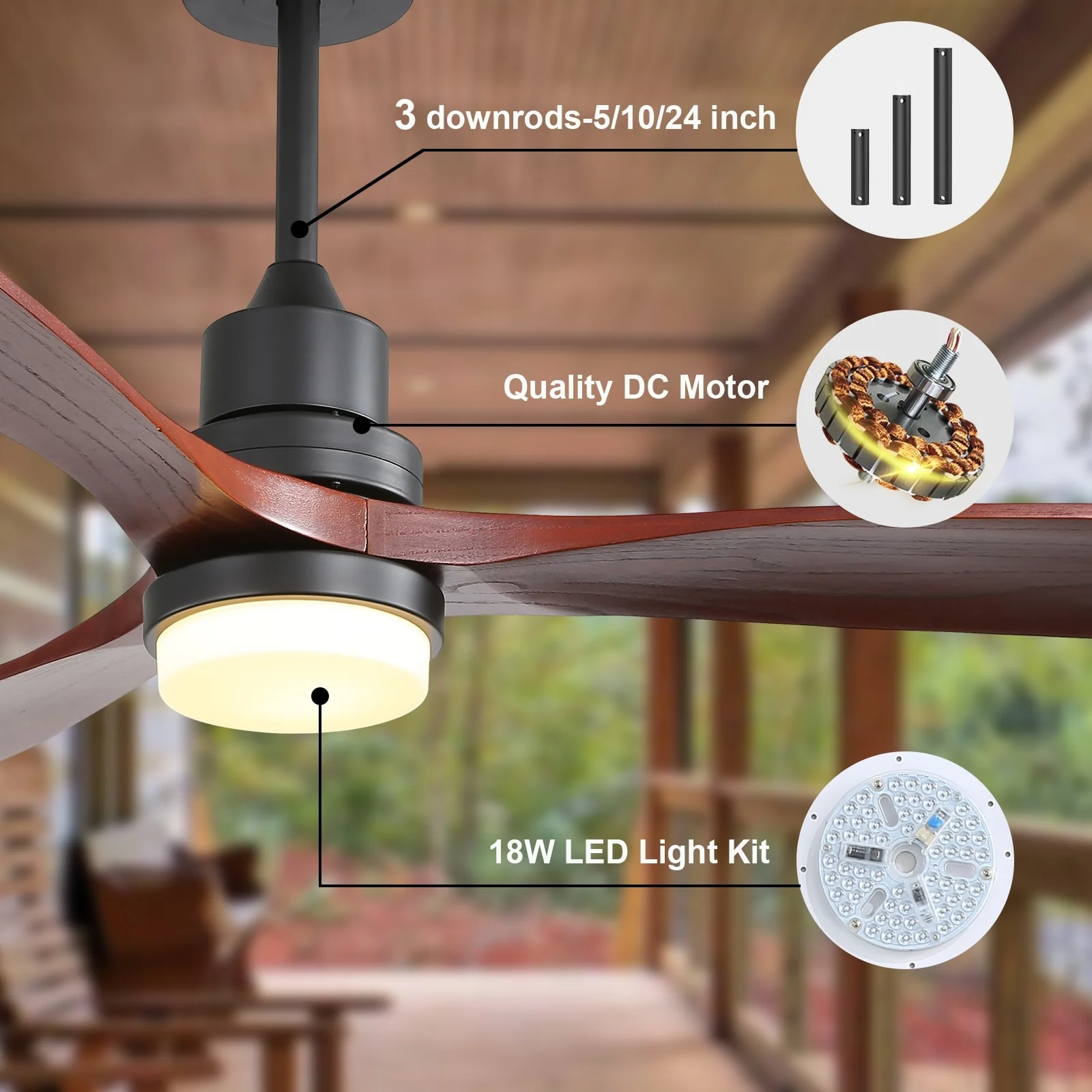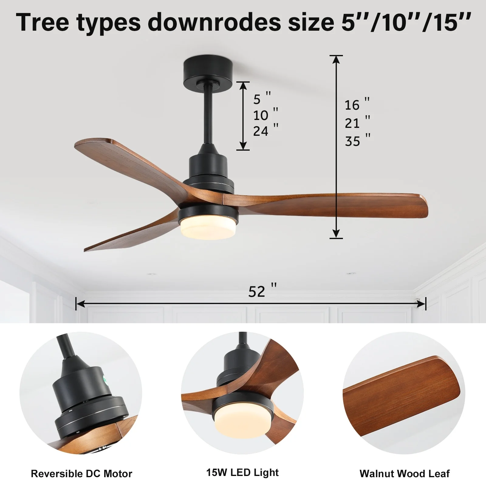 Sofucor 52" Indoor Wood Ceiling Fan Light with Remote, Integrated Light Optional