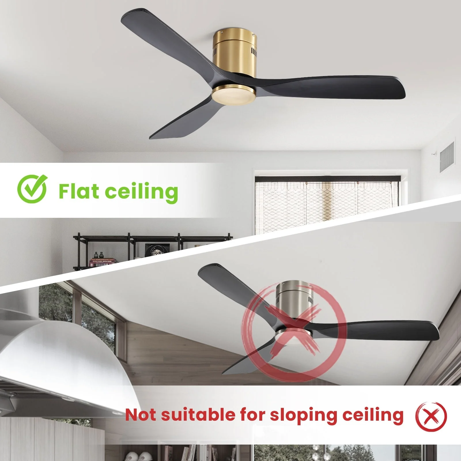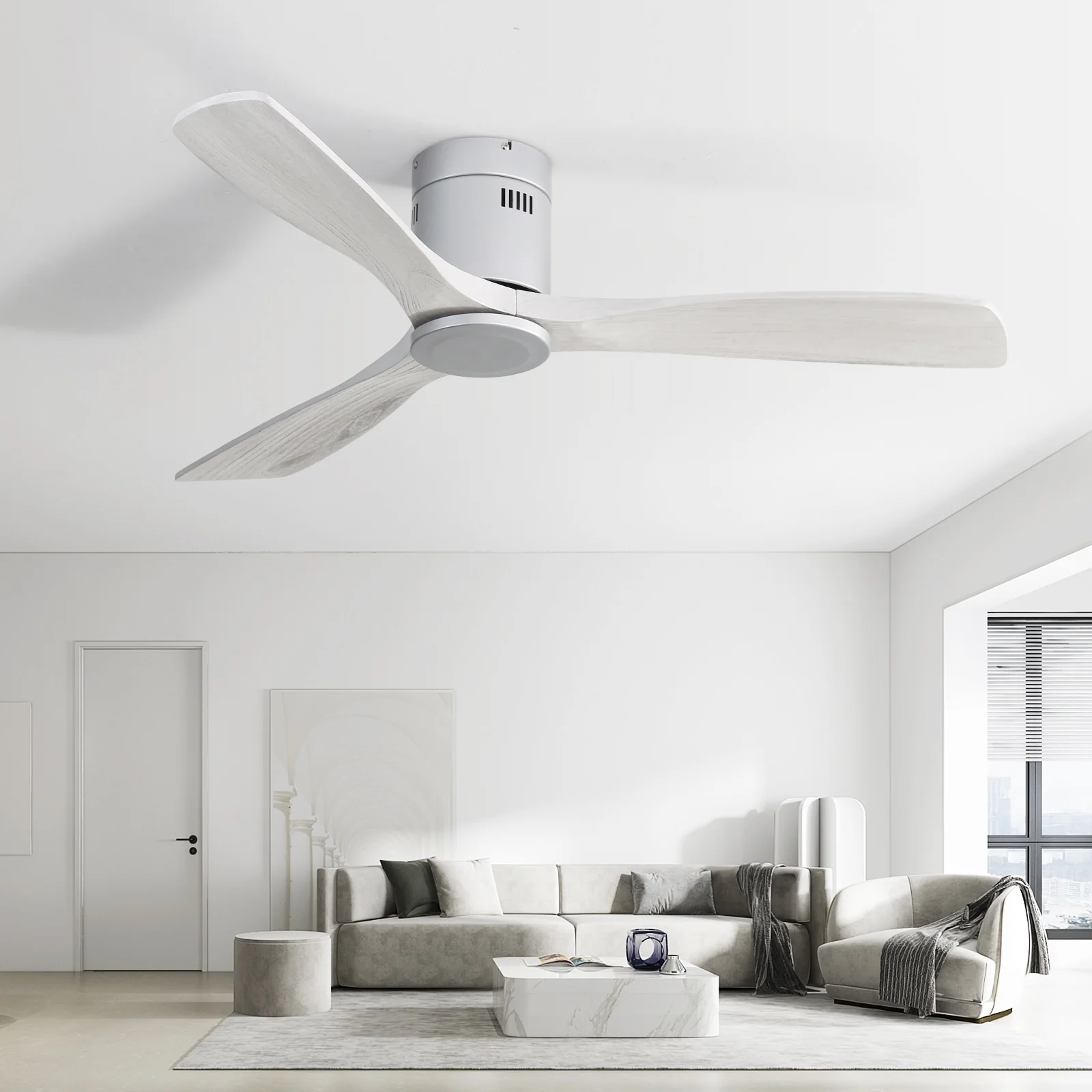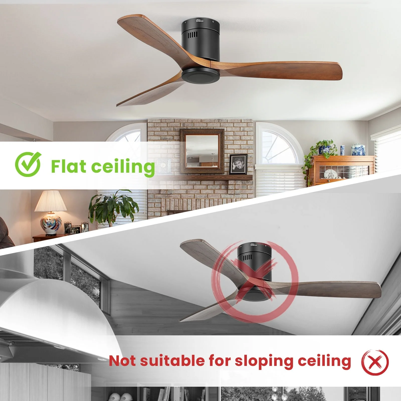 Sofucor 52 Inch Flush Mount Ceiling Fan with Remote, Reversible Motor,Integrated Light Optional