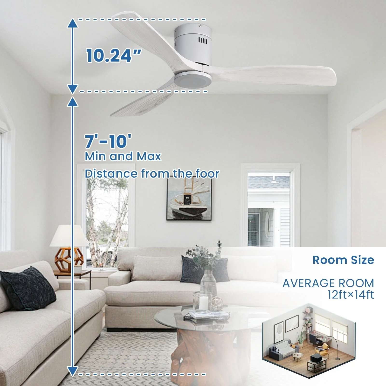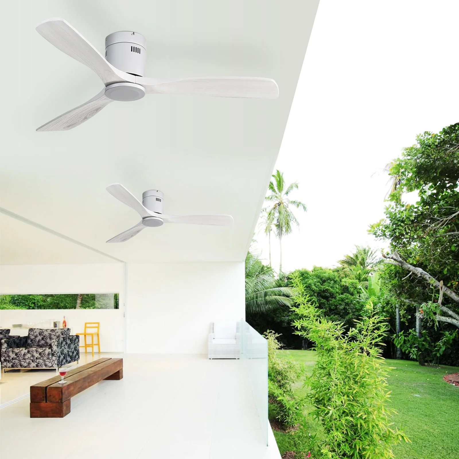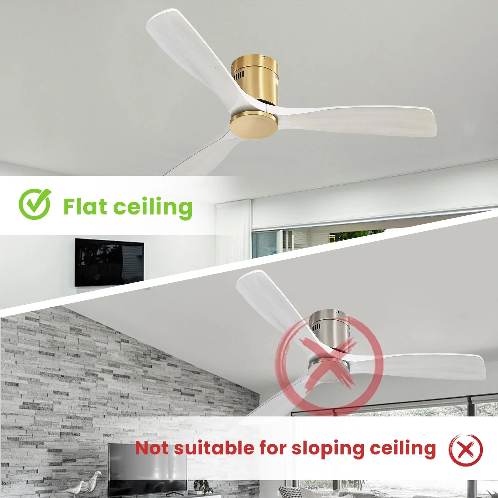 Sofucor 52 Inch Flush Mount Ceiling Fan with Remote, Reversible Motor,Integrated Light Optional