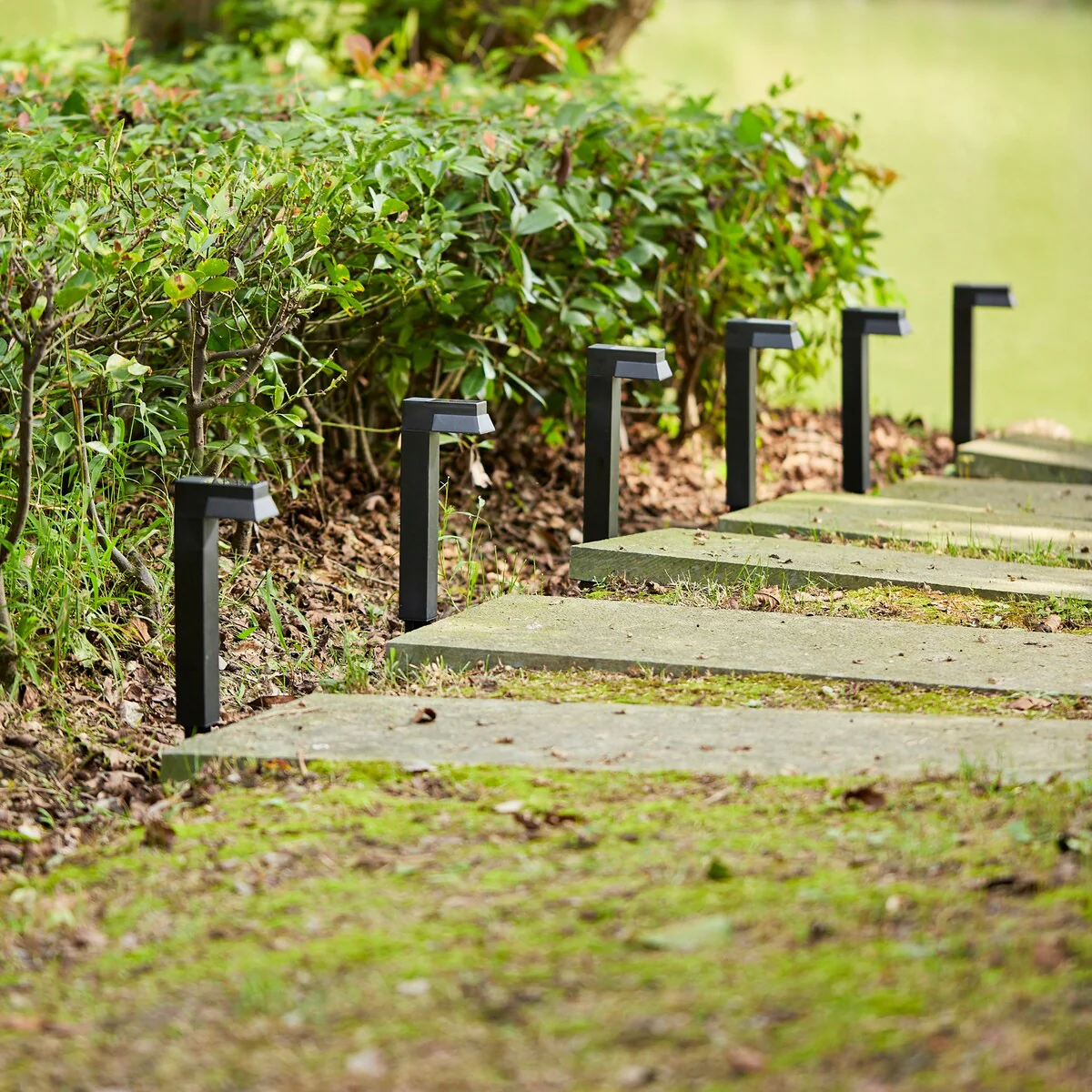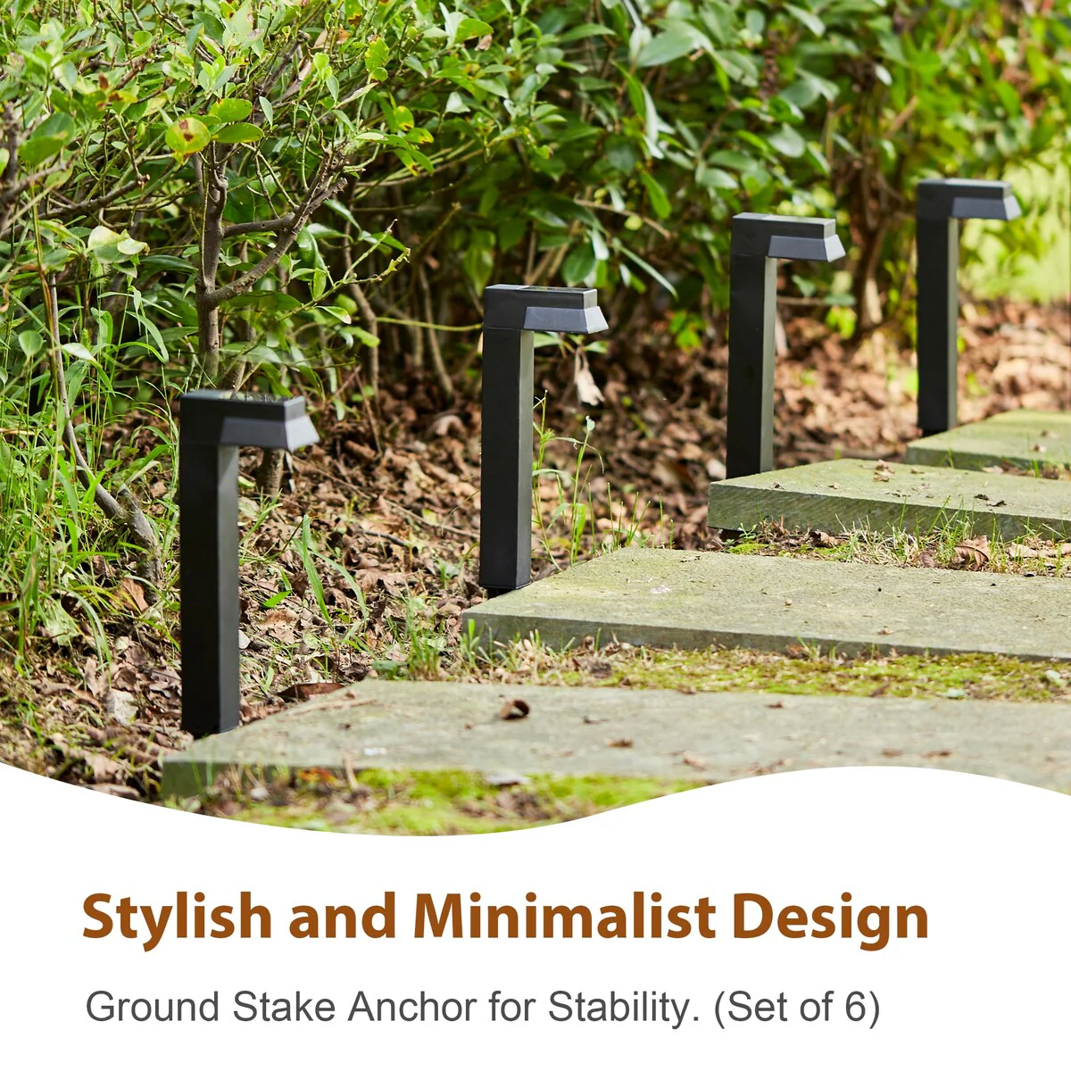 Glitzhome 15"H Set of 6 Solar Powered SMD LED Pathway Ground Light - Black