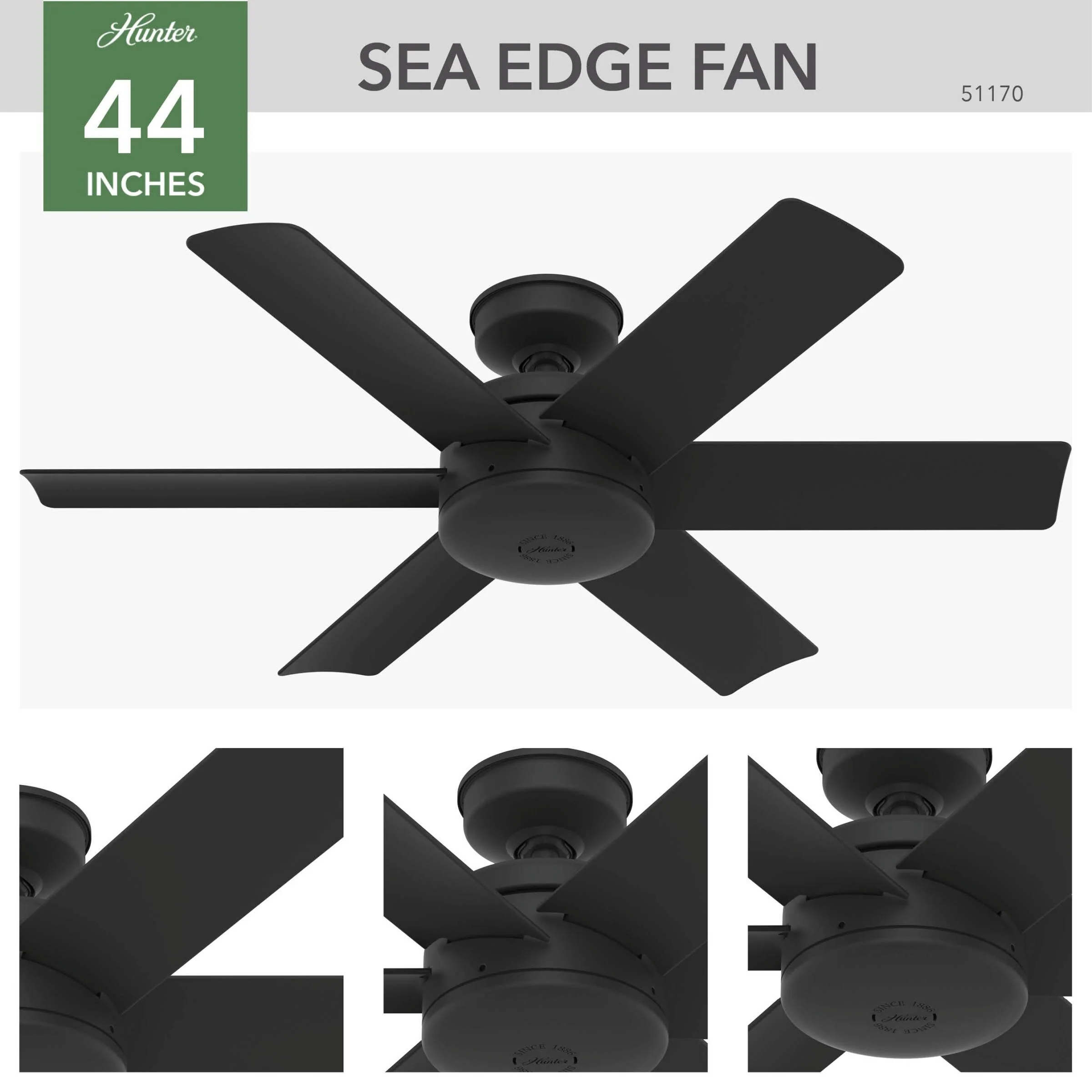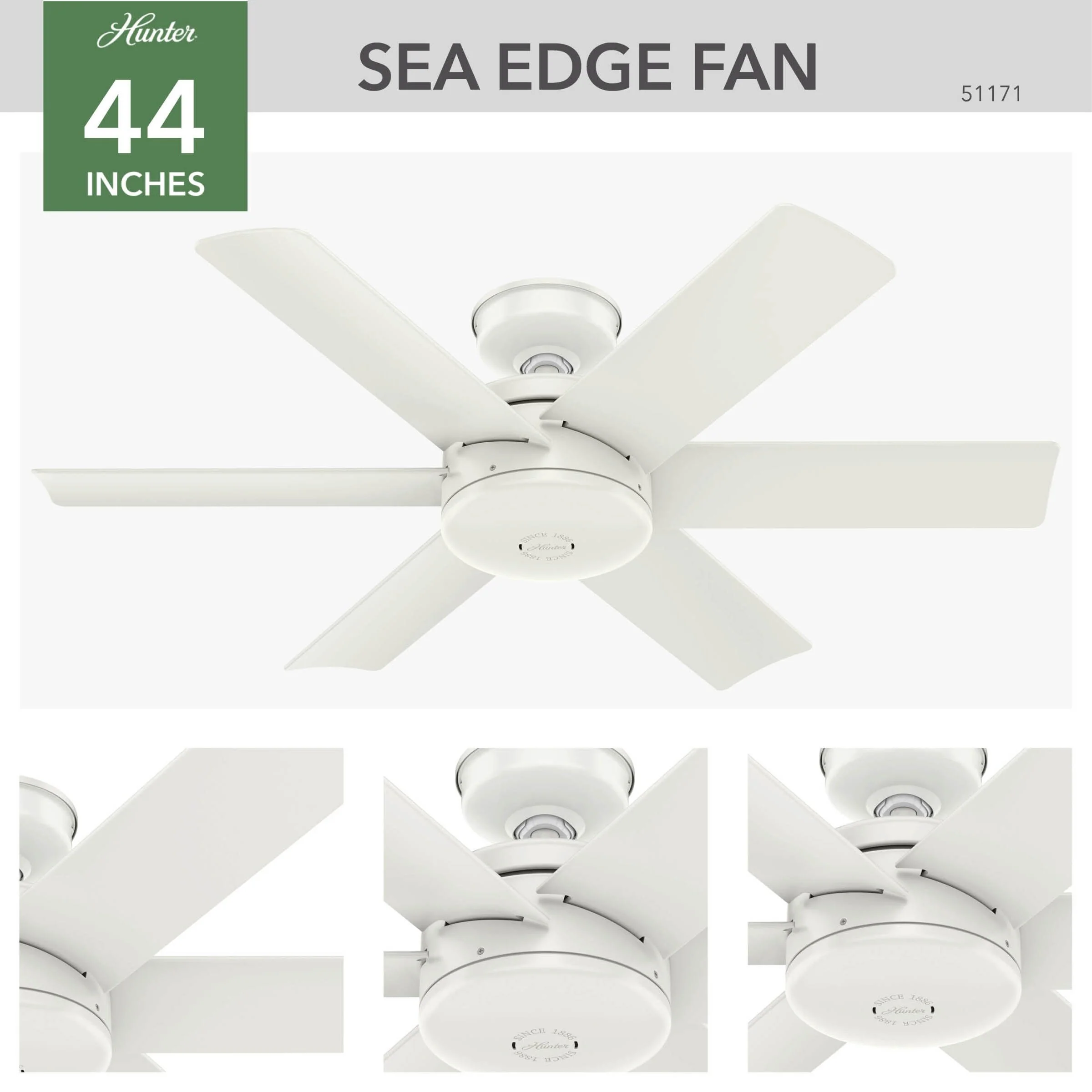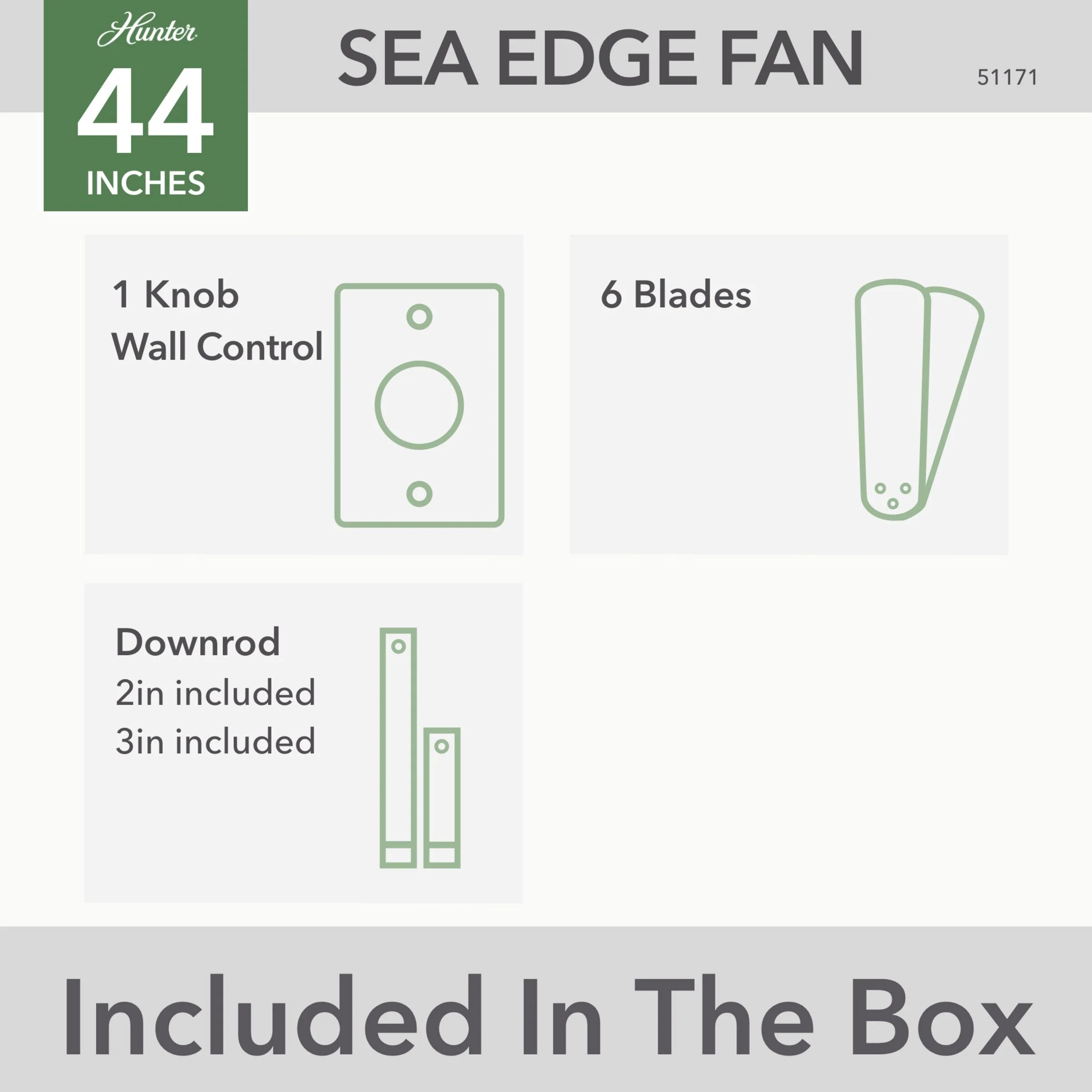 Hunter 44" Sea Edge Modern Outdoor Ceiling Fan w/ Wall Control, WeatherMax Wet Rated, Corrosion Resistant