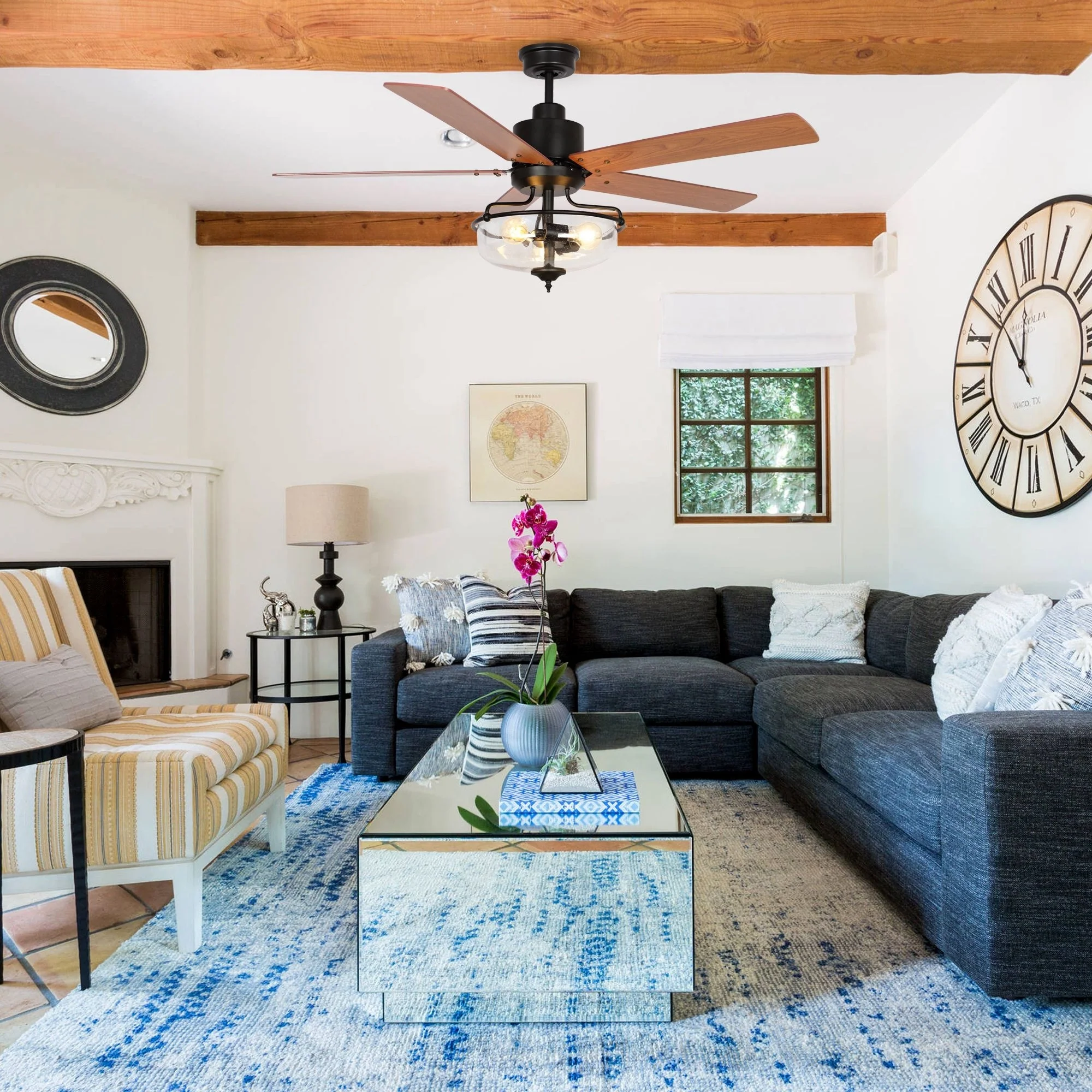 52 inch Reversible Wooden 5-Blade 3-Light Ceiling Fan with Remote