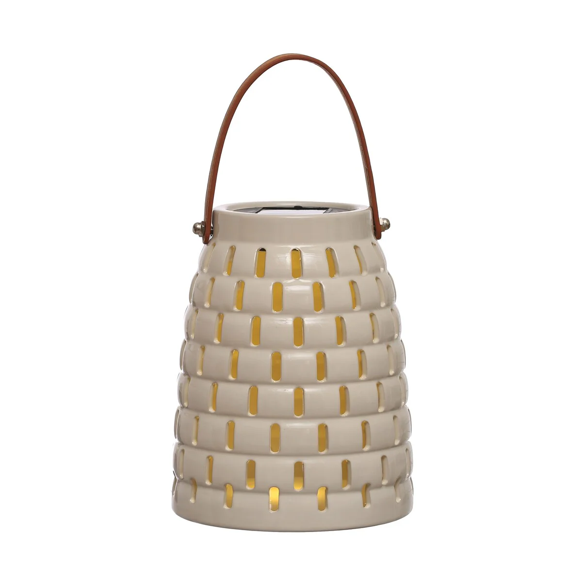 Stoneware Rechargeable LED Solar Powered Waterproof Lantern - 6.5"L x 6.5"W x 8.0"H