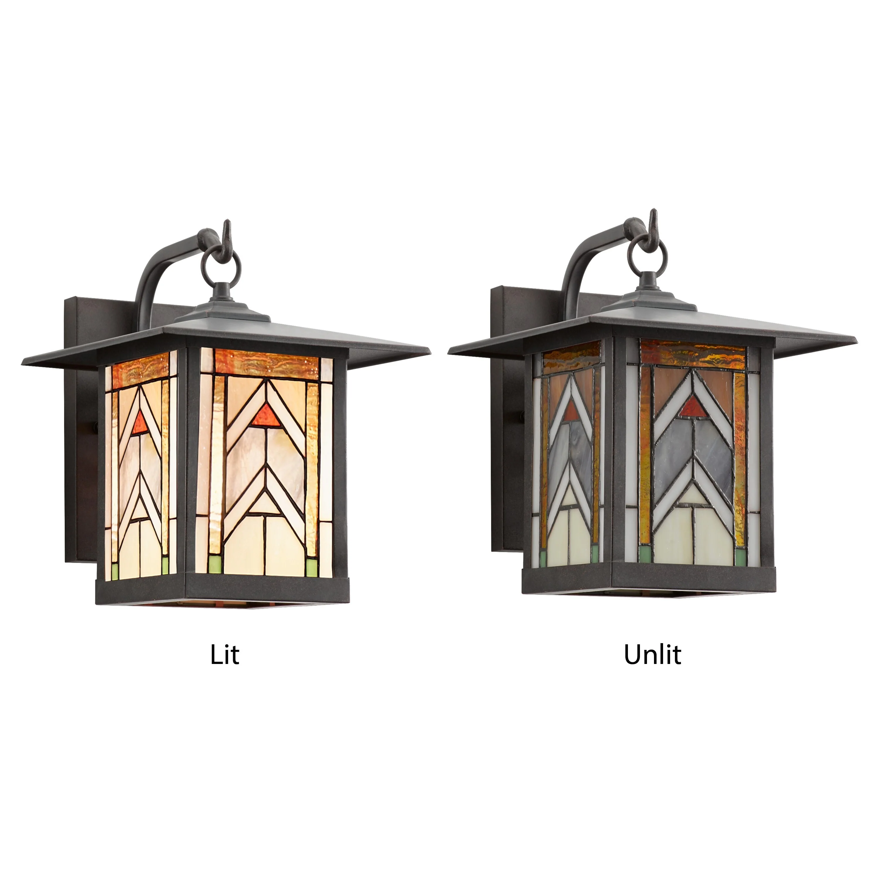 River of Goods Terracotta Stained Glass and Oil Rubbed Bronze 1-Light Outdoor Lantern Wall Sconce - 10.75" x 9" x 11.75"