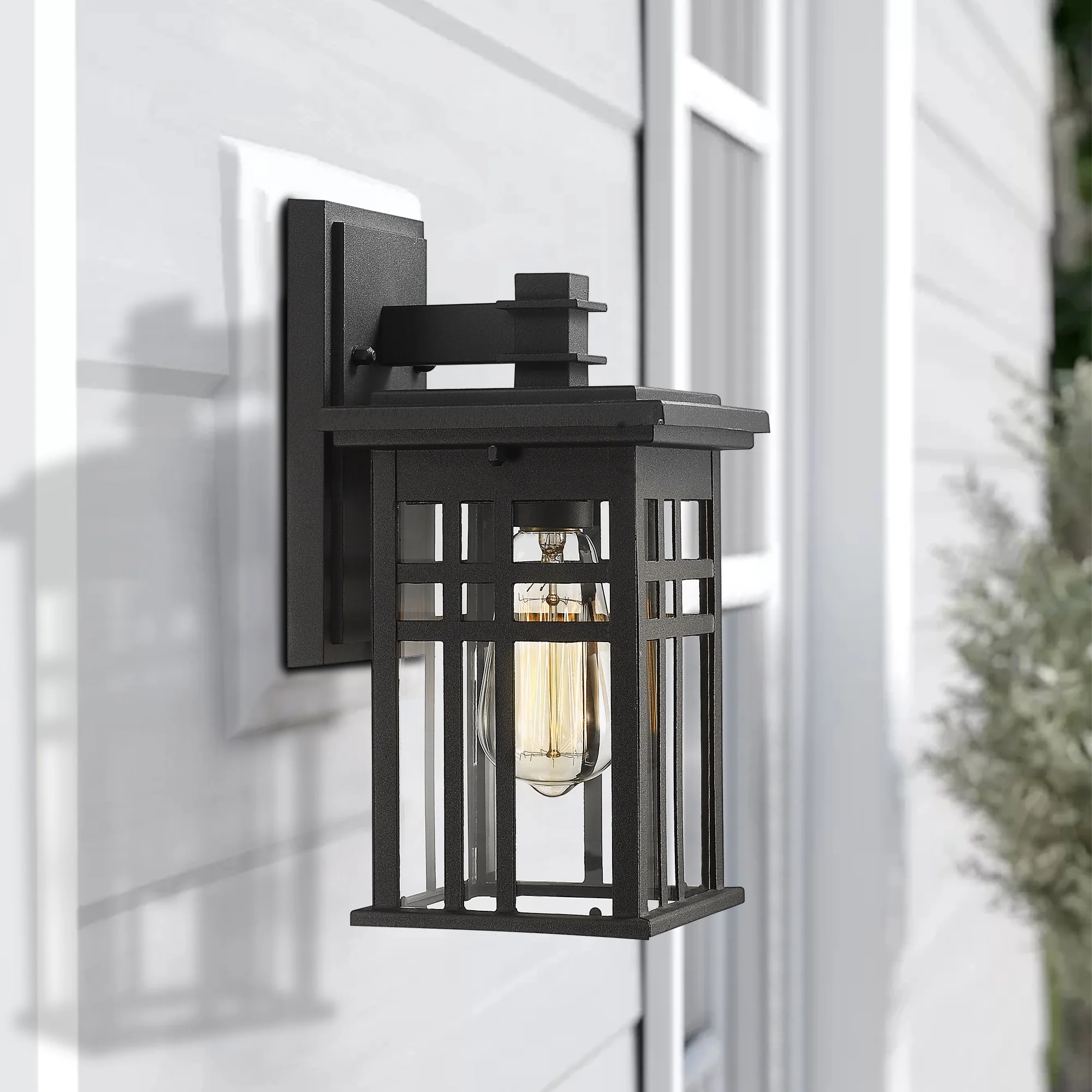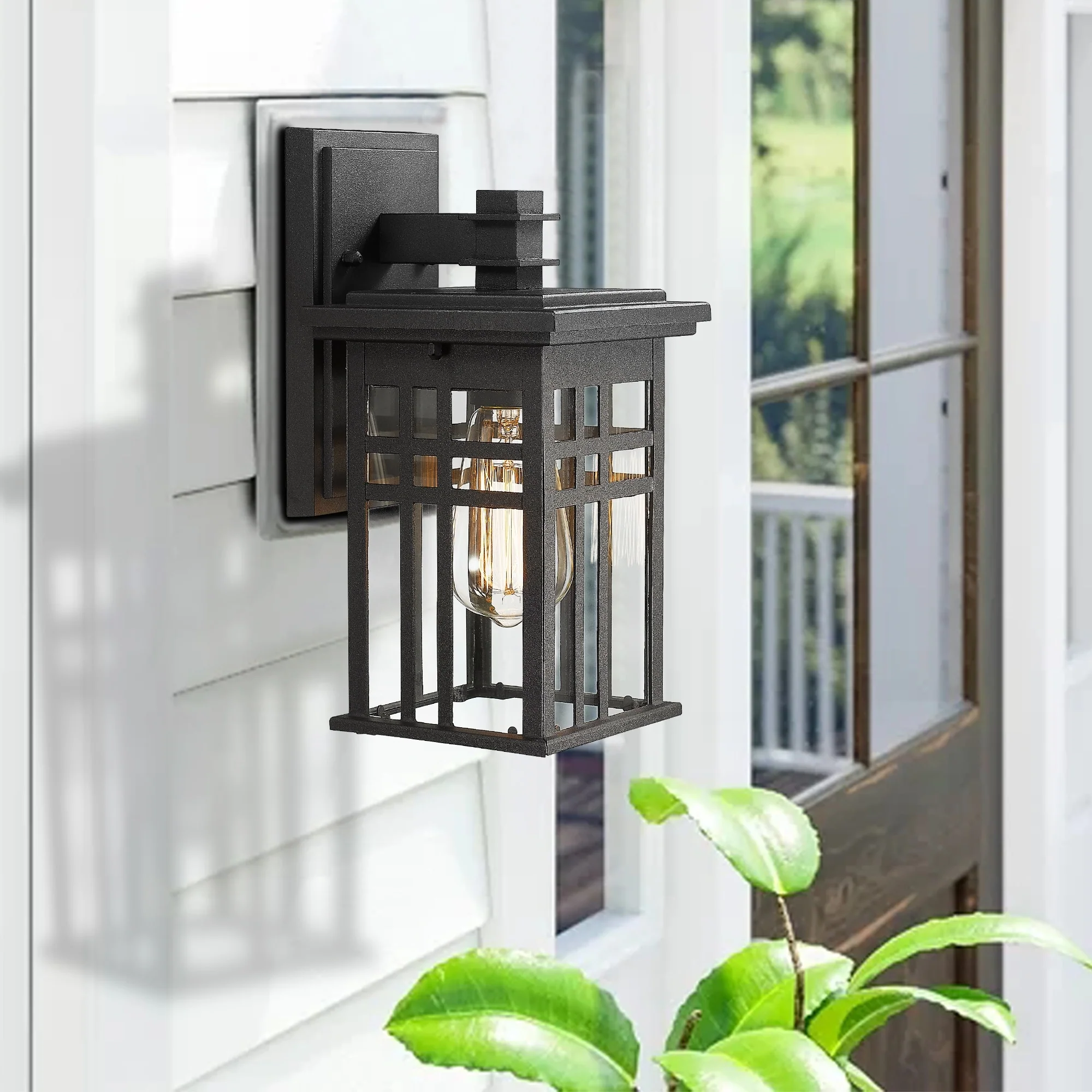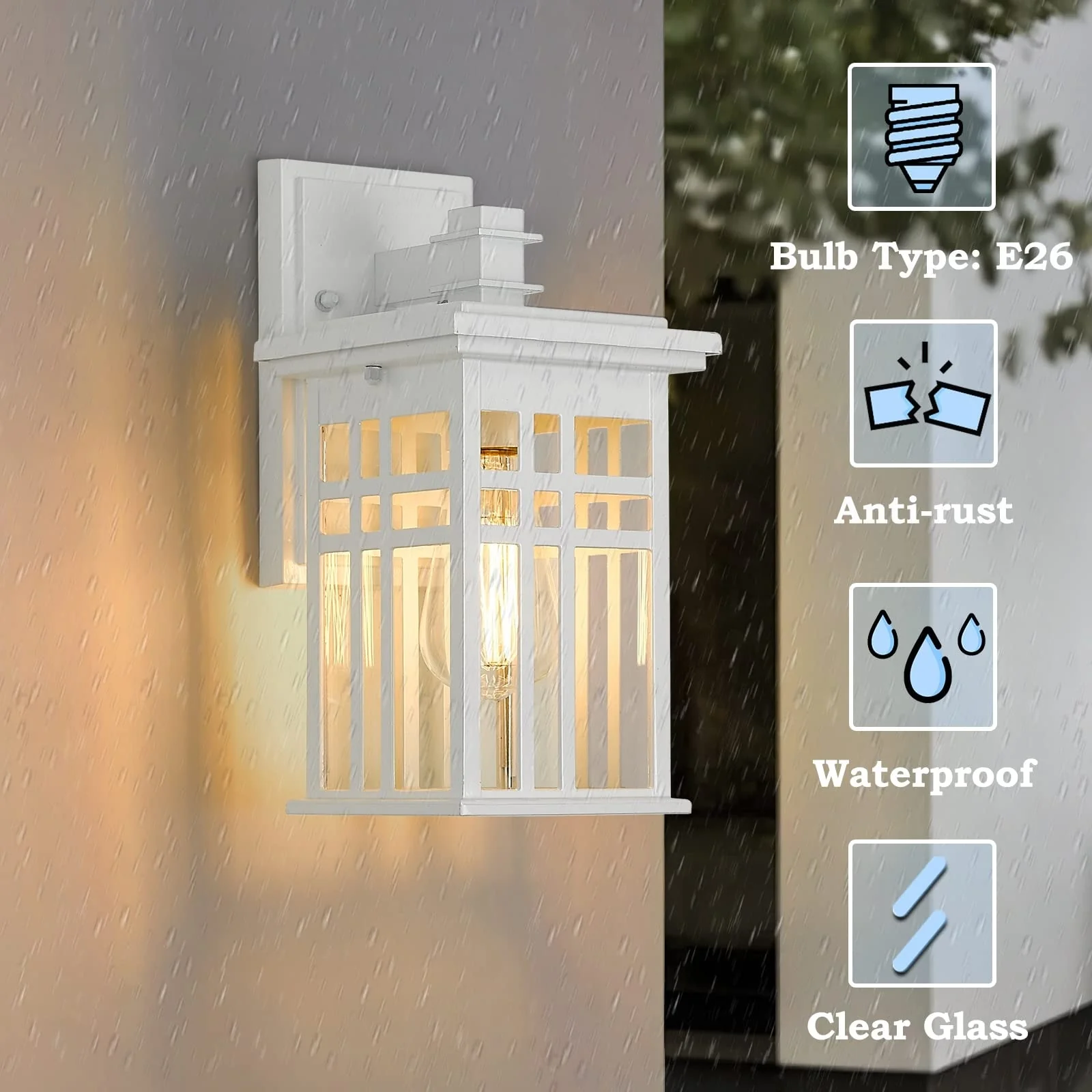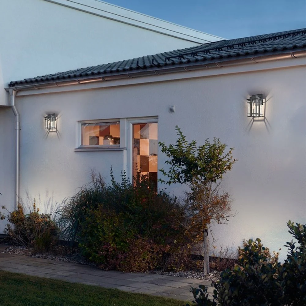 Outdoor Wall Lantern in Black/White Finish,Wall Sconce Lantern with Clear Glass