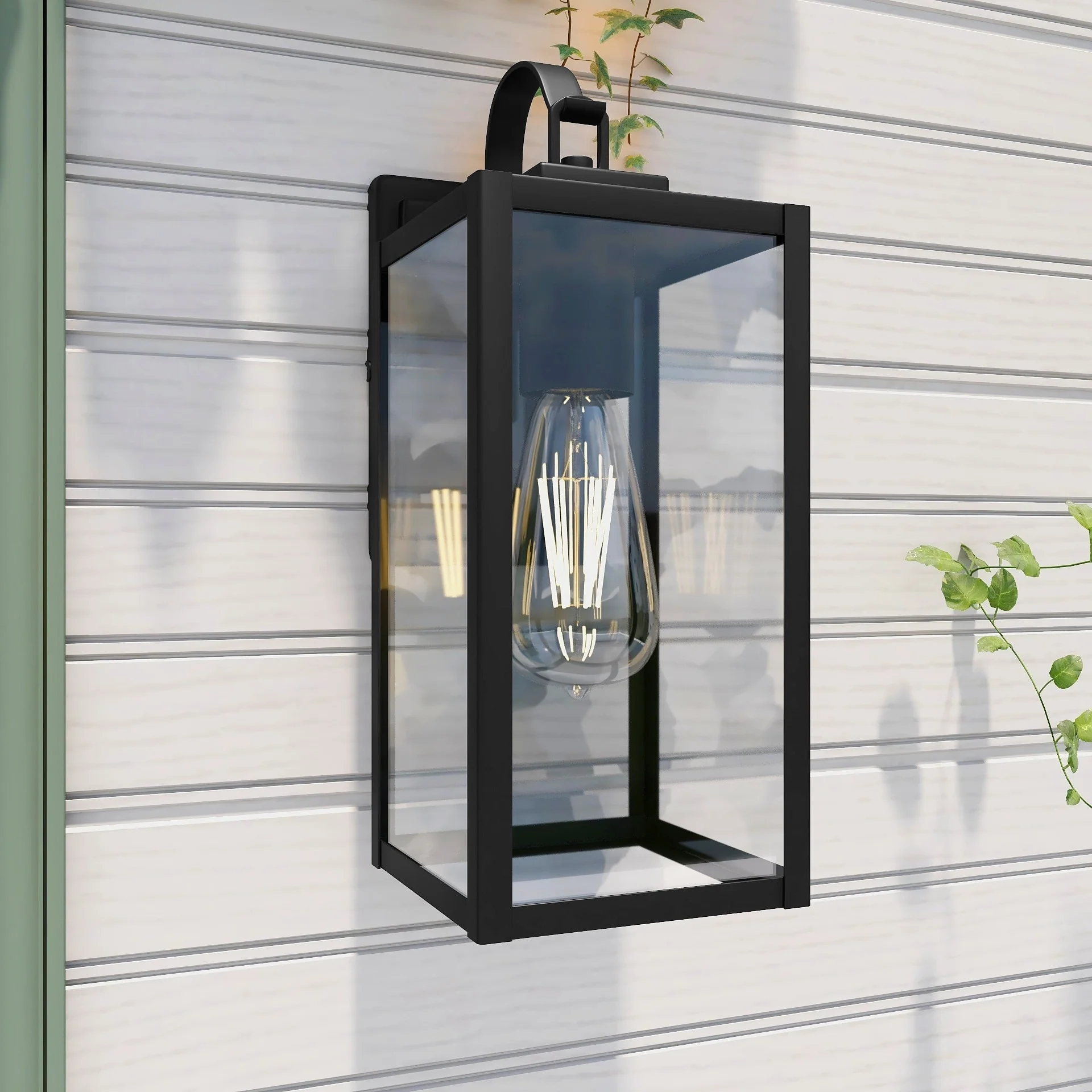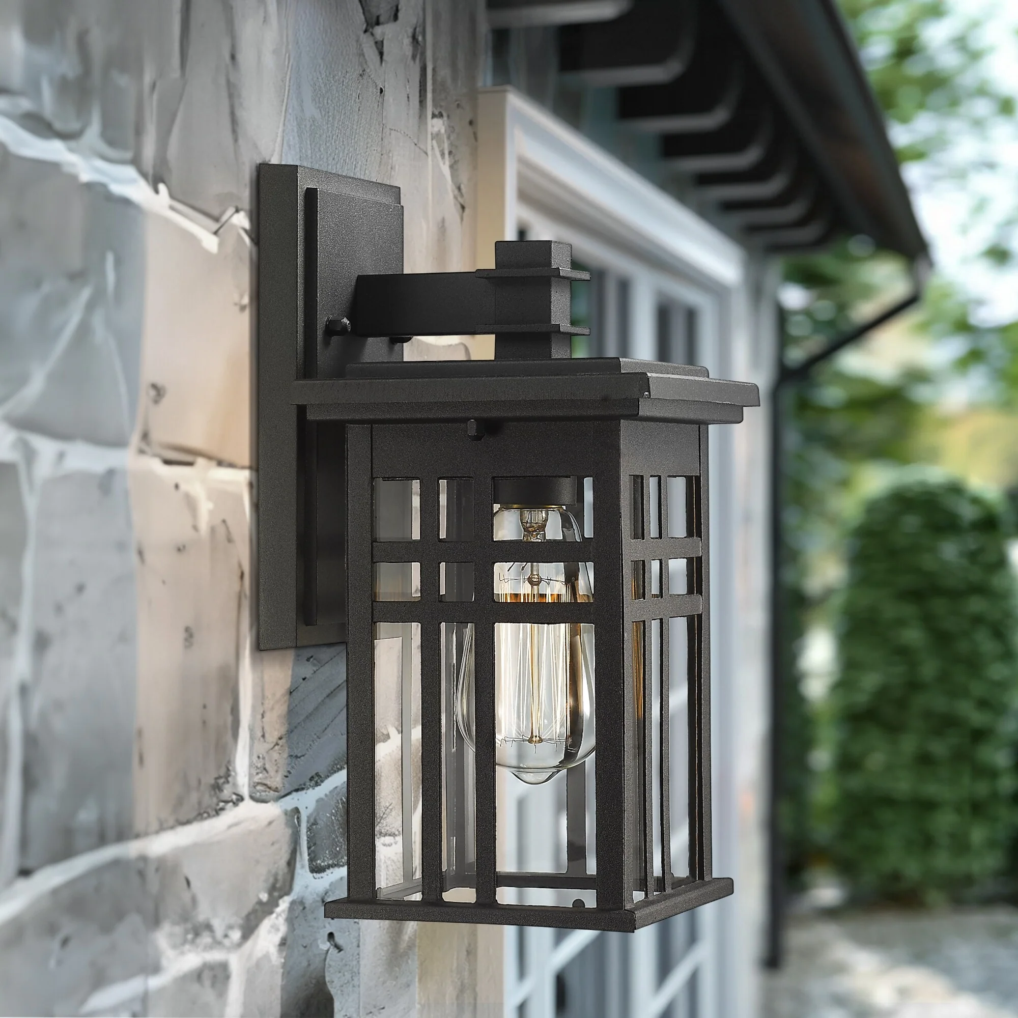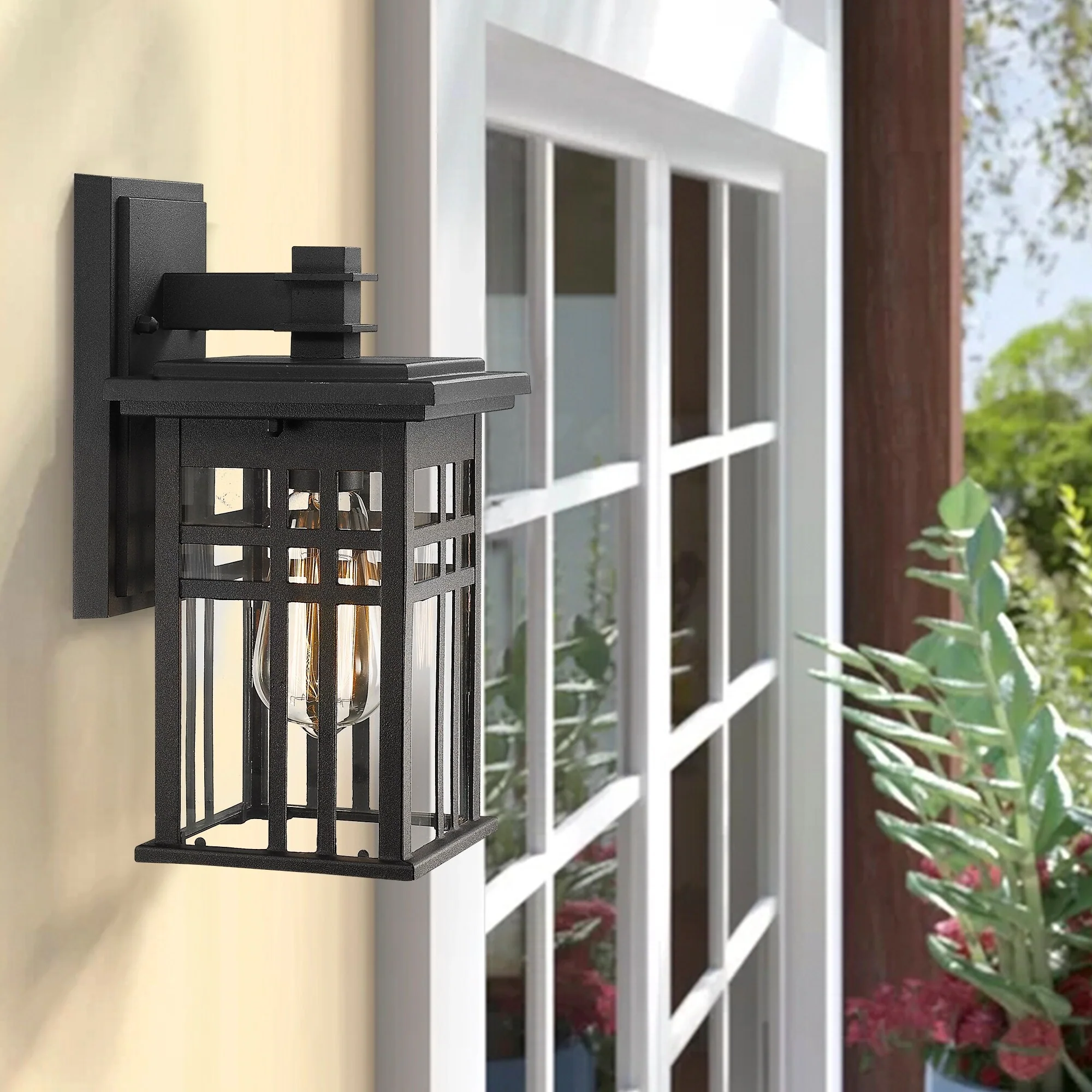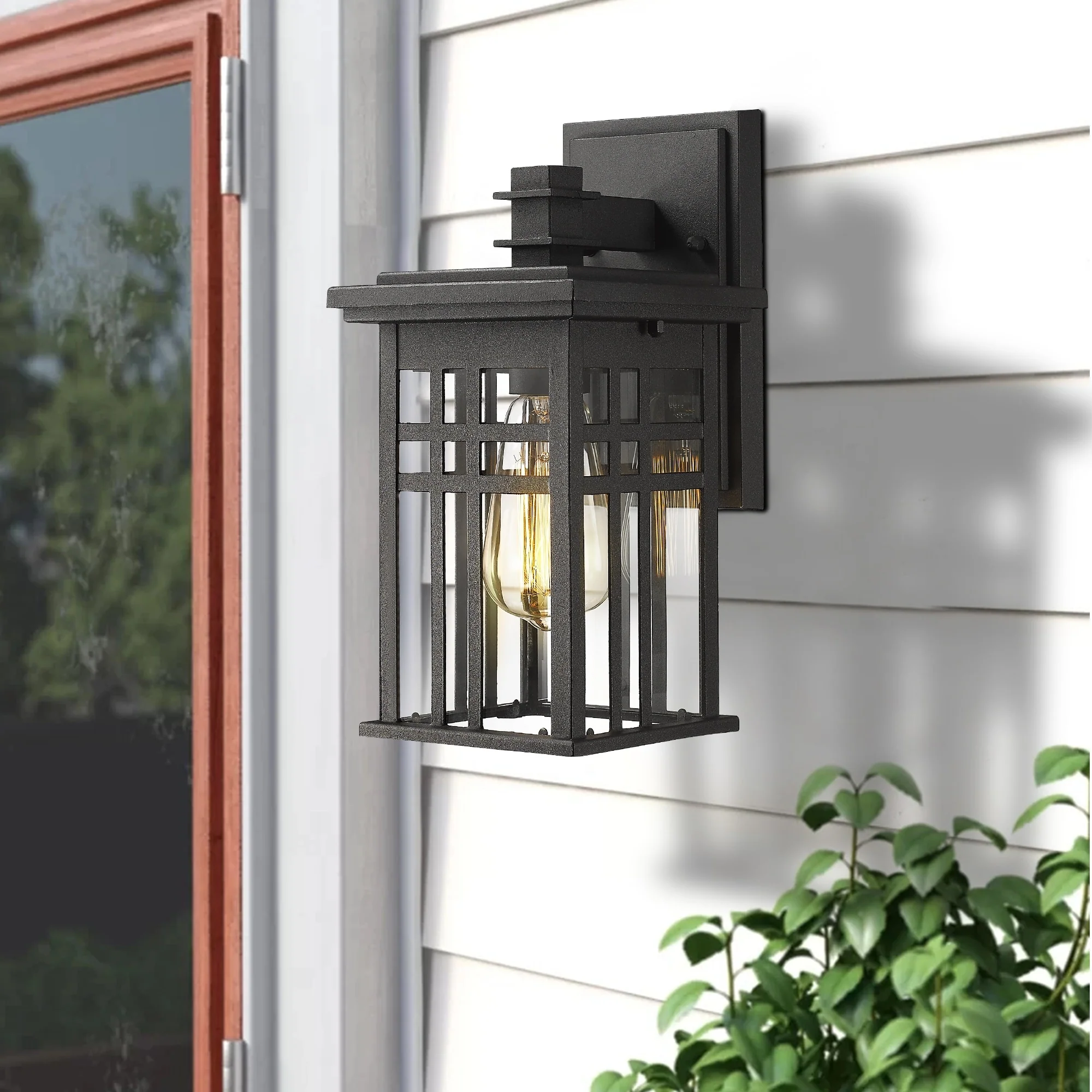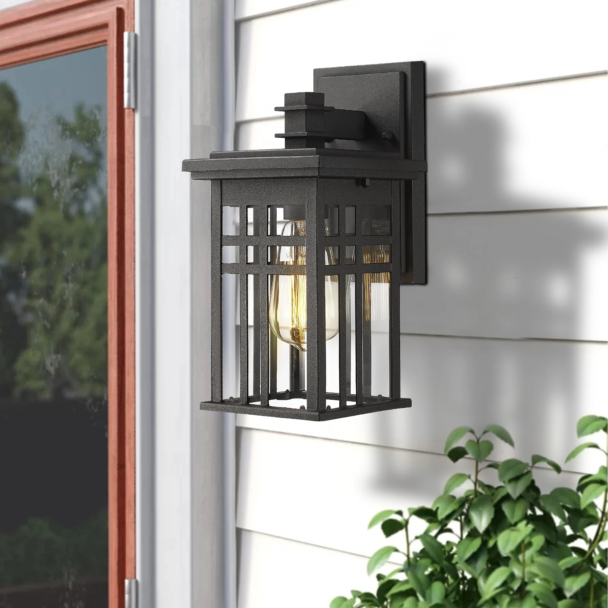 Outdoor Wall Lantern in Black/White Finish,Wall Sconce Lantern with Clear Glass