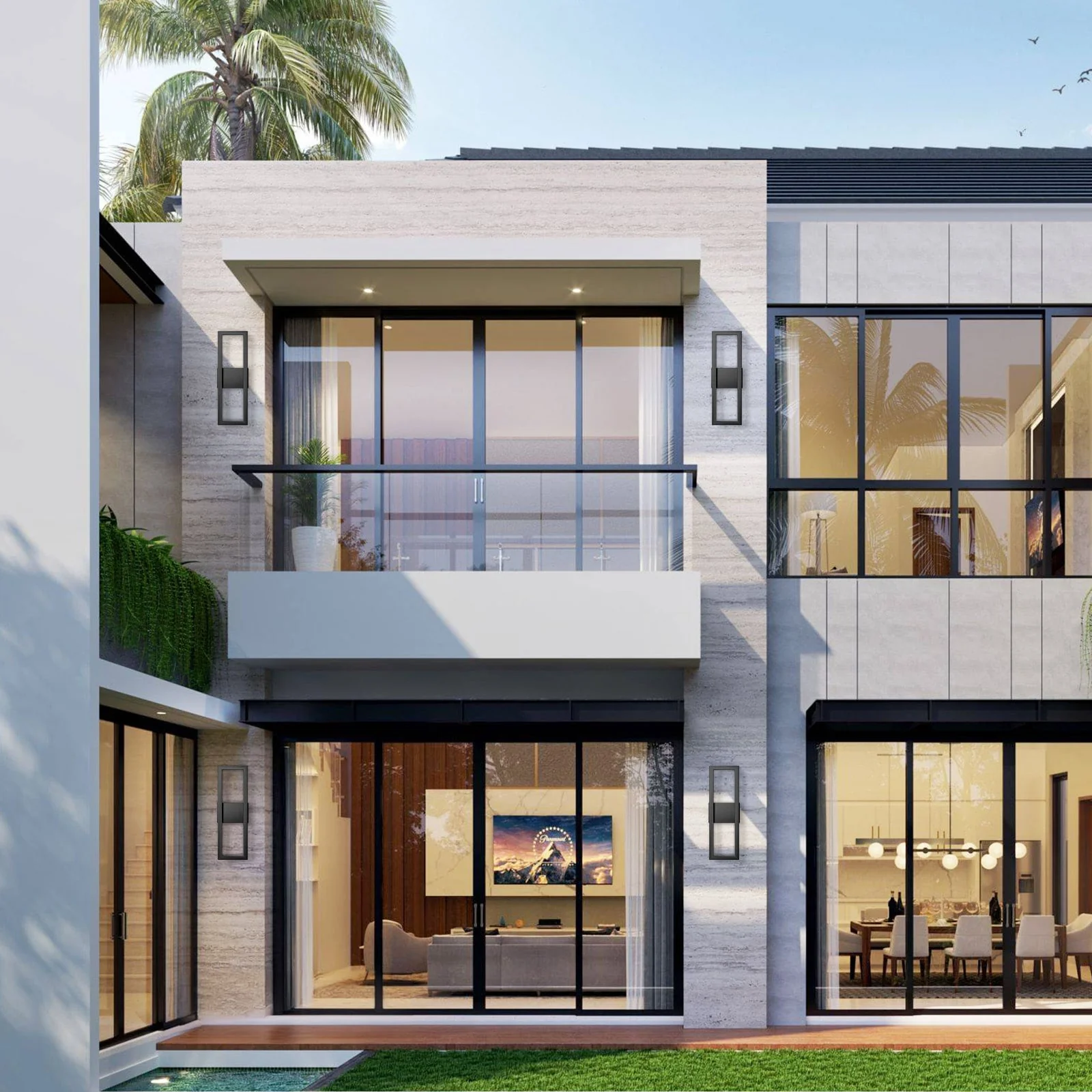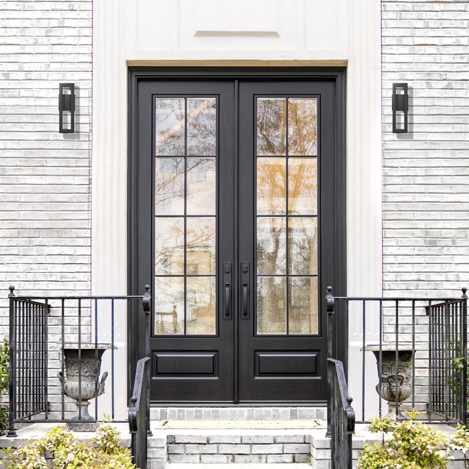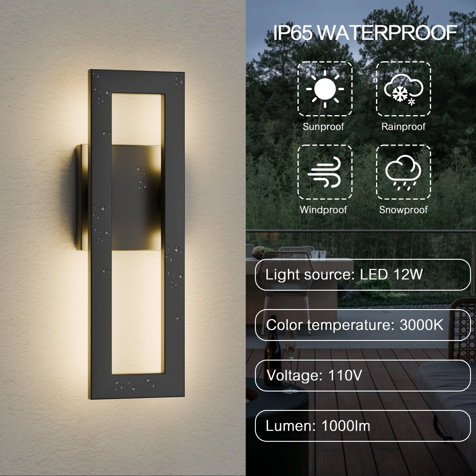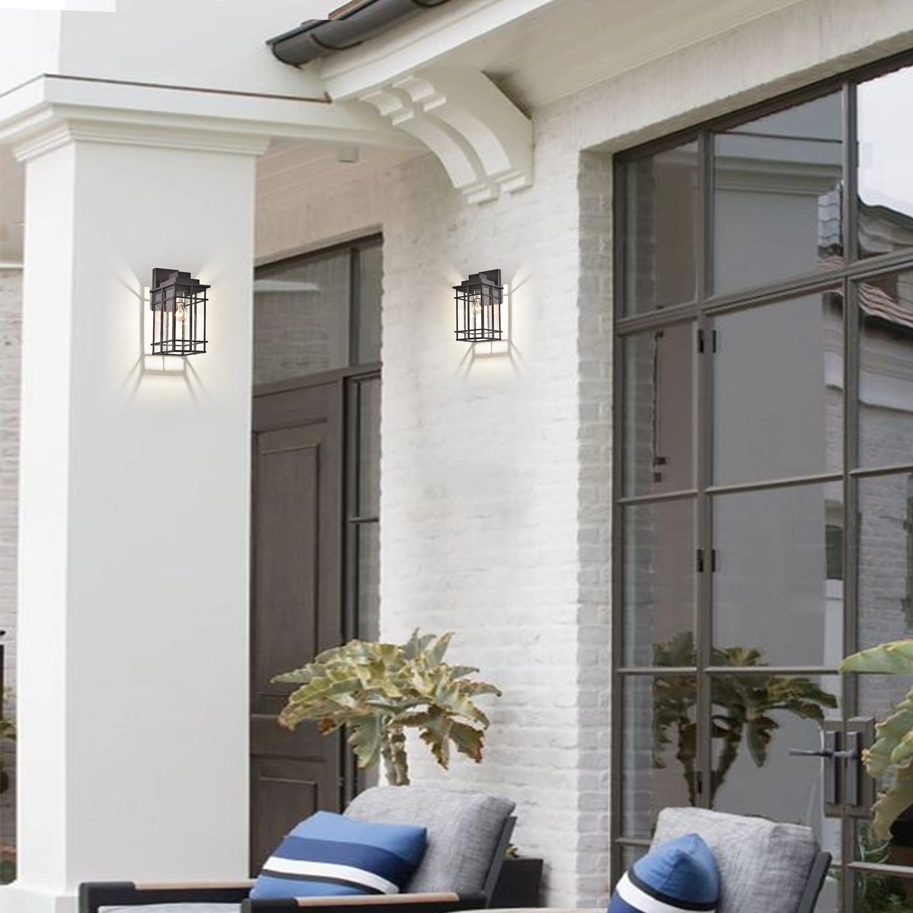 Outdoor Wall Lantern in Black/White Finish,Wall Sconce Lantern with Clear Glass