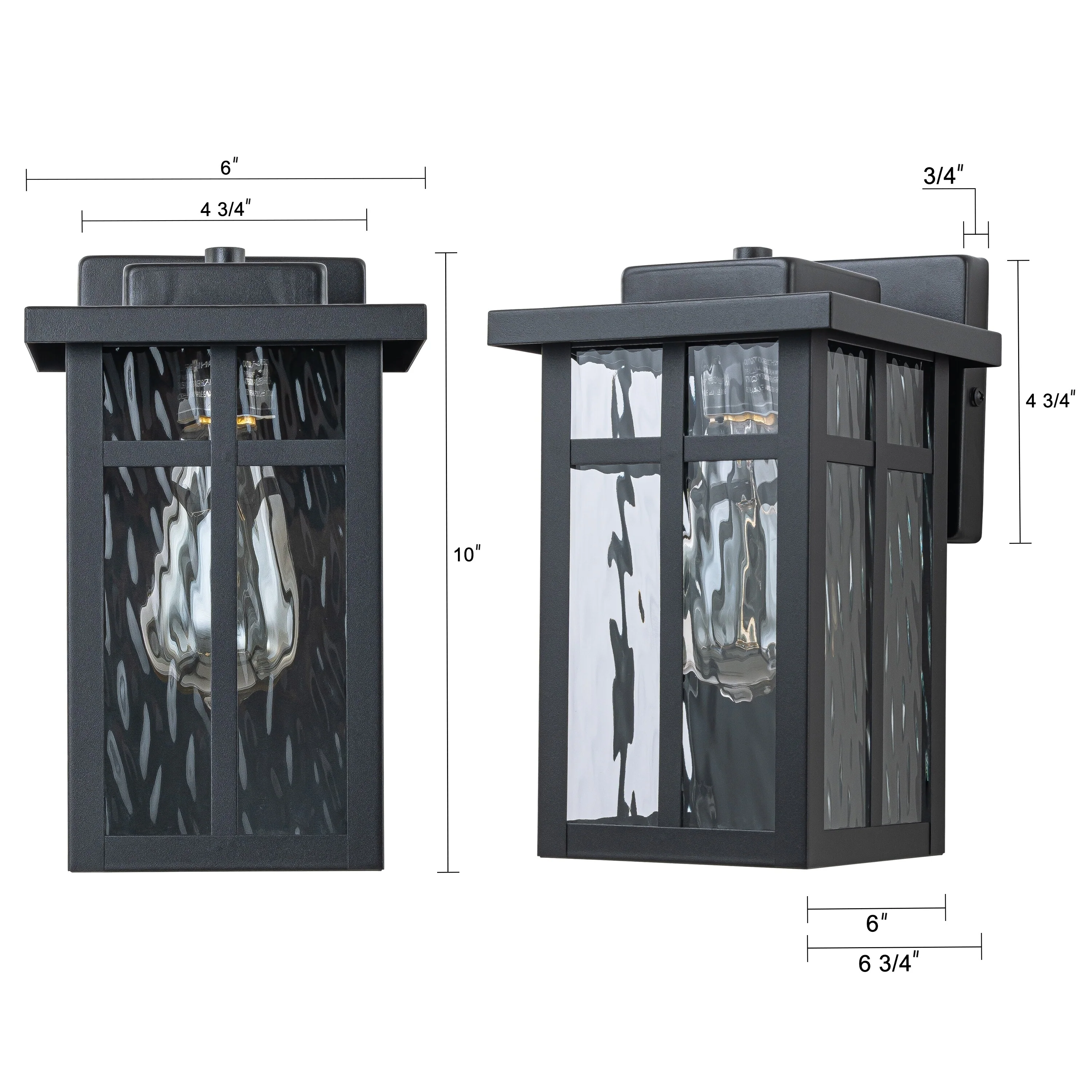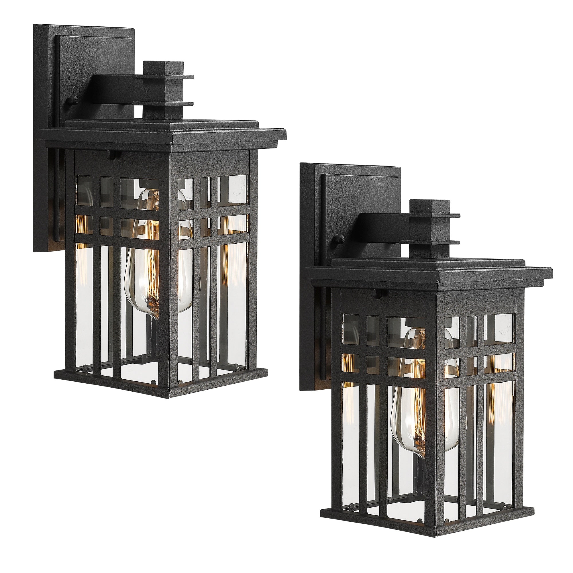 C Cattleya 2 Pack Matte Black Outdoor Wall Lantern Sconces with Water Glass