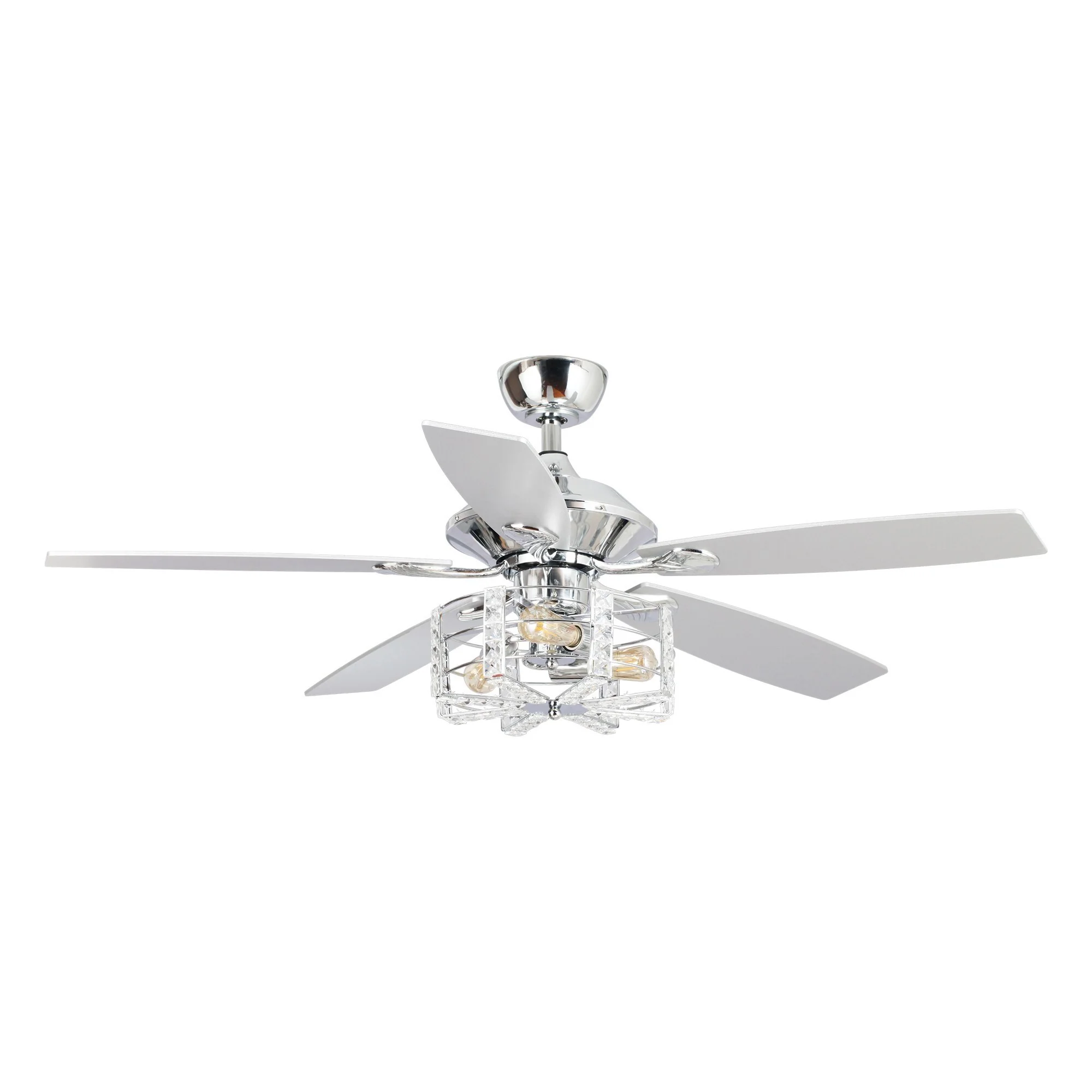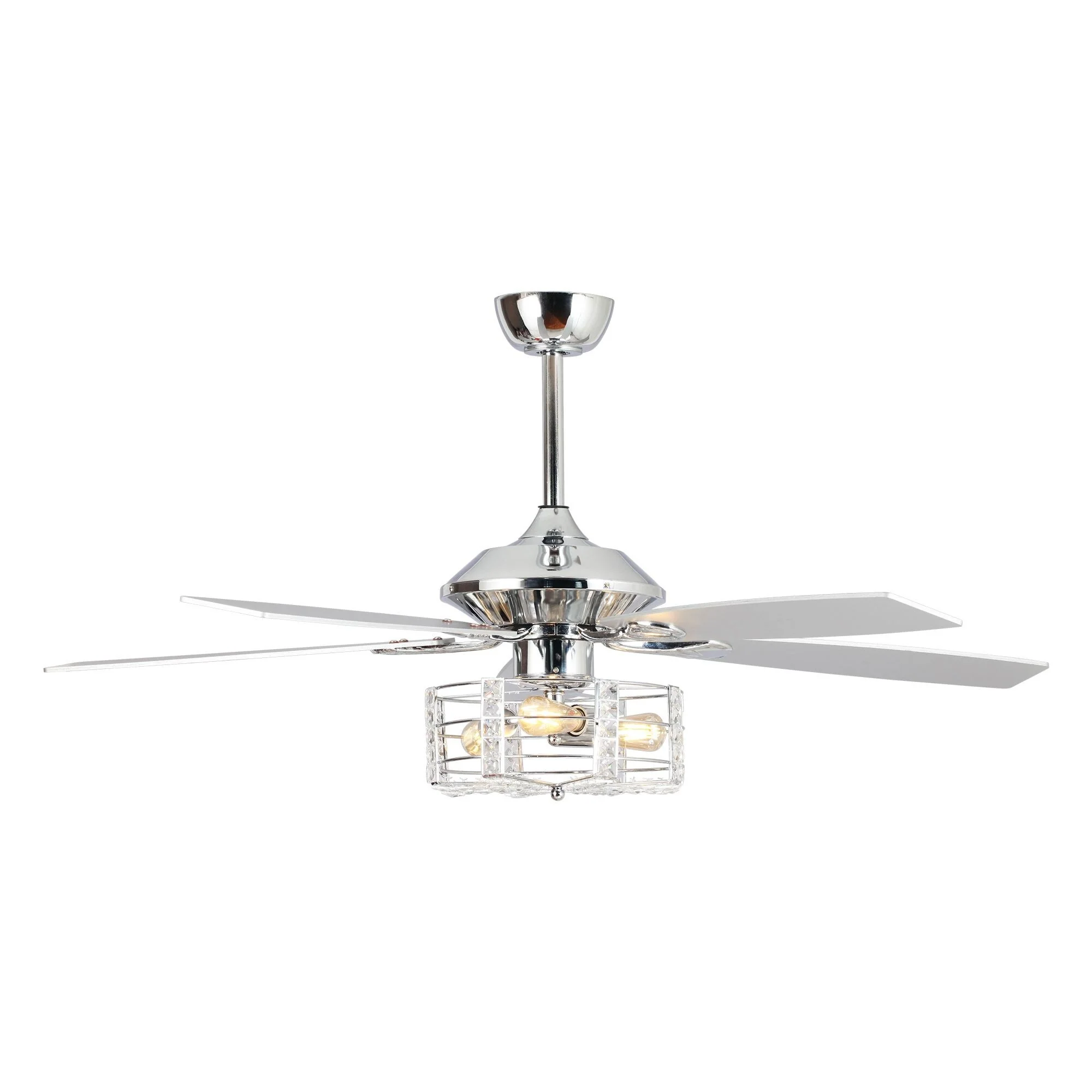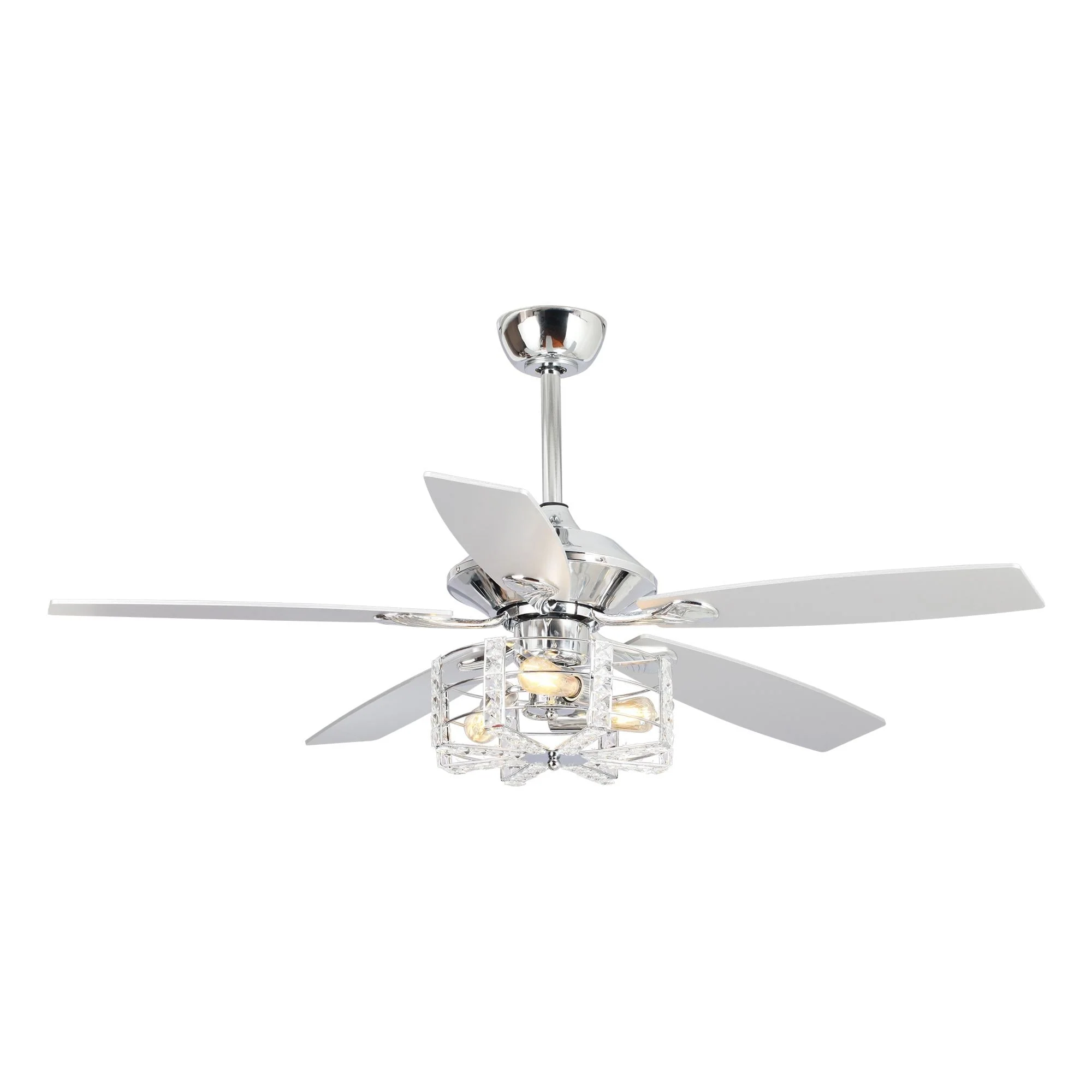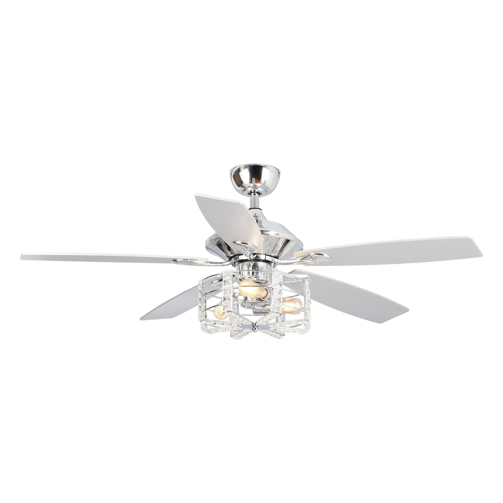 52" Chrome Wood 5-Blade Modern Crystal Ceiling Fan with Remote