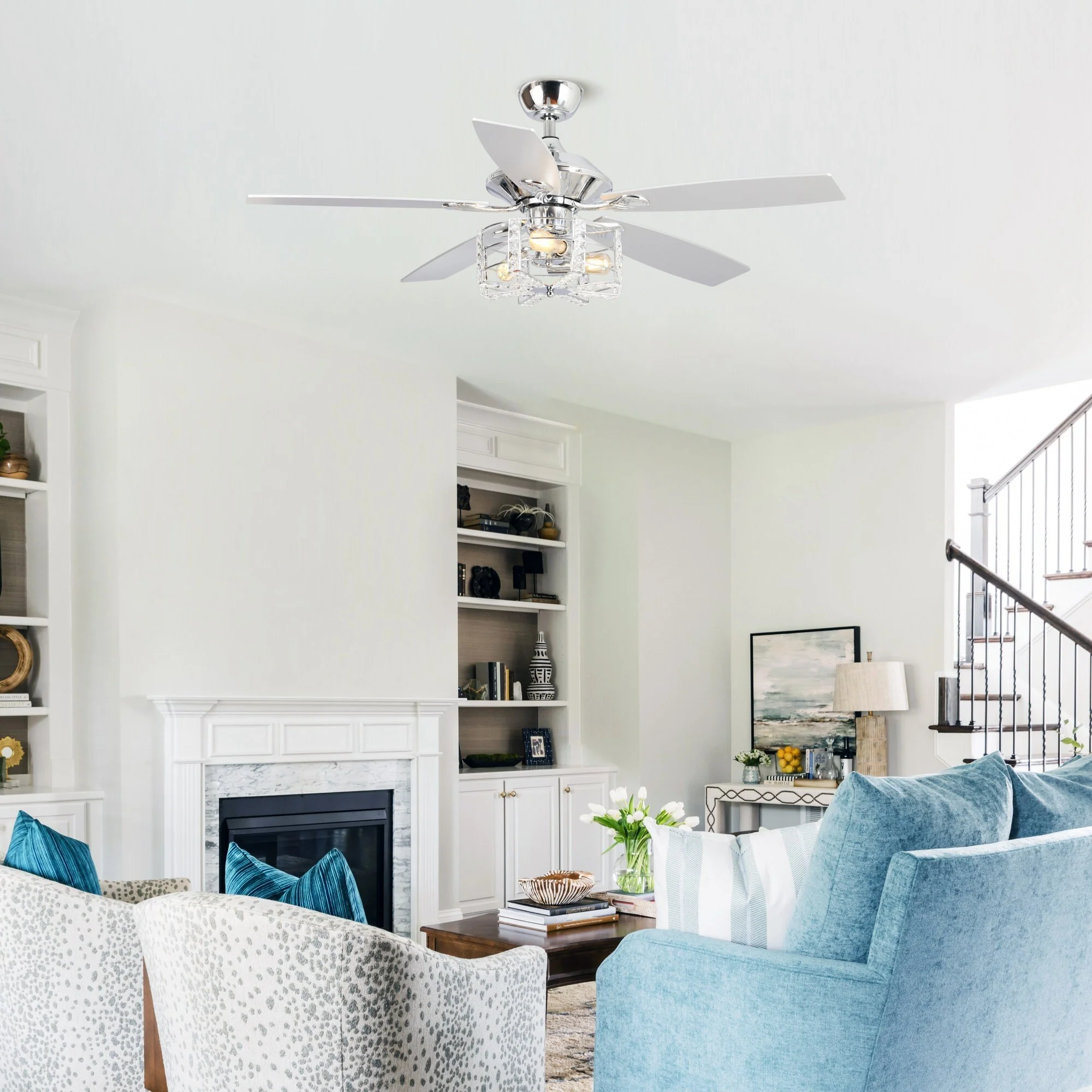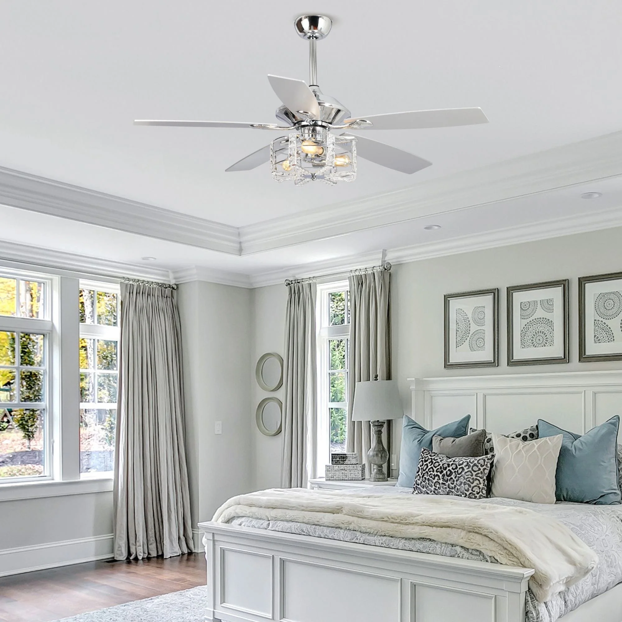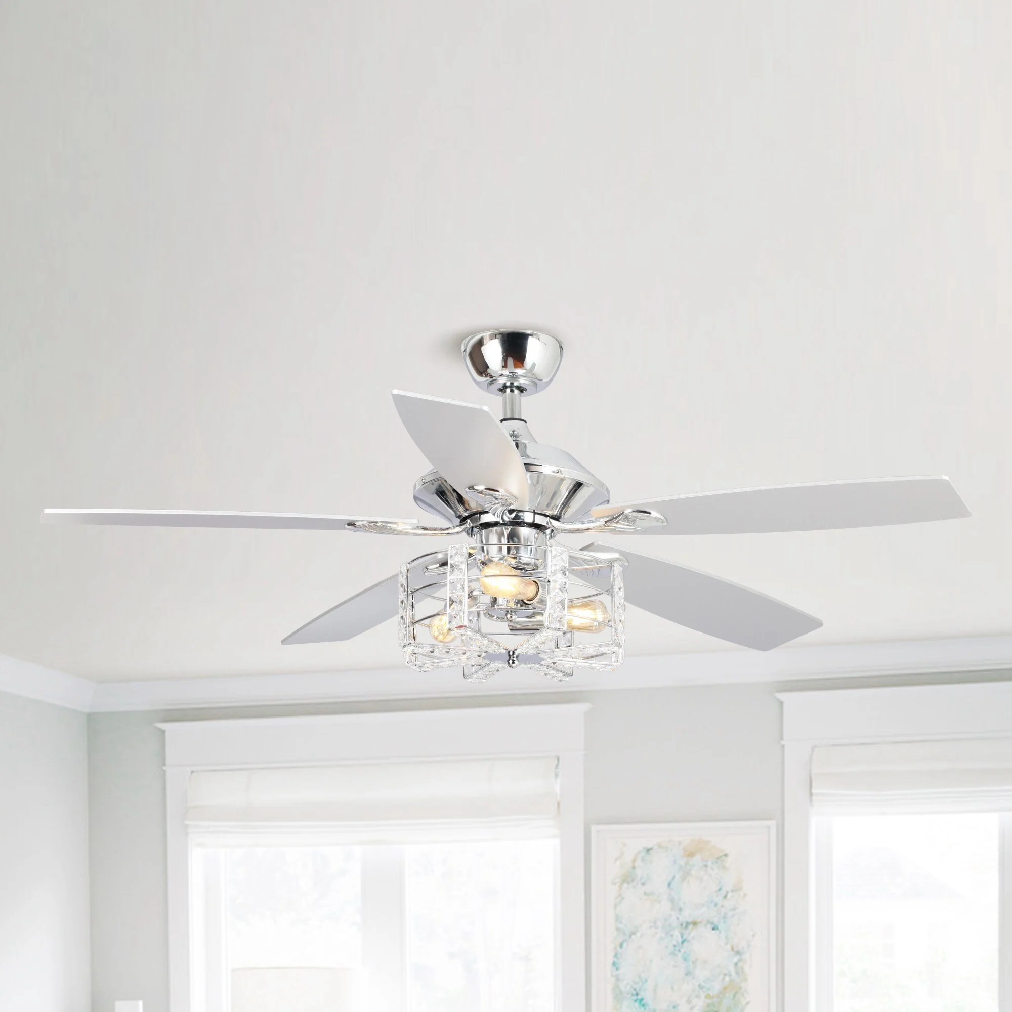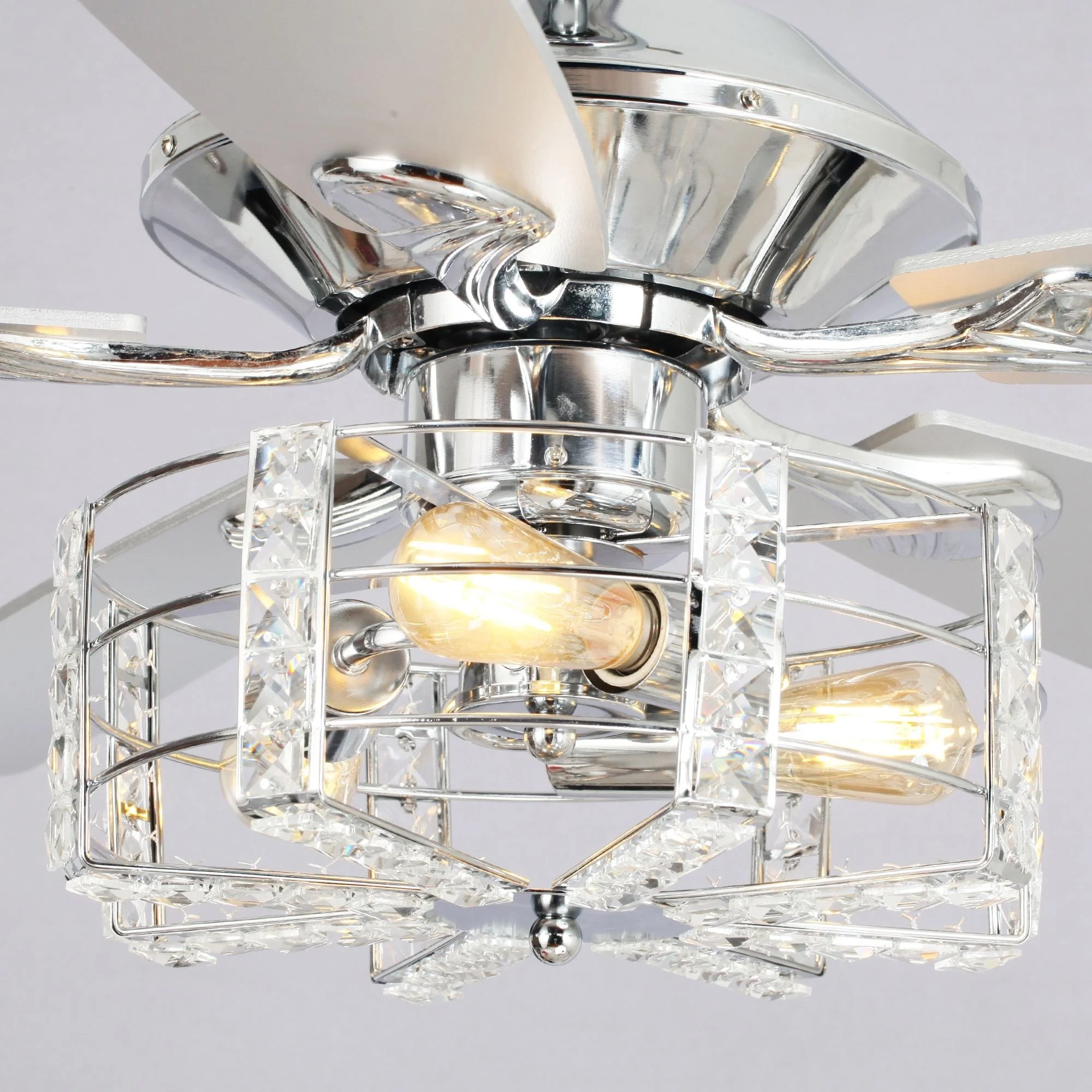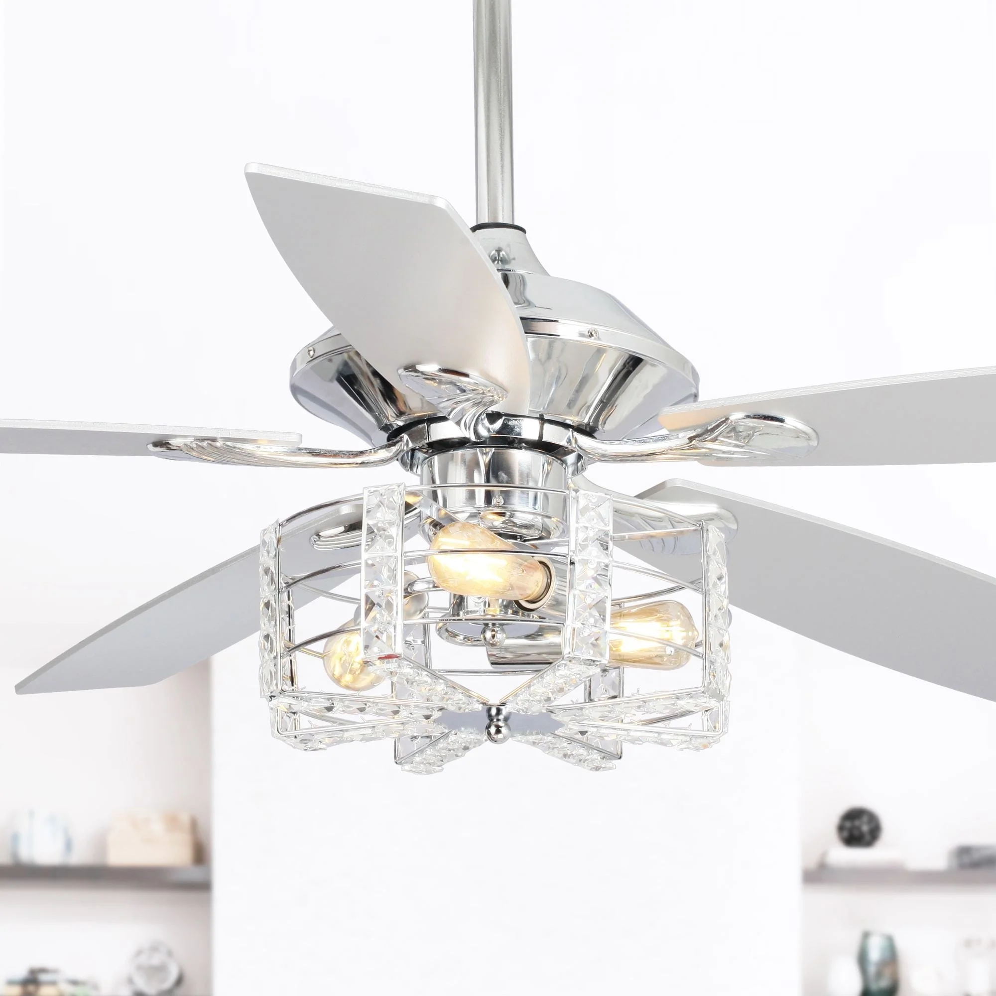 52" Chrome Wood 5-Blade Modern Crystal Ceiling Fan with Remote