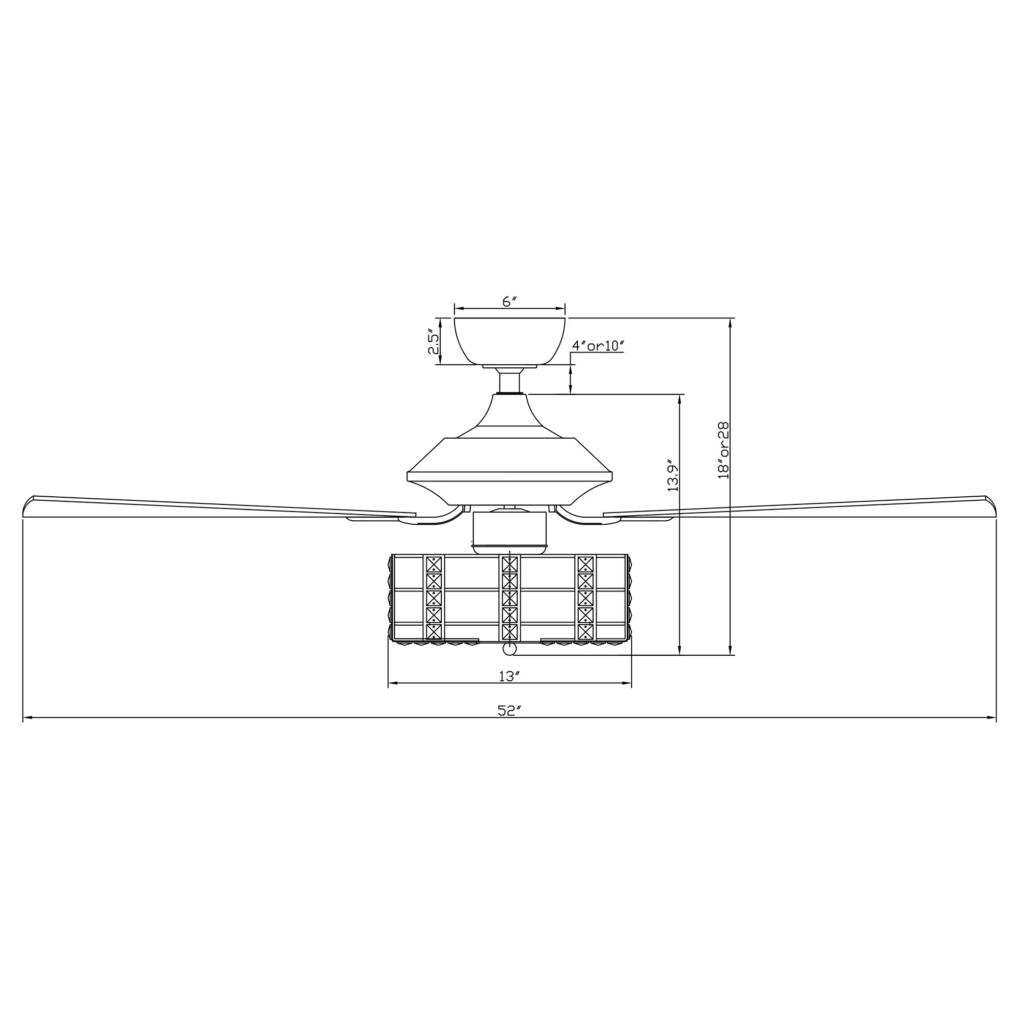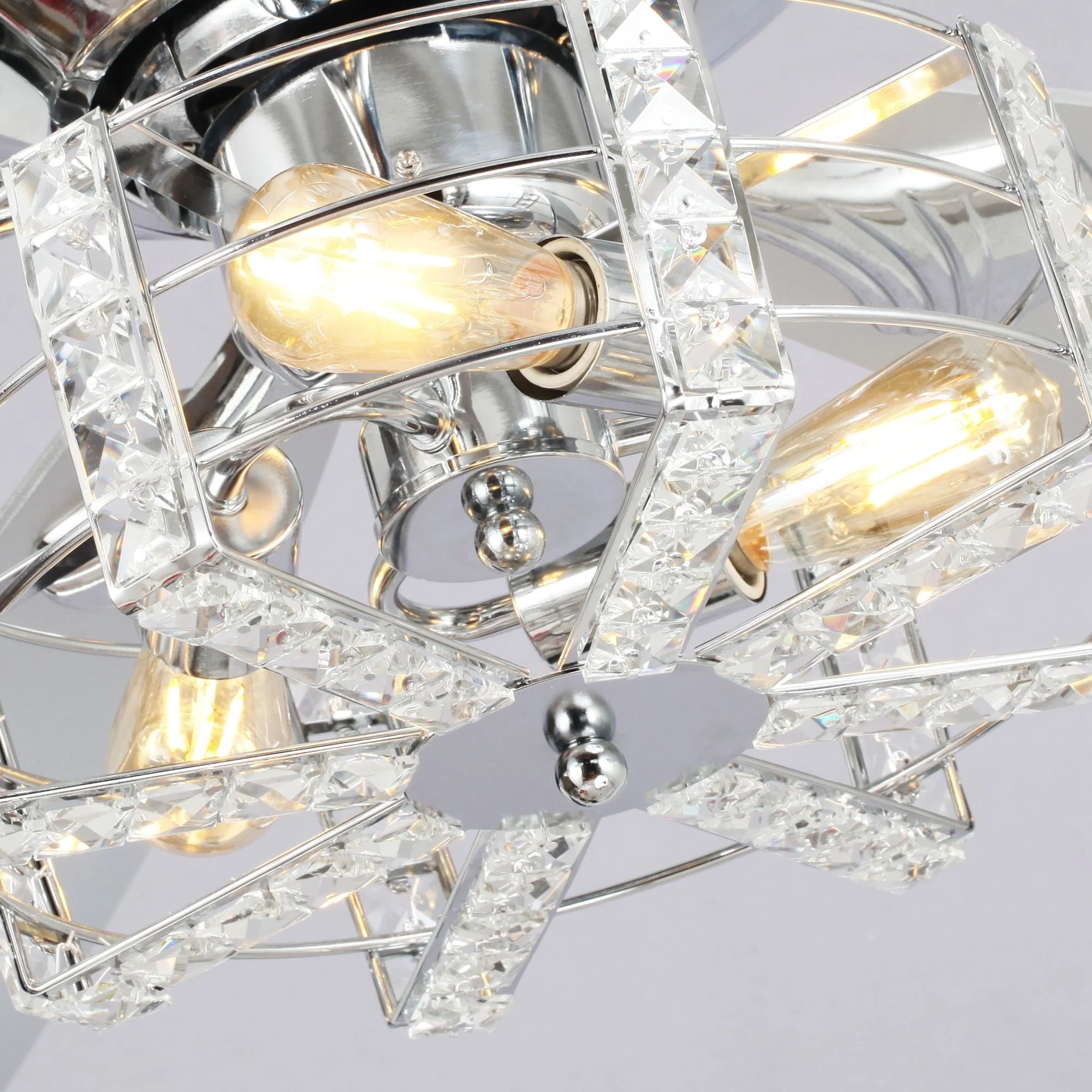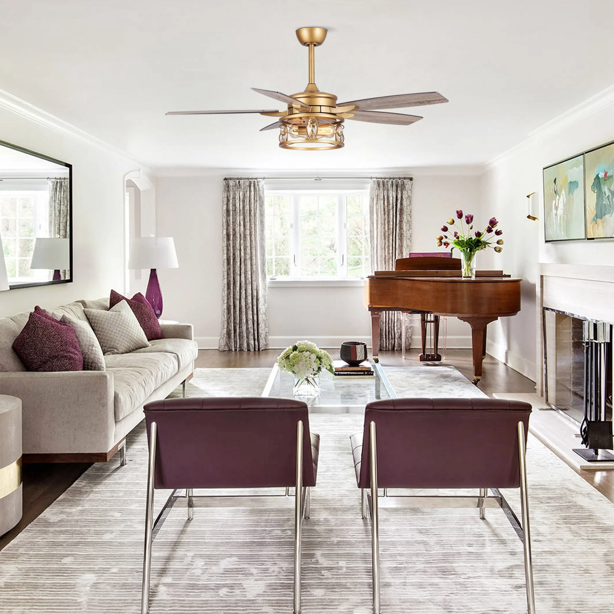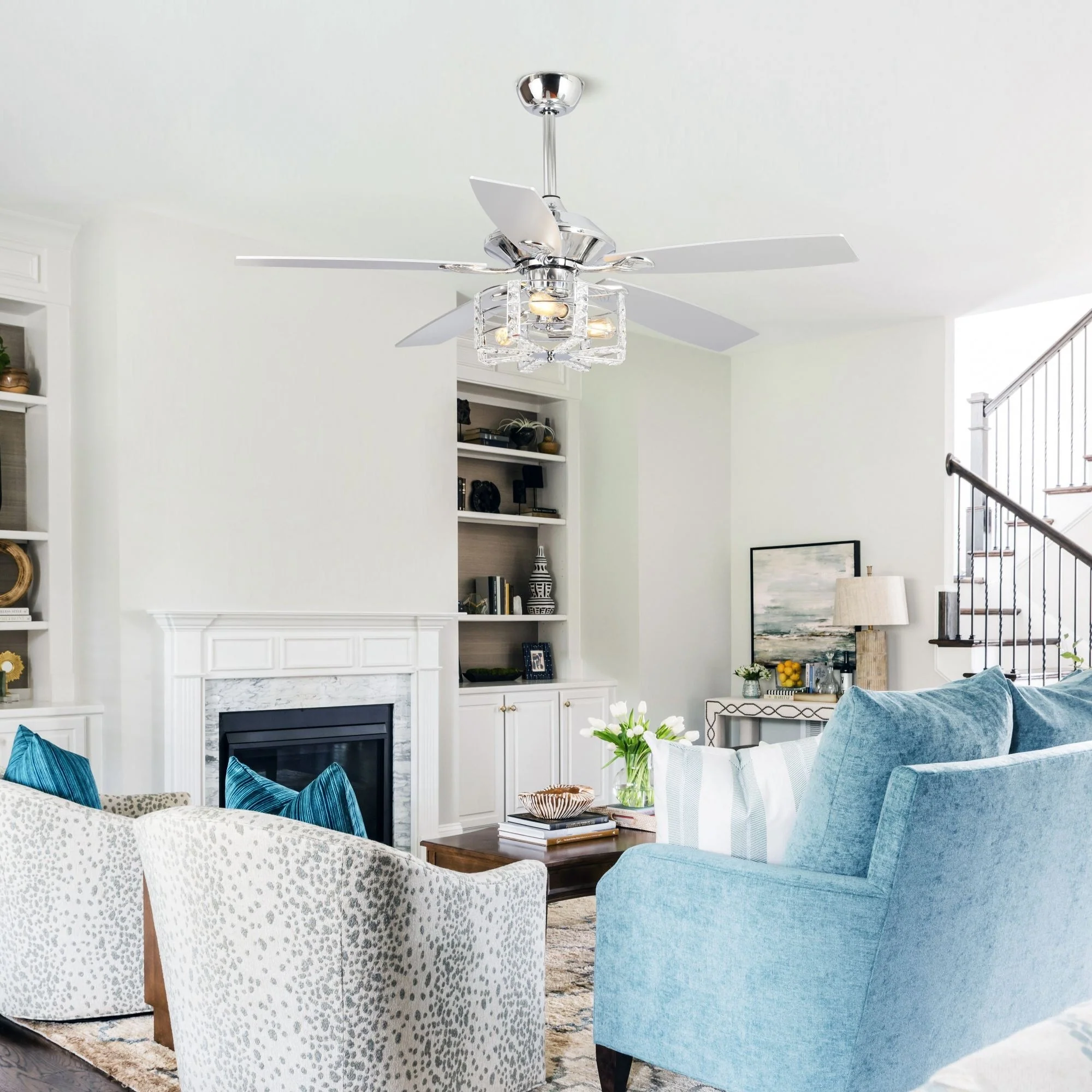 52" Chrome Wood 5-Blade Modern Crystal Ceiling Fan with Remote