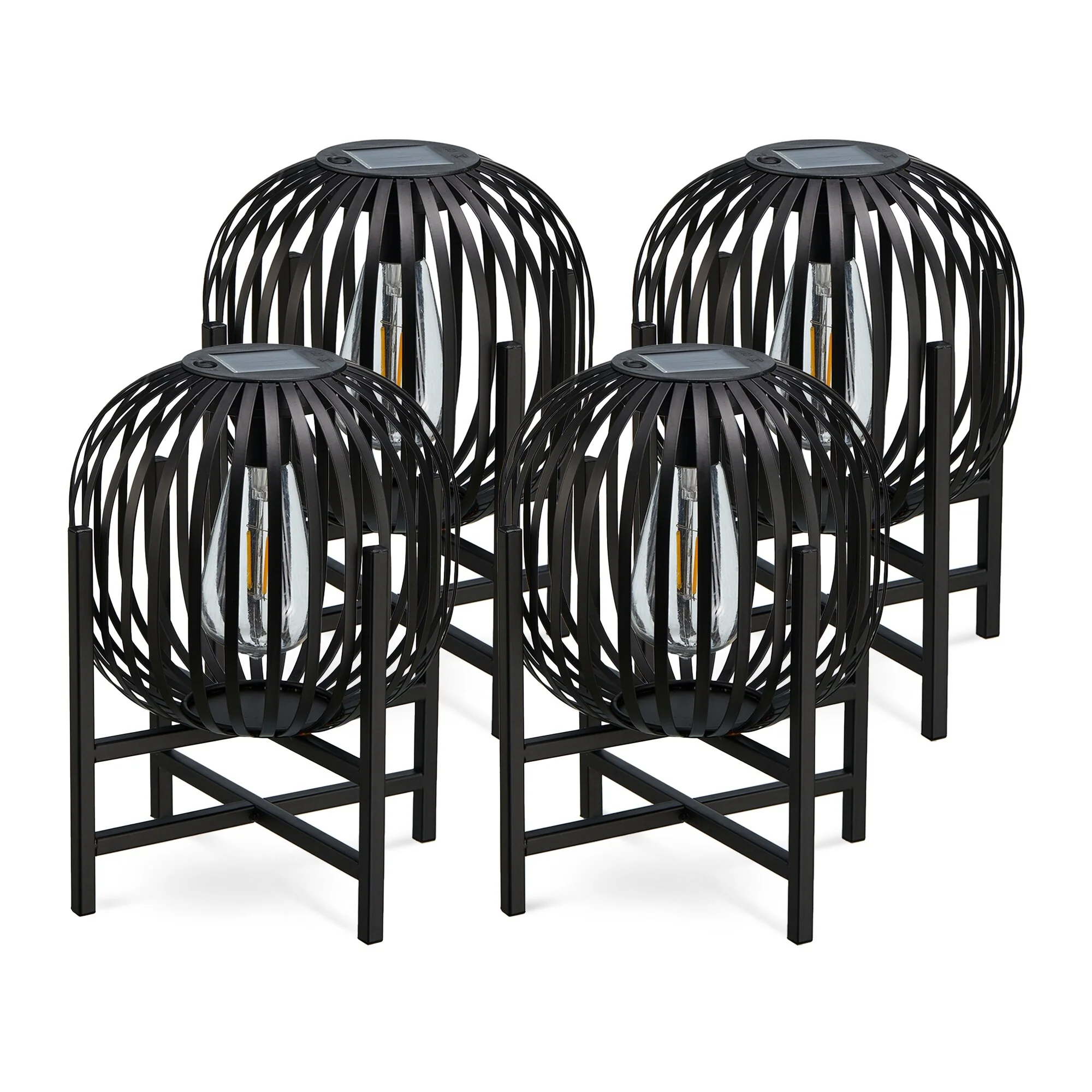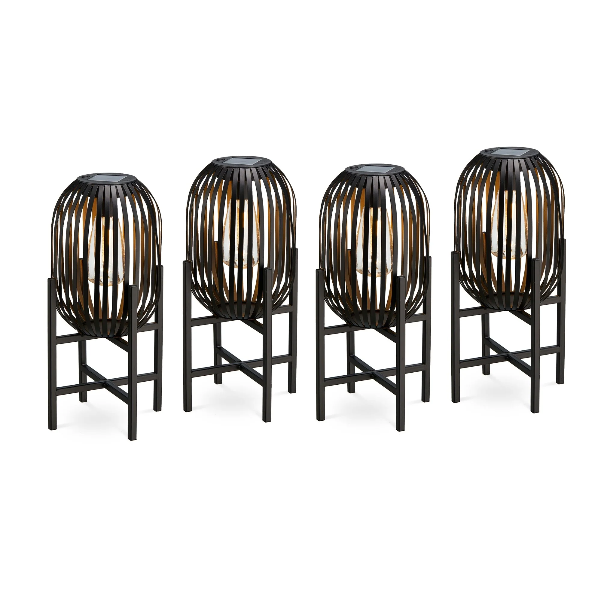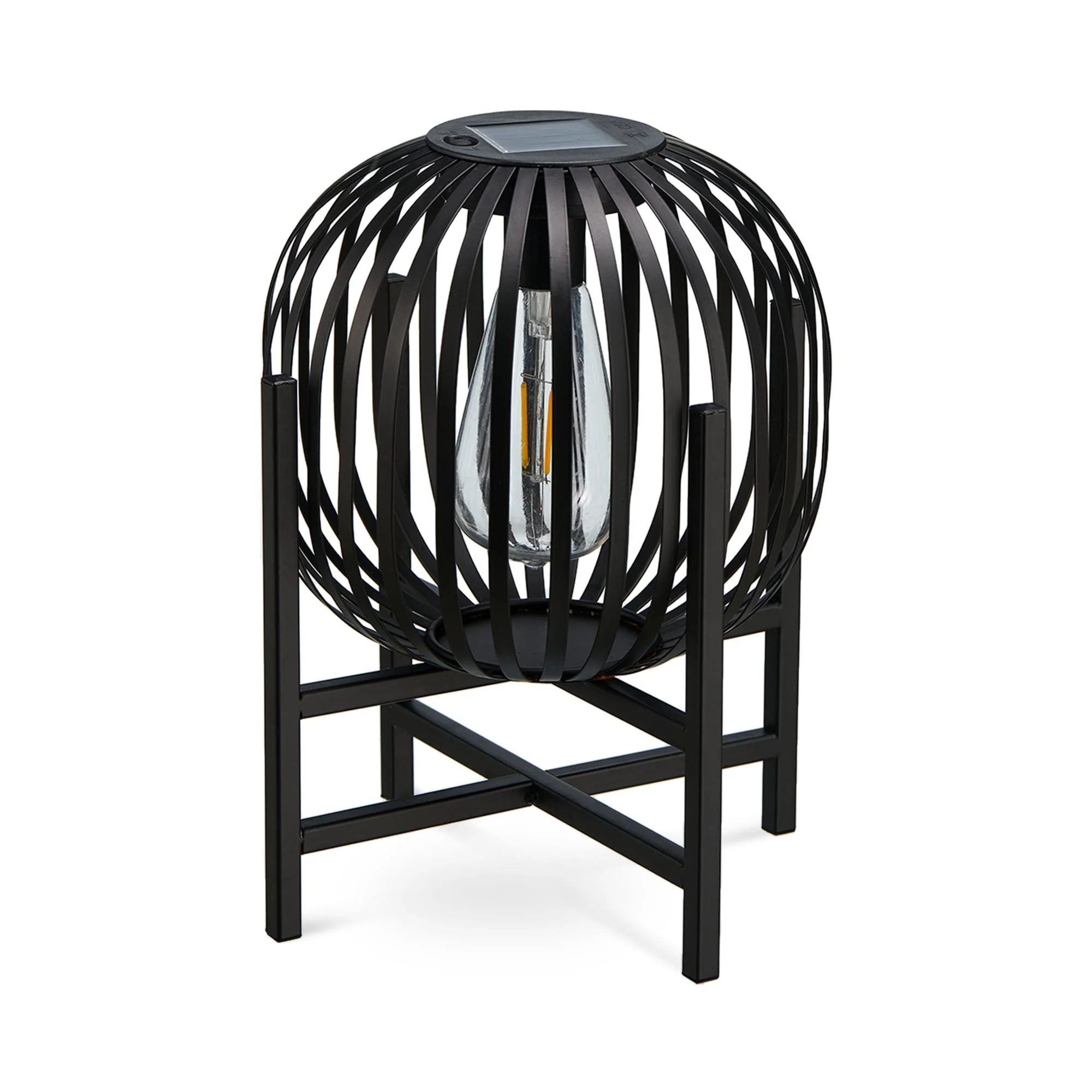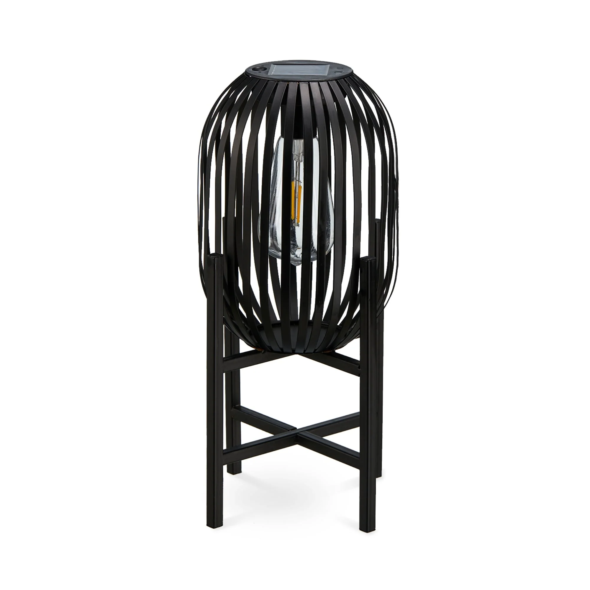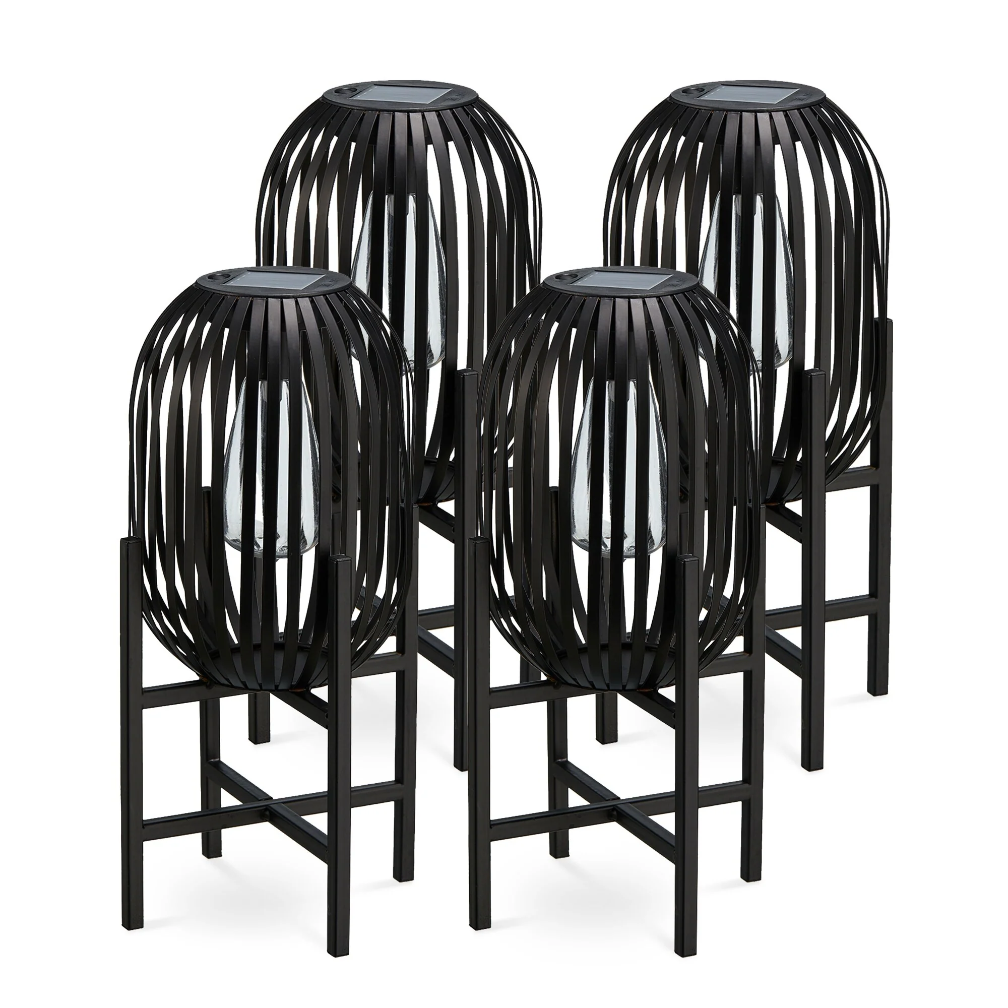 Glitzhome Outdoor Black Metal Striped Freestanding Solar Lantern Deck Lamp
