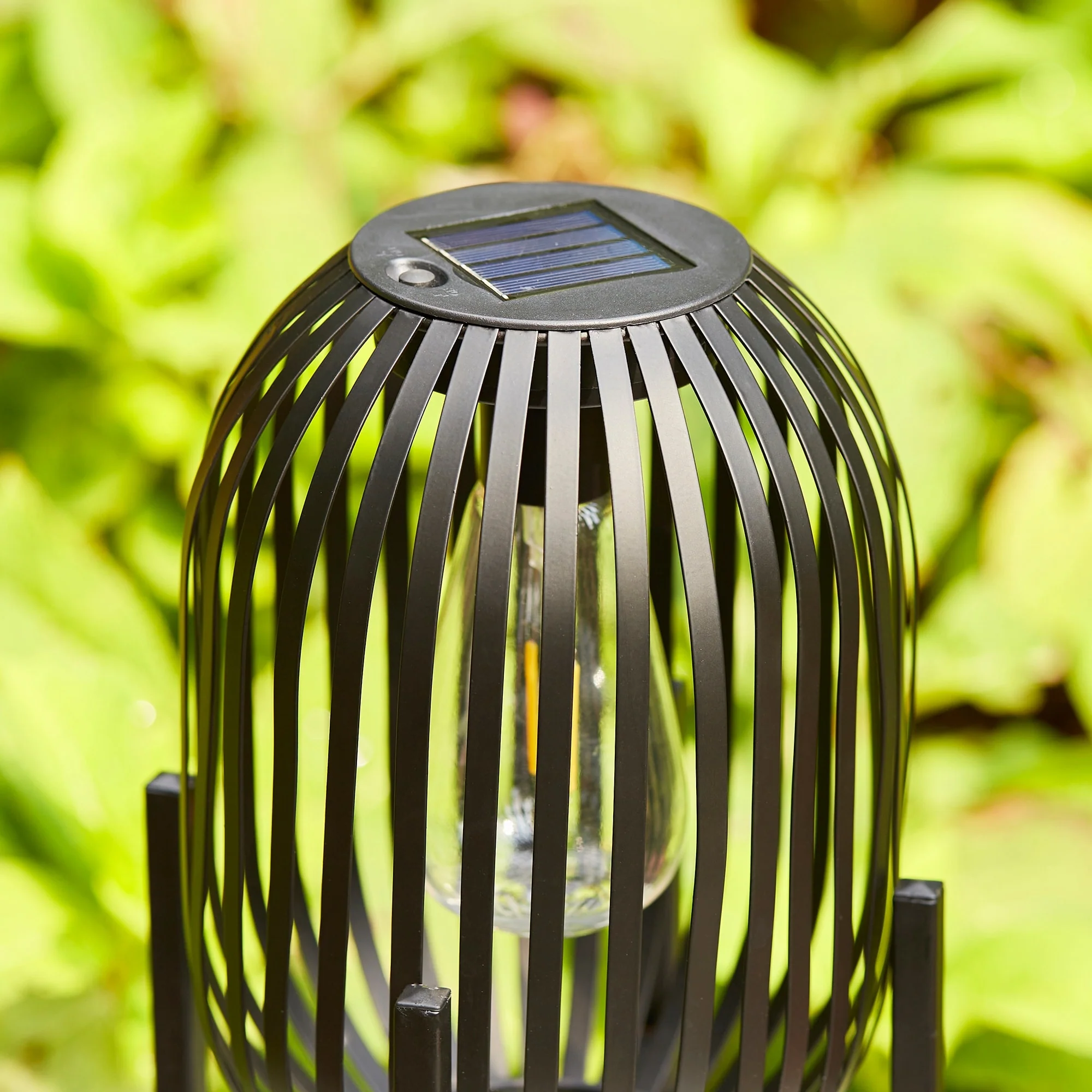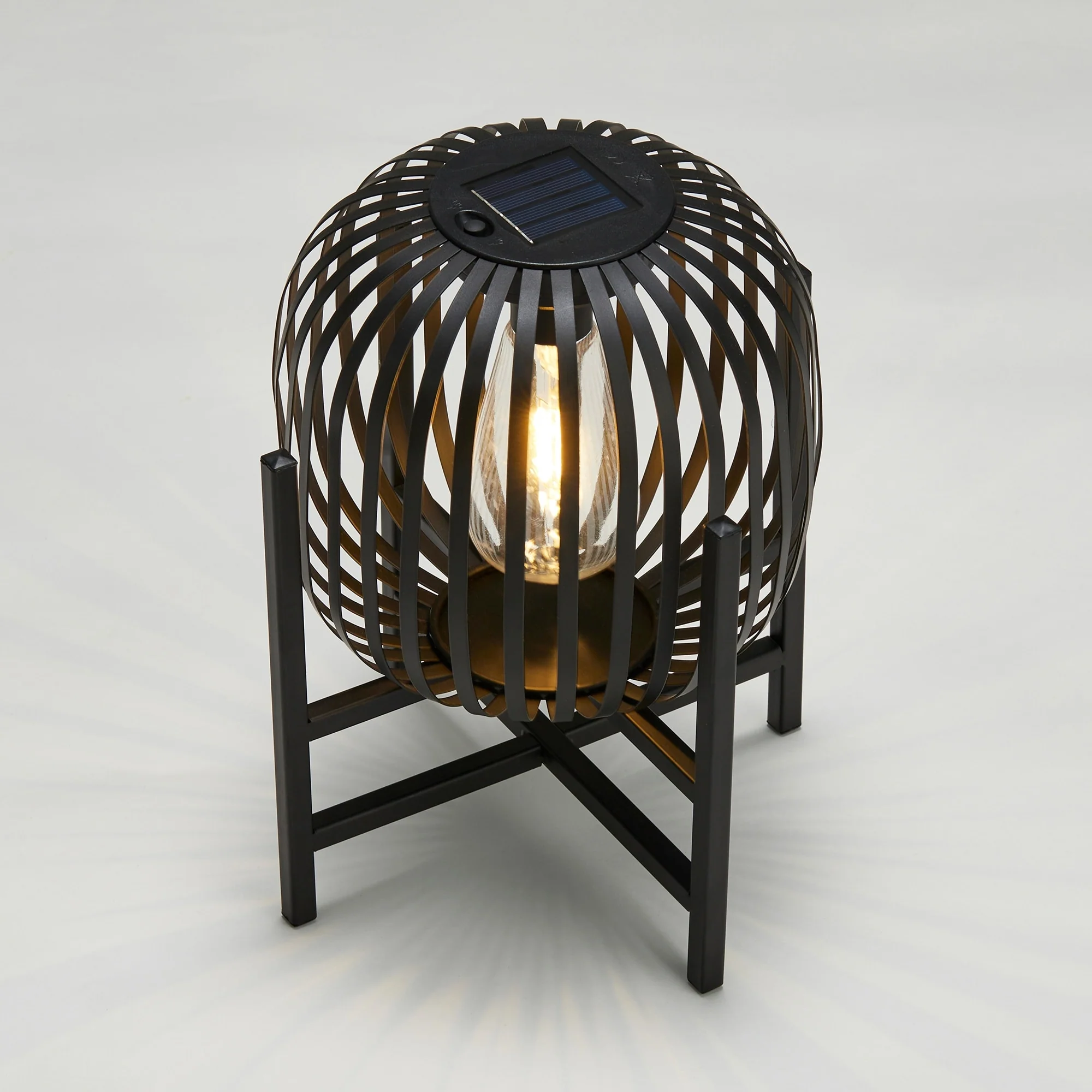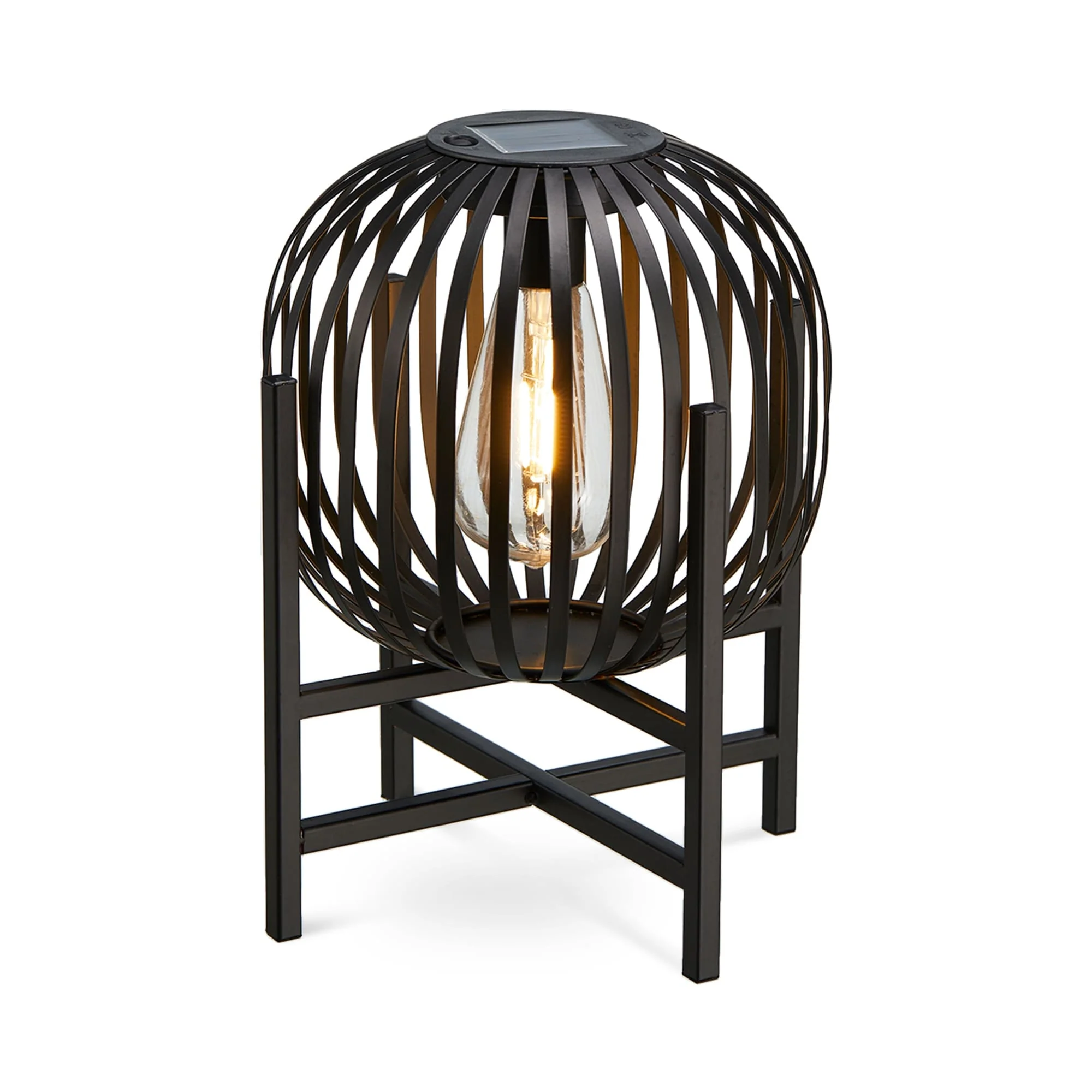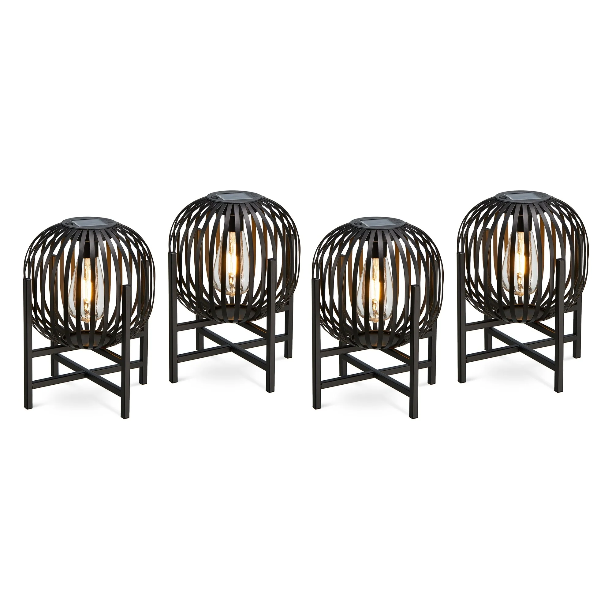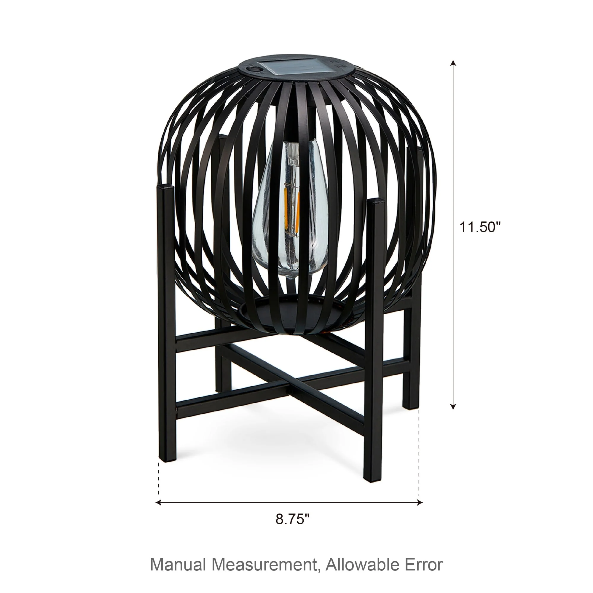 Glitzhome Outdoor Black Metal Striped Freestanding Solar Lantern Deck Lamp