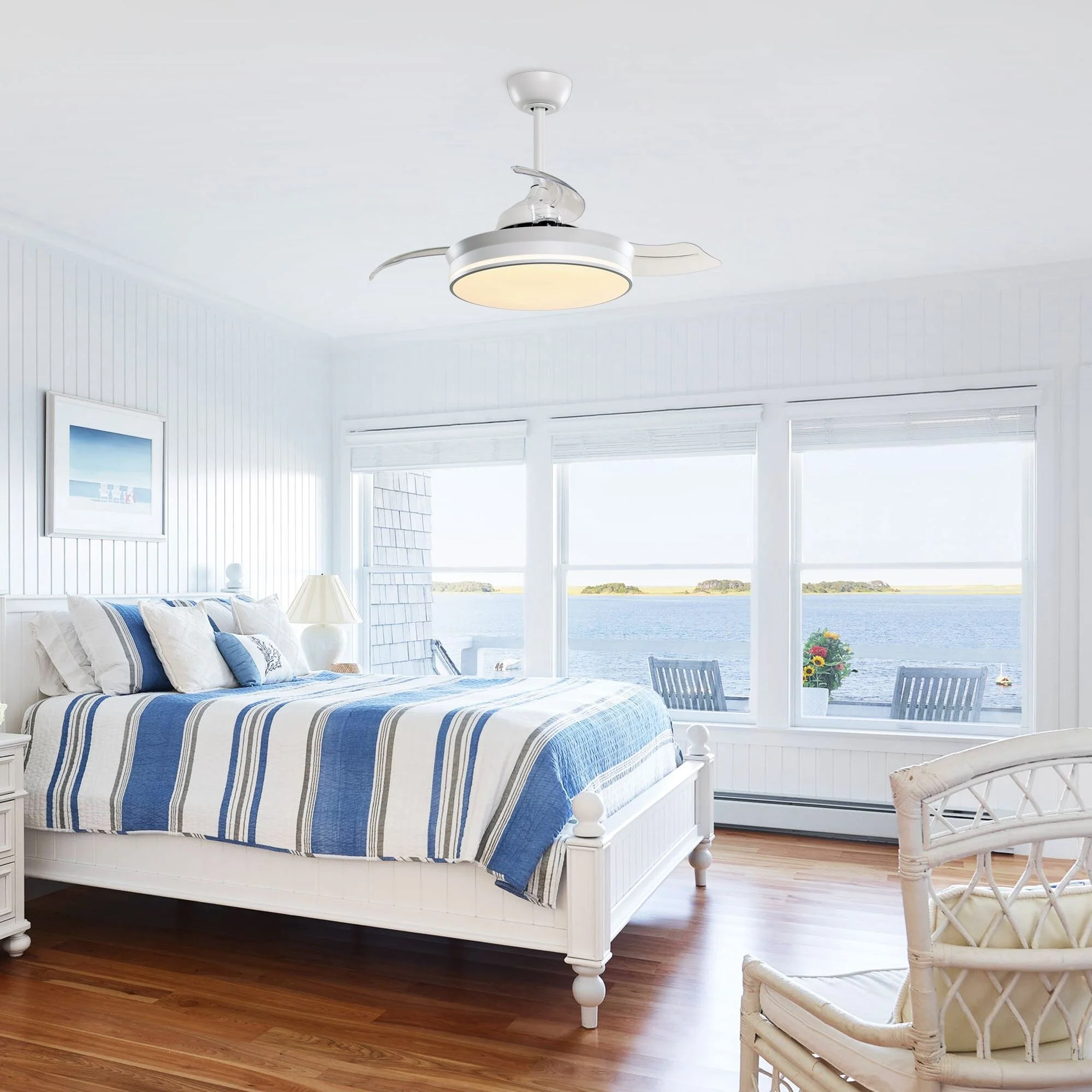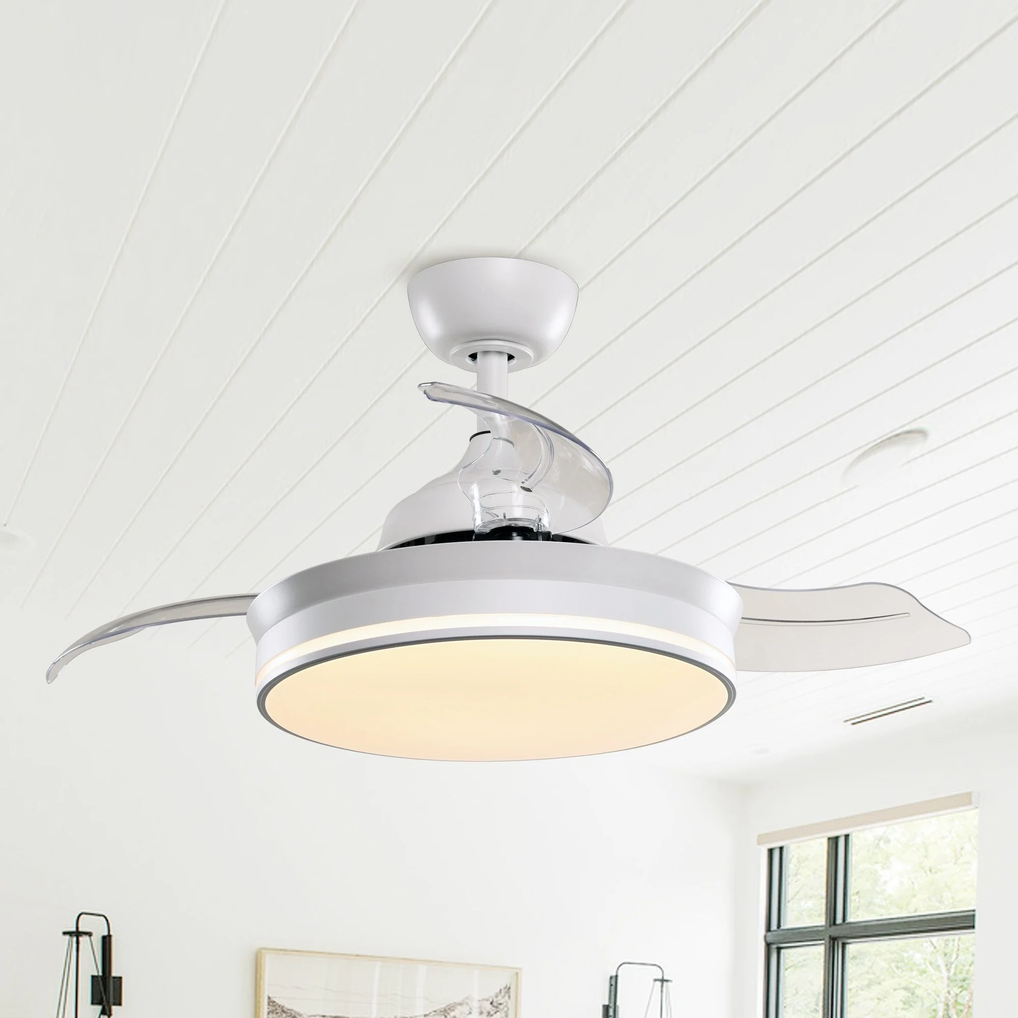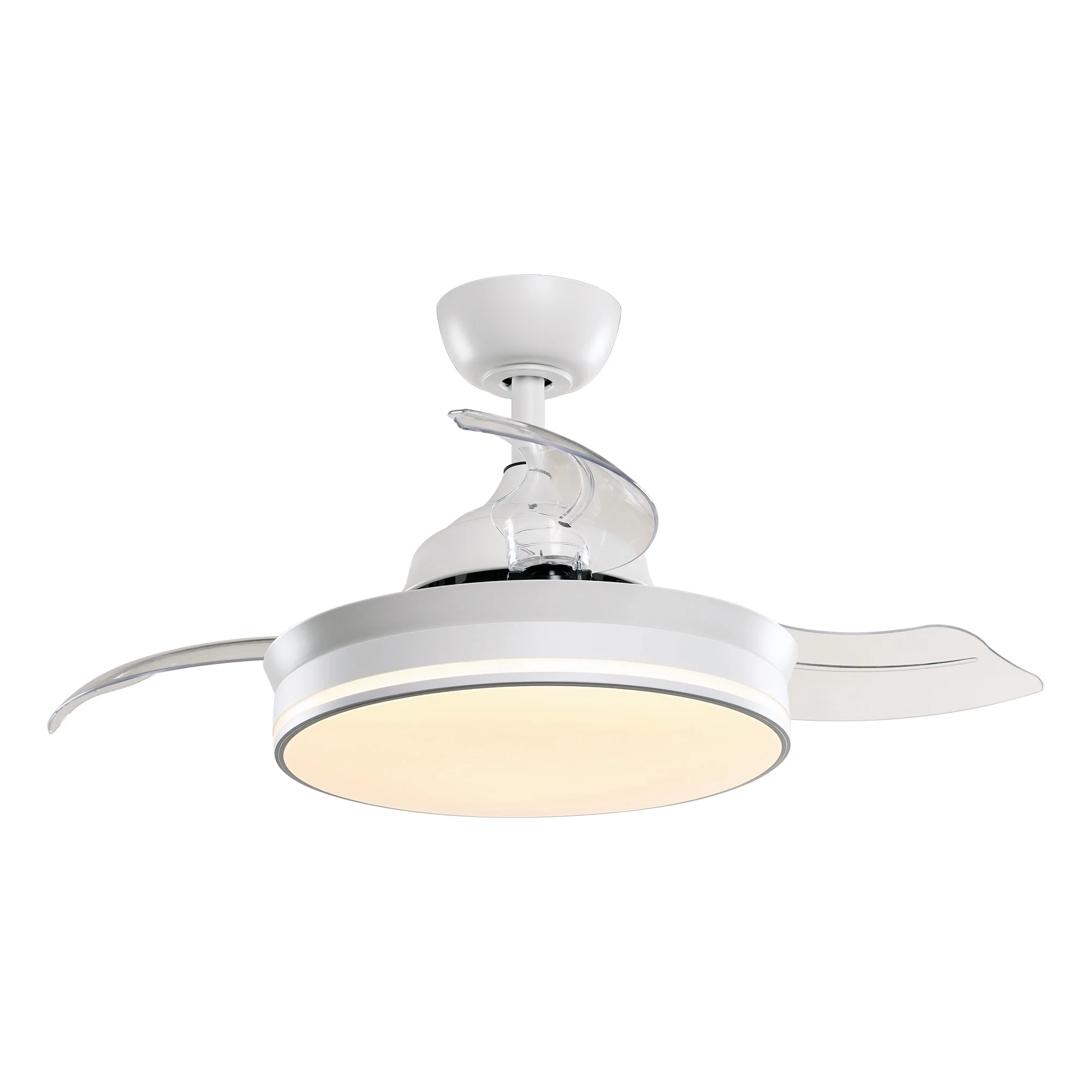 White 36" Retractable 3-Blade LED Ceiling Fan with Remote