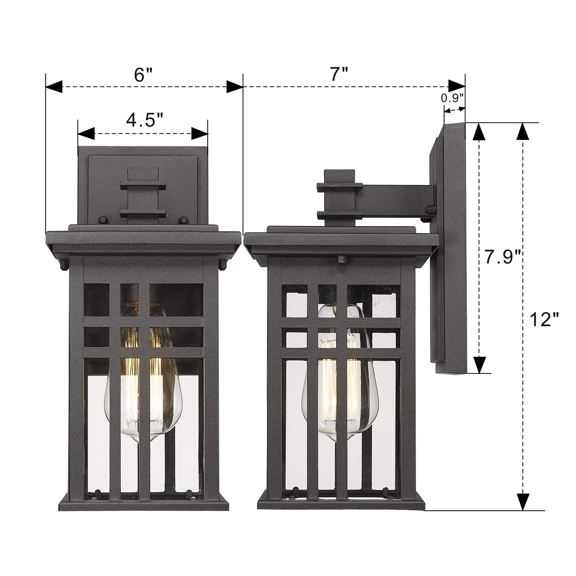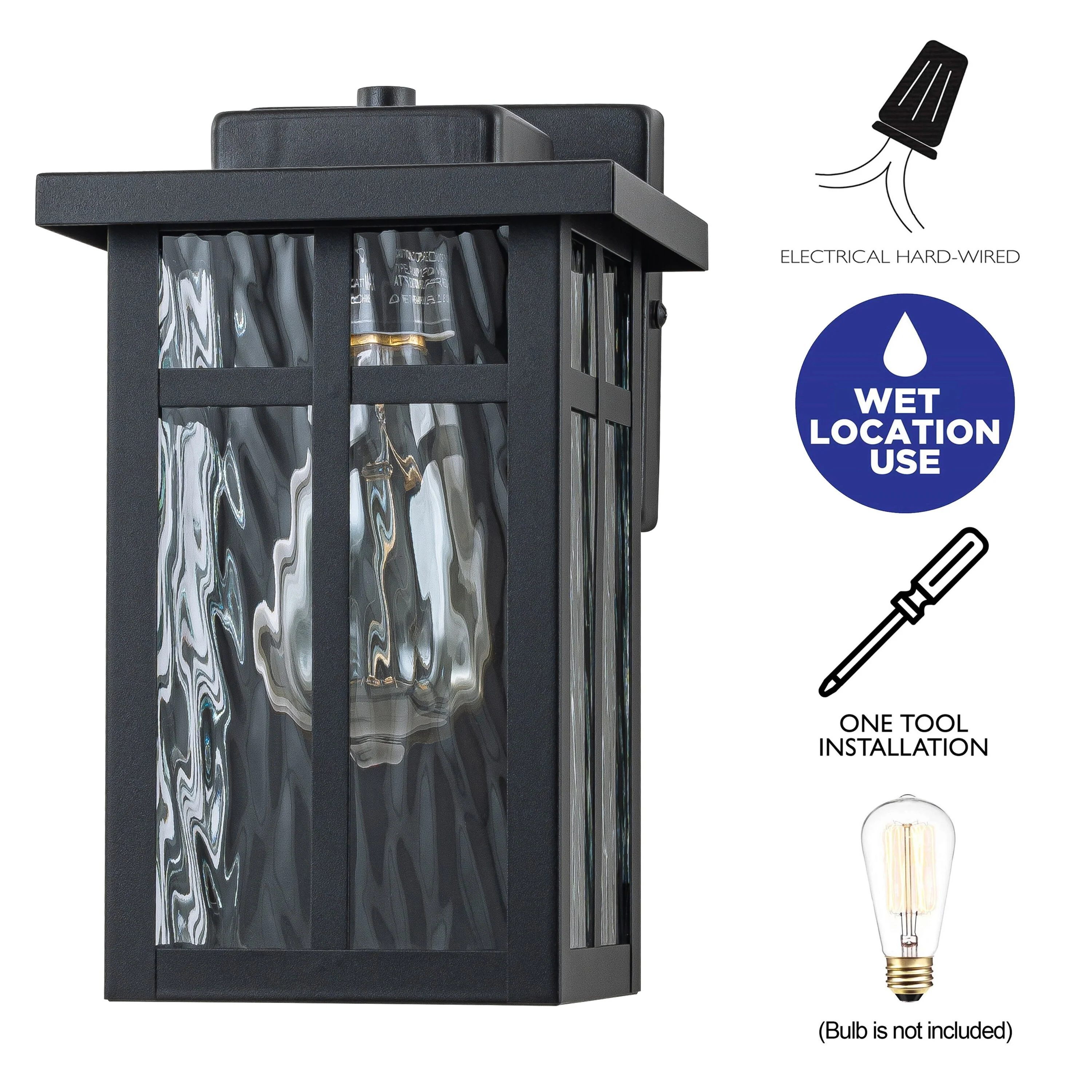 1-light Black Outdoor Wall Lantern