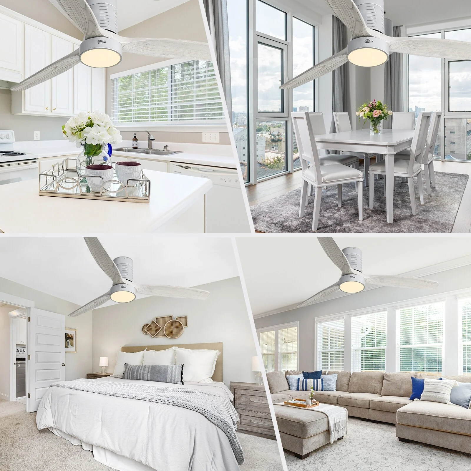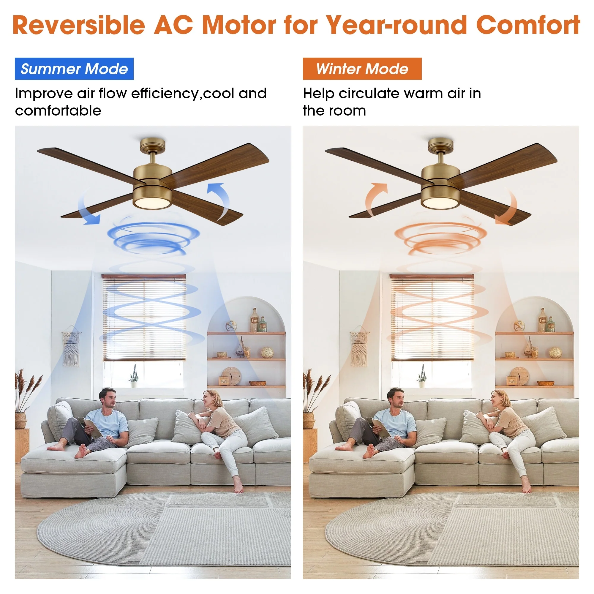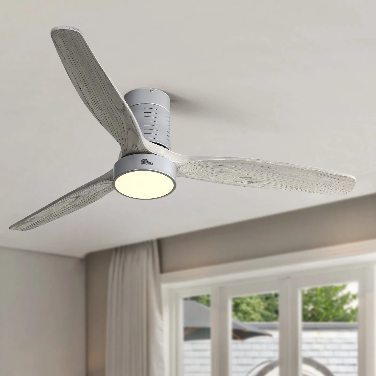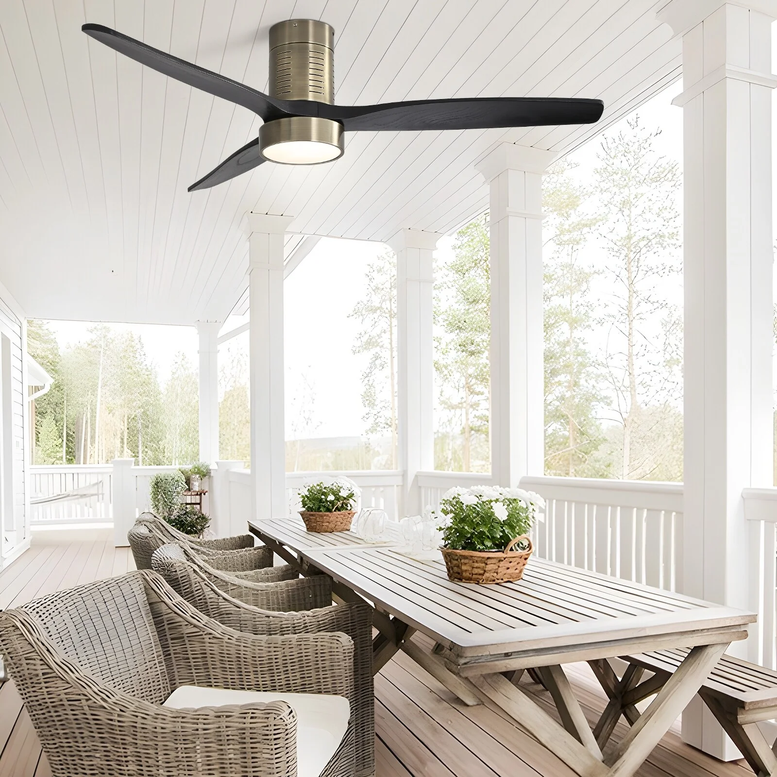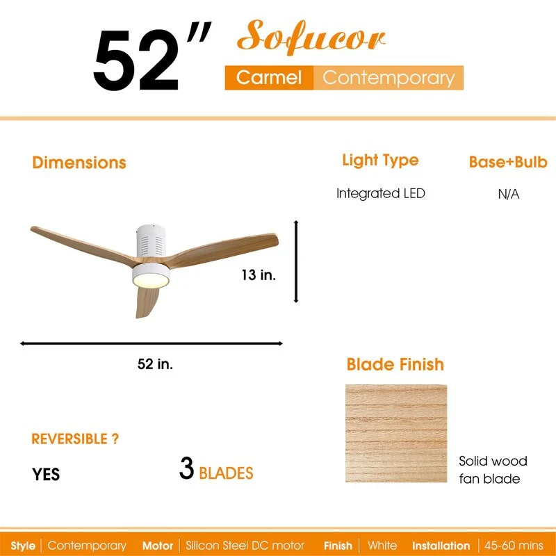 52 Inch Farmhouse Style Flush Mount Ceiling Fan with Light and Remote Control, Reversible DC Motor