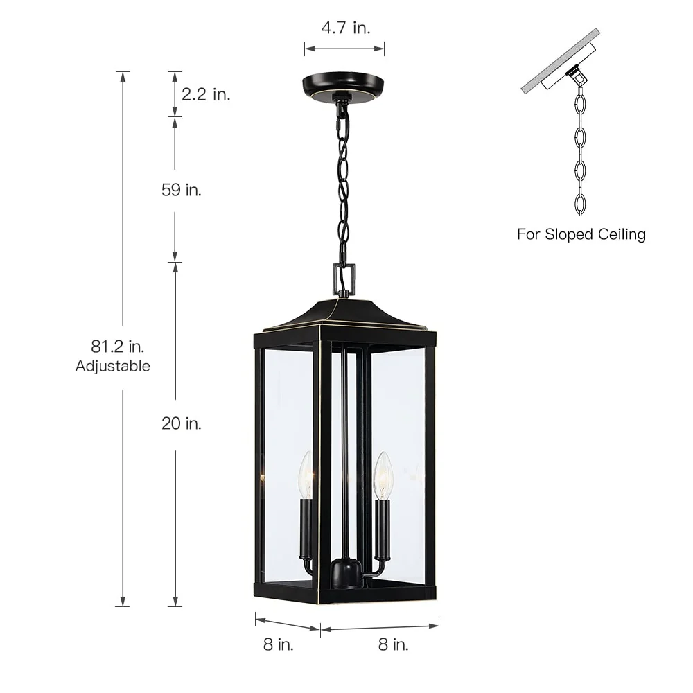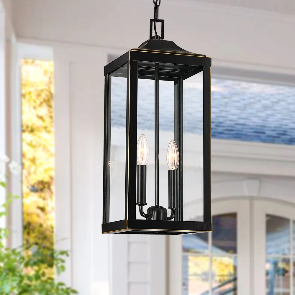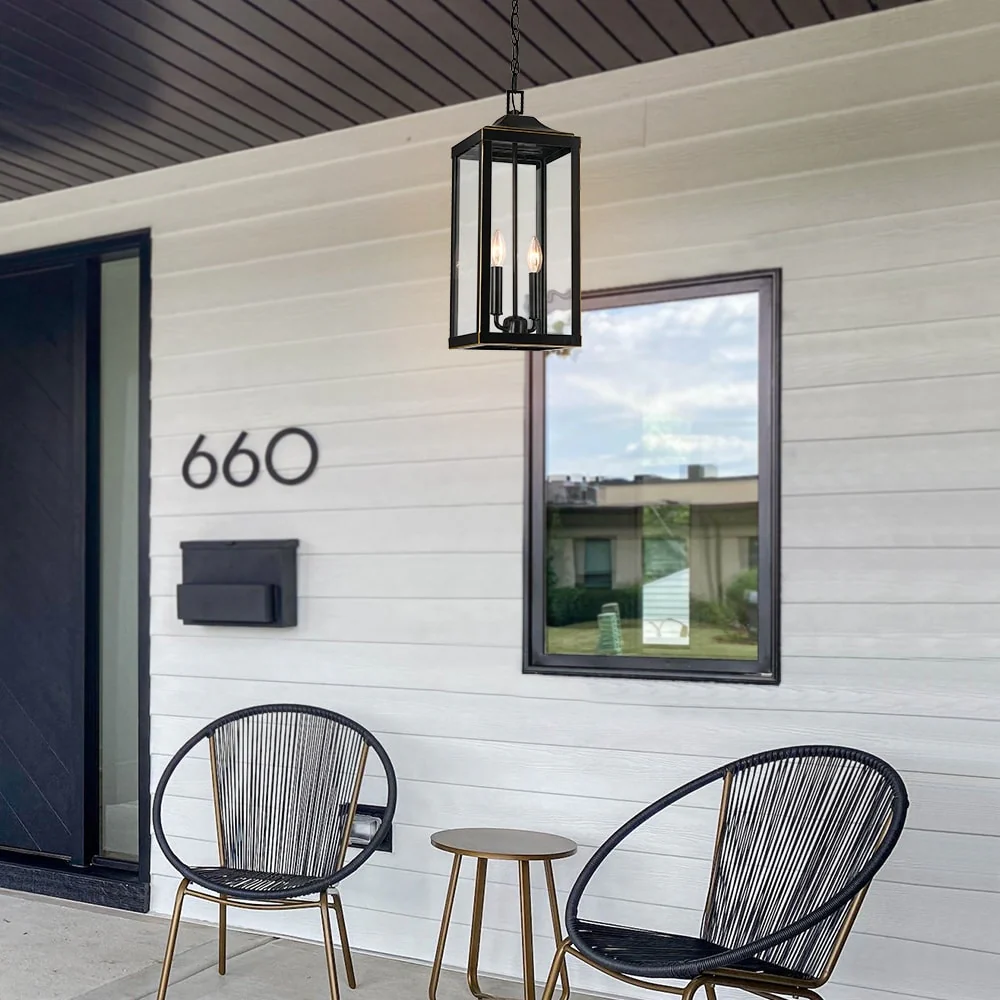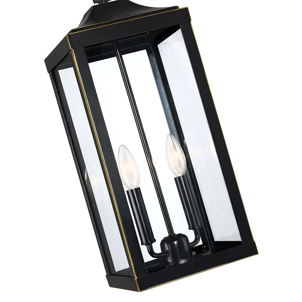 2-Light Bronze Large Transitional Outdoor Hanging Pendant Light with Clear Glass - 20 in. H