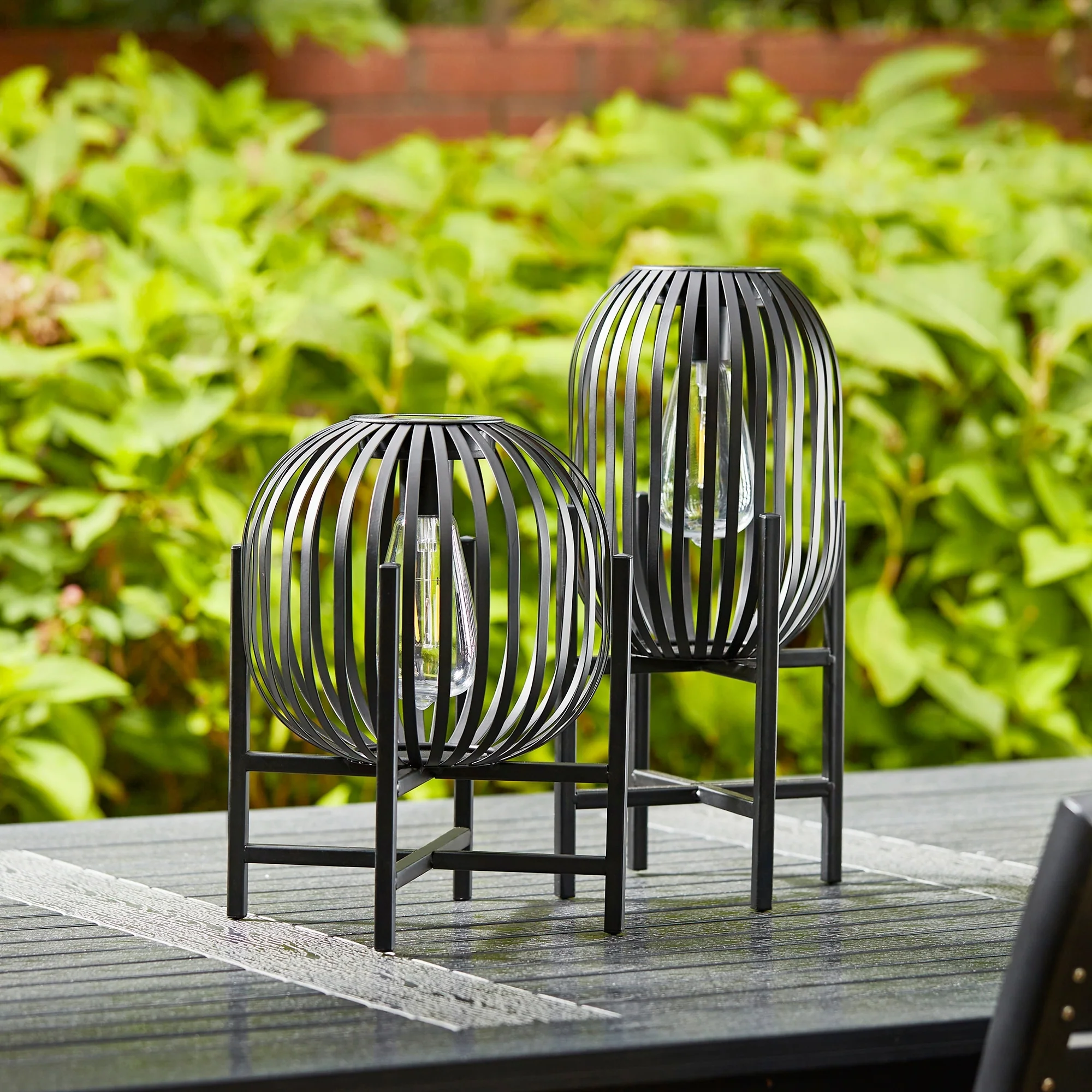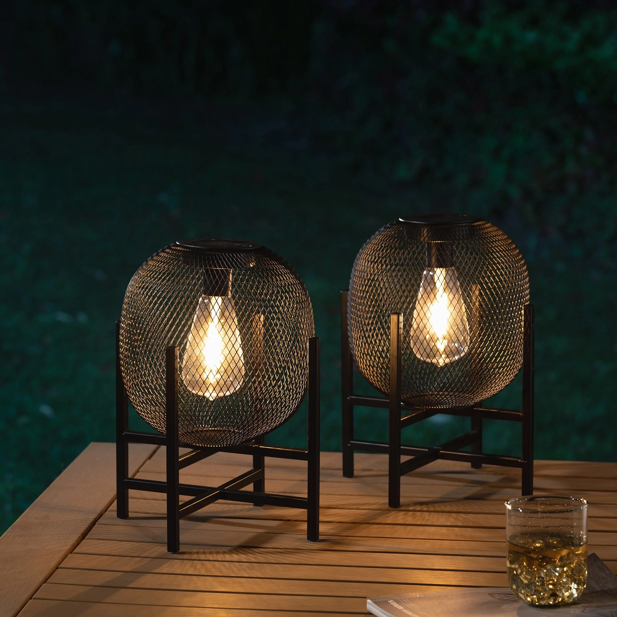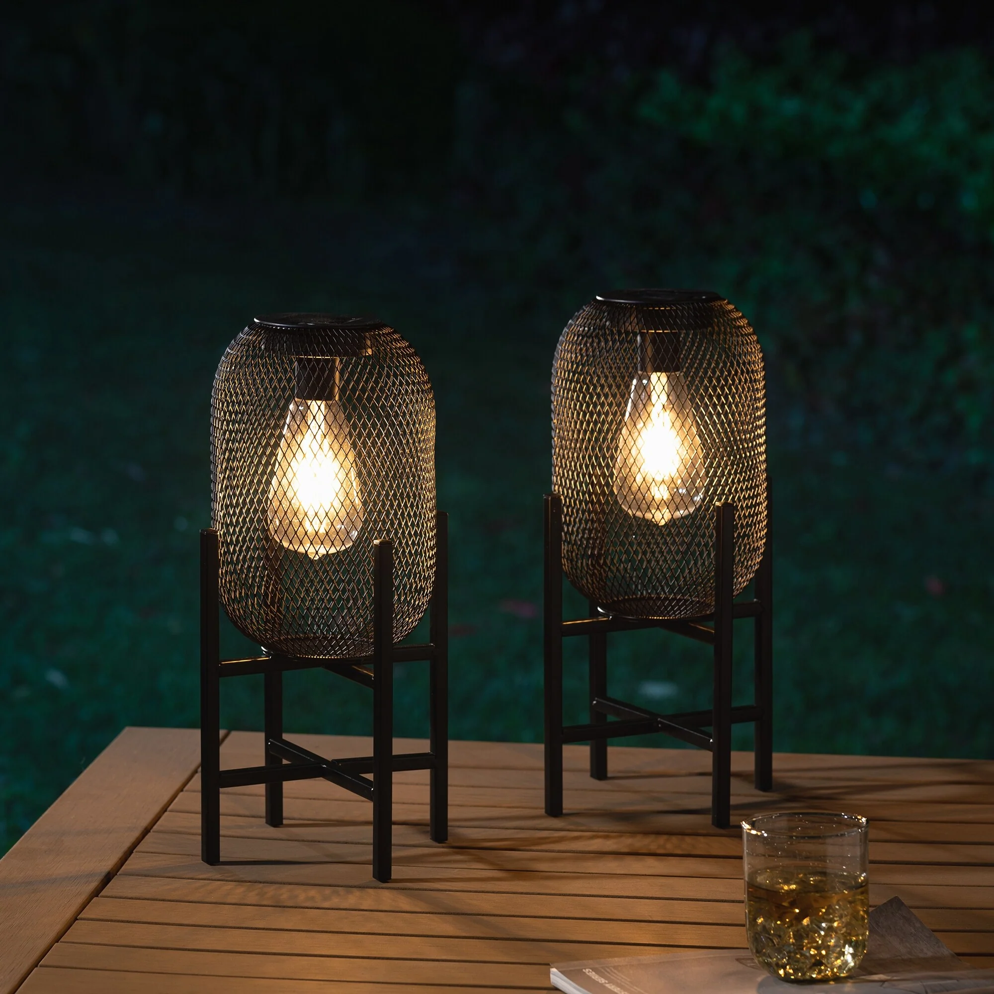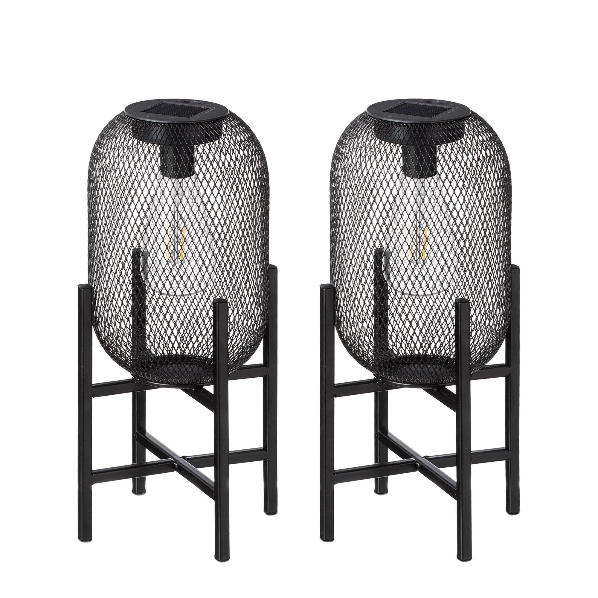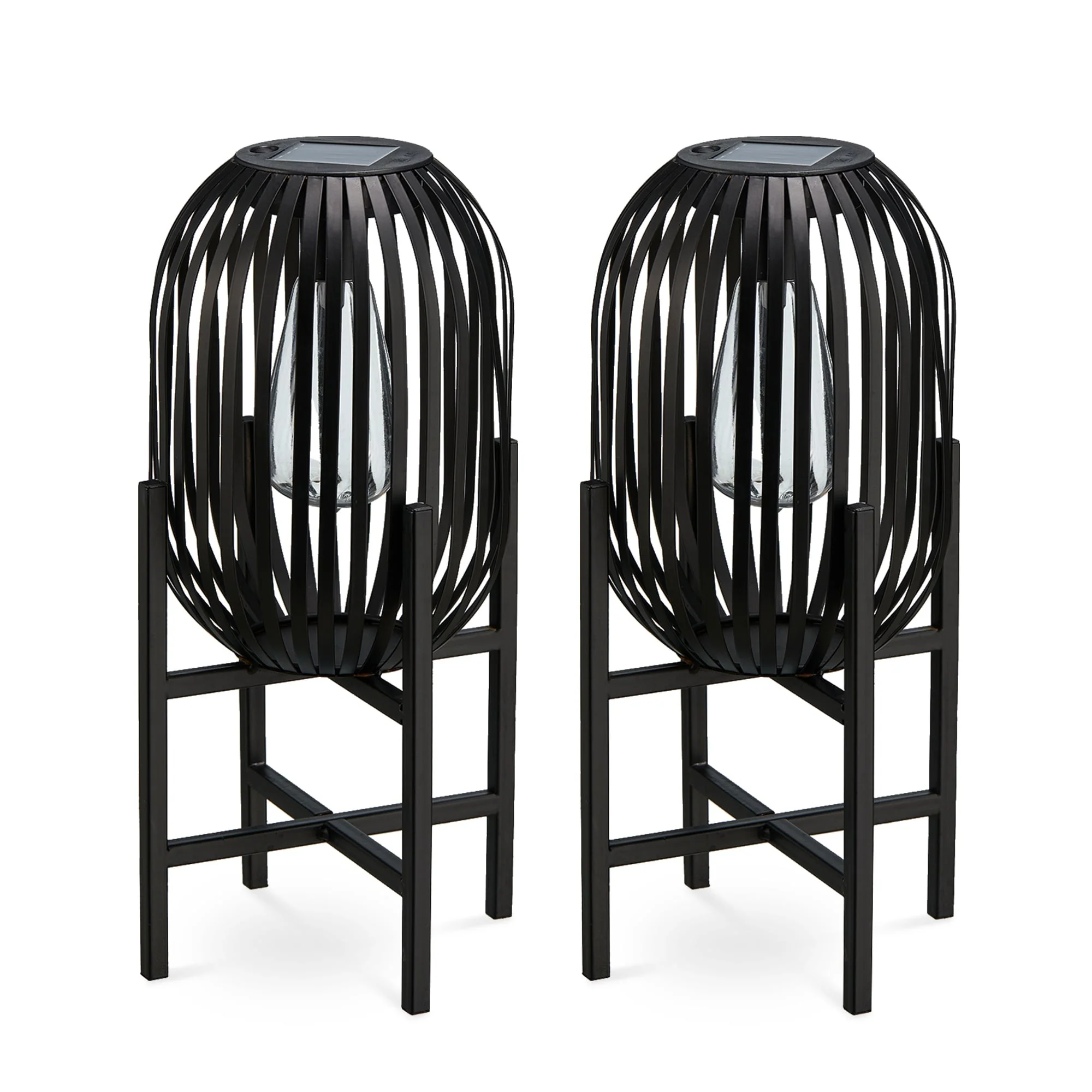 Glitzhome Set of 2 Metal Black Solar Powered Outdoor Lantern with Stand