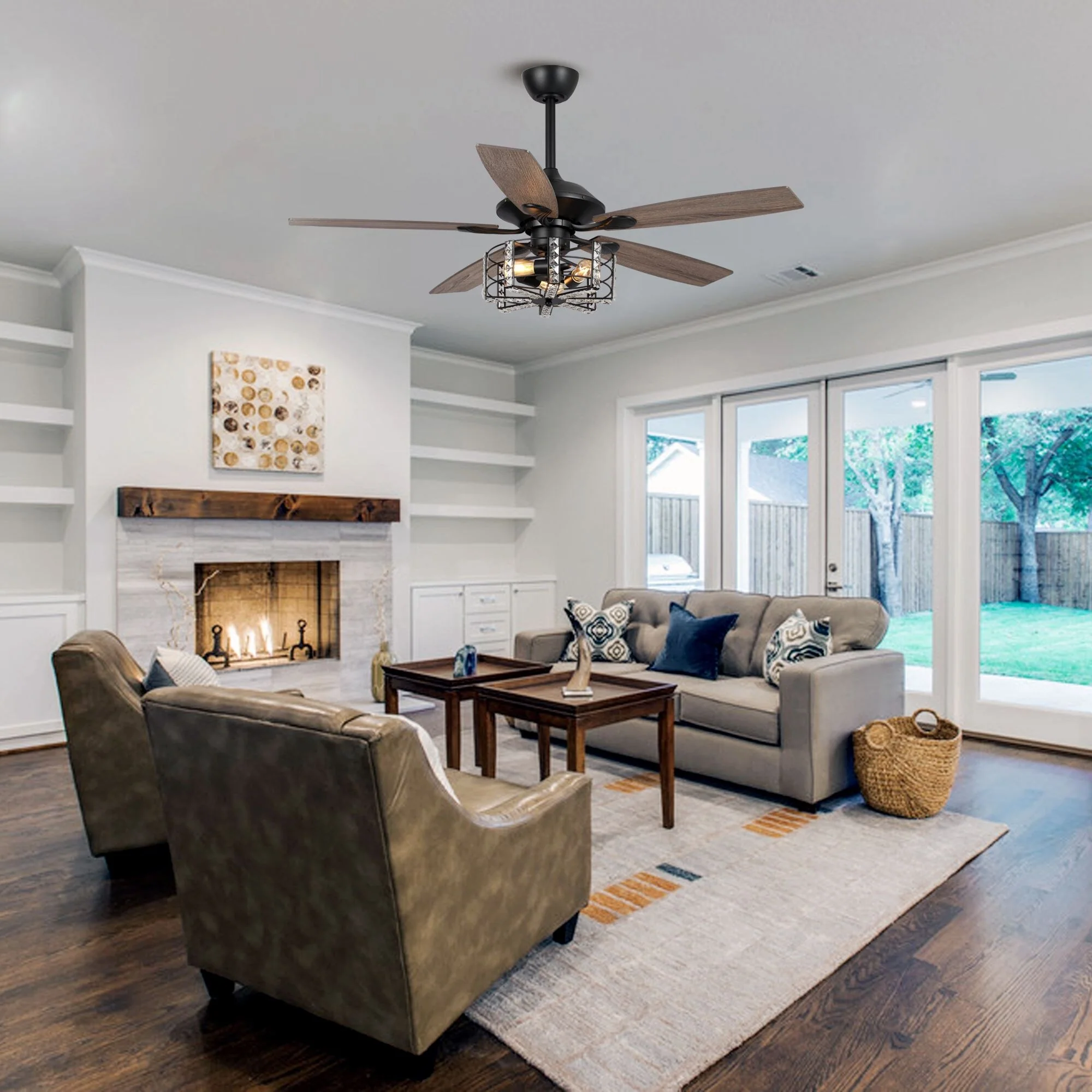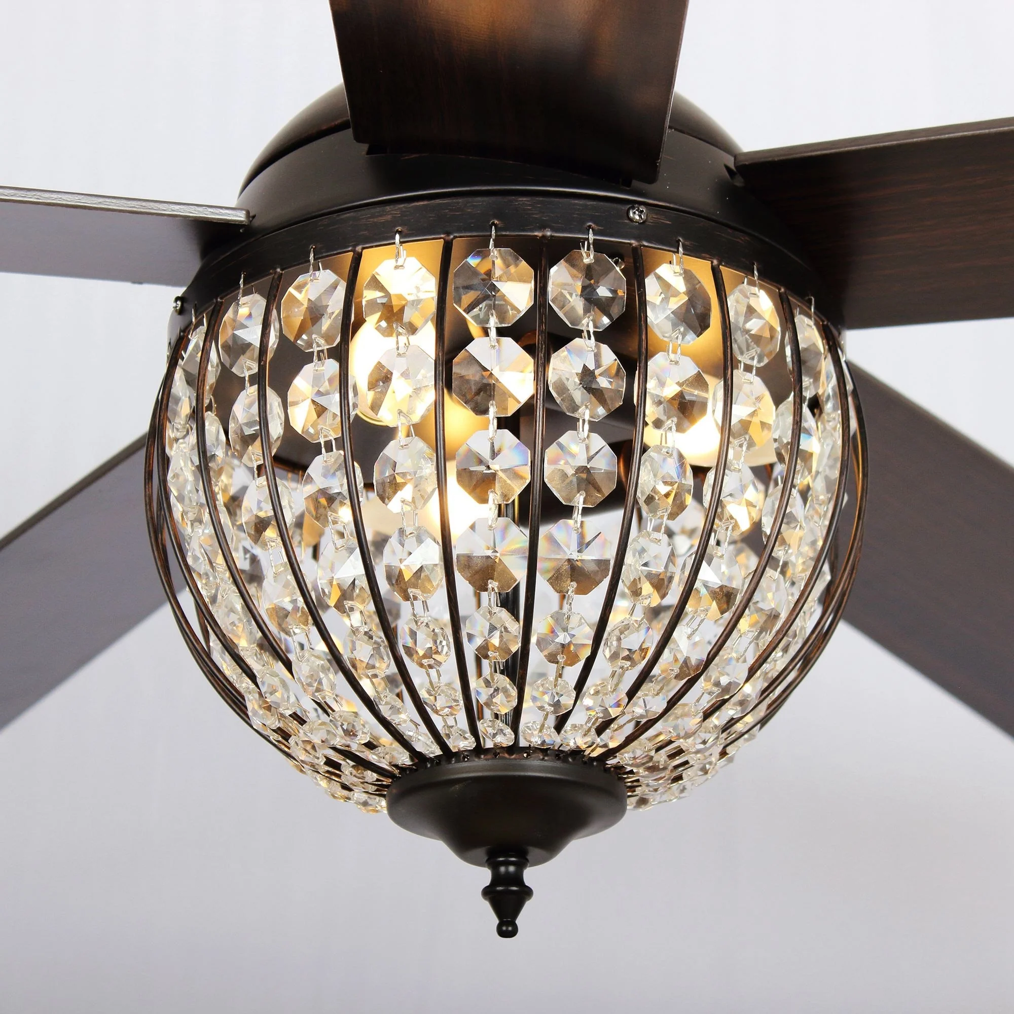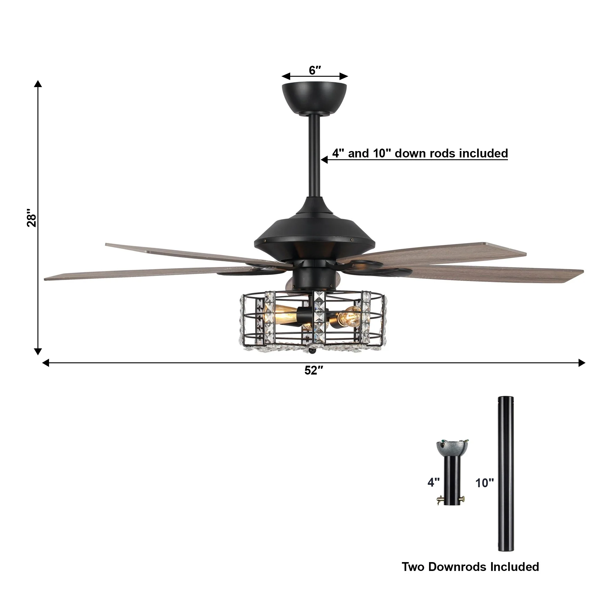 52" Industrial Black Wood 5-blade Crystal Ceiling Fan with Remote