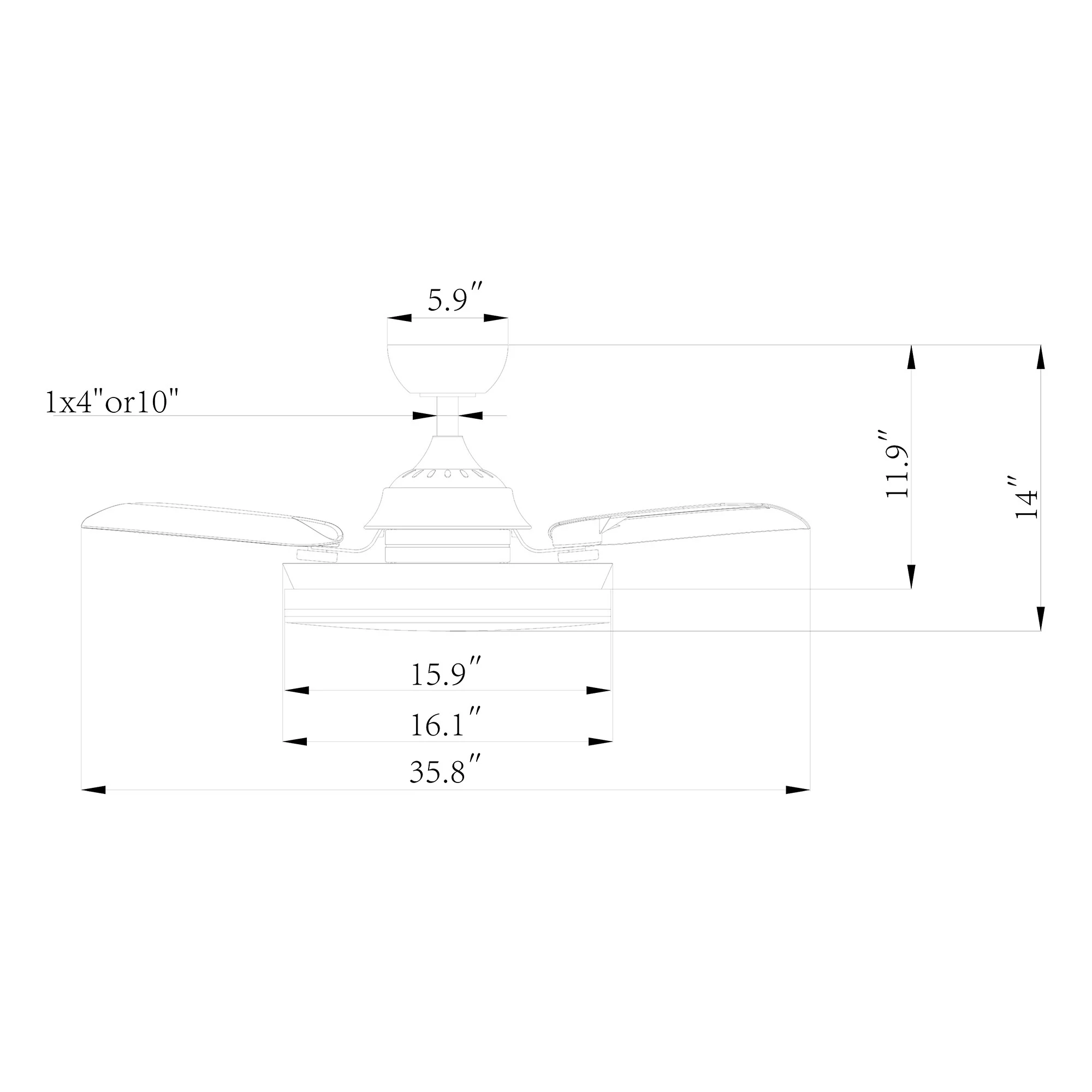 14.25" H x 5.25" W x 5.25" D