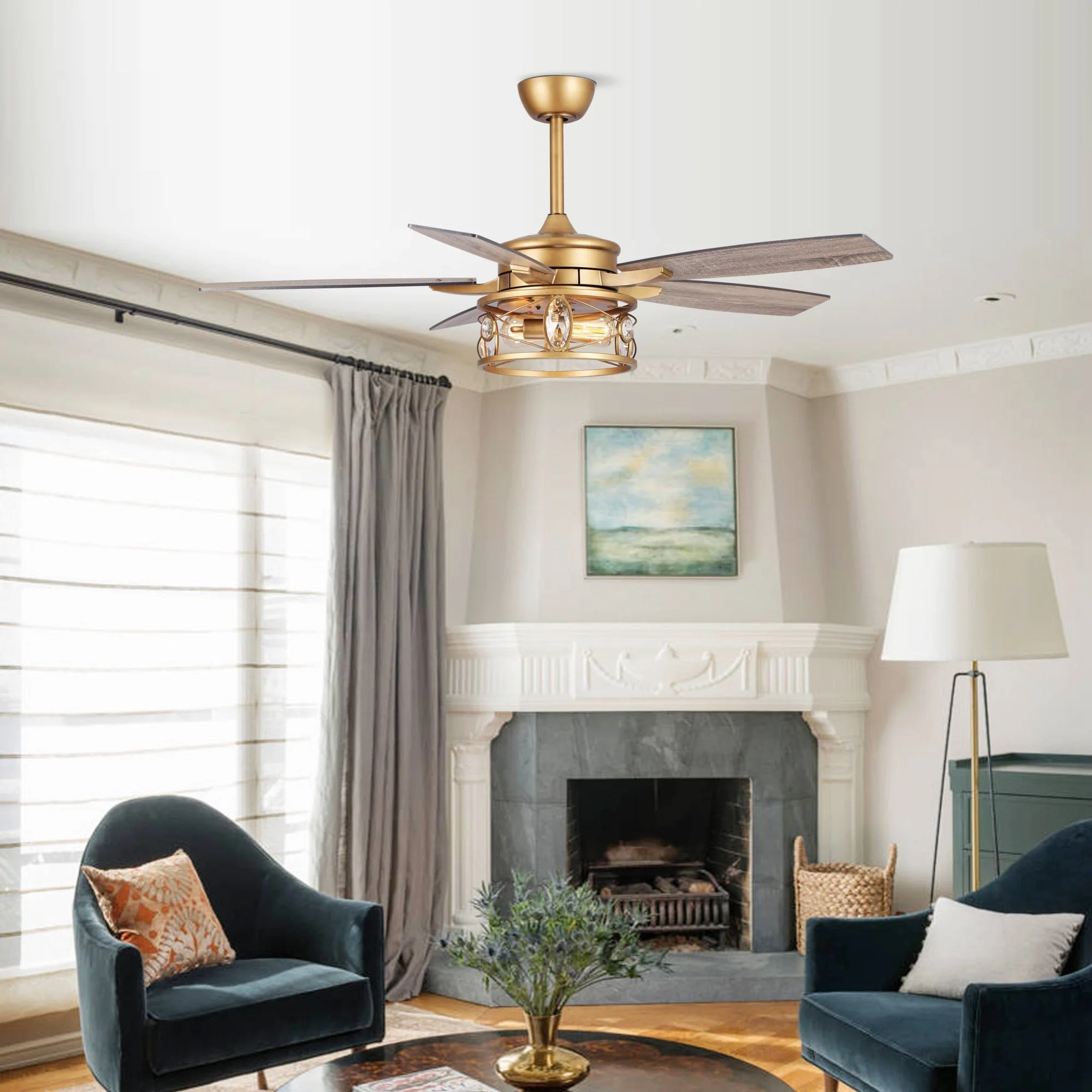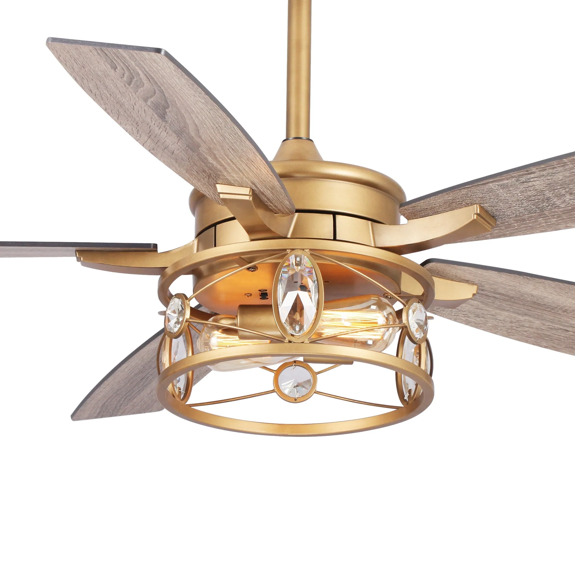 52" Brushed Brass 2-Light Crystal LED Ceiling Fan with Remote