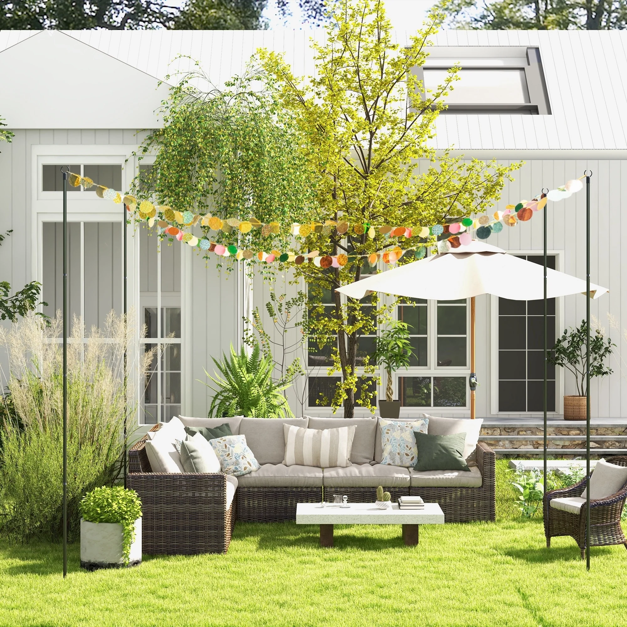 Outsunny 4 Pack of String Light Poles, 10' Light Poles for Hanging Outside Decor, Steel Lighting Stand
