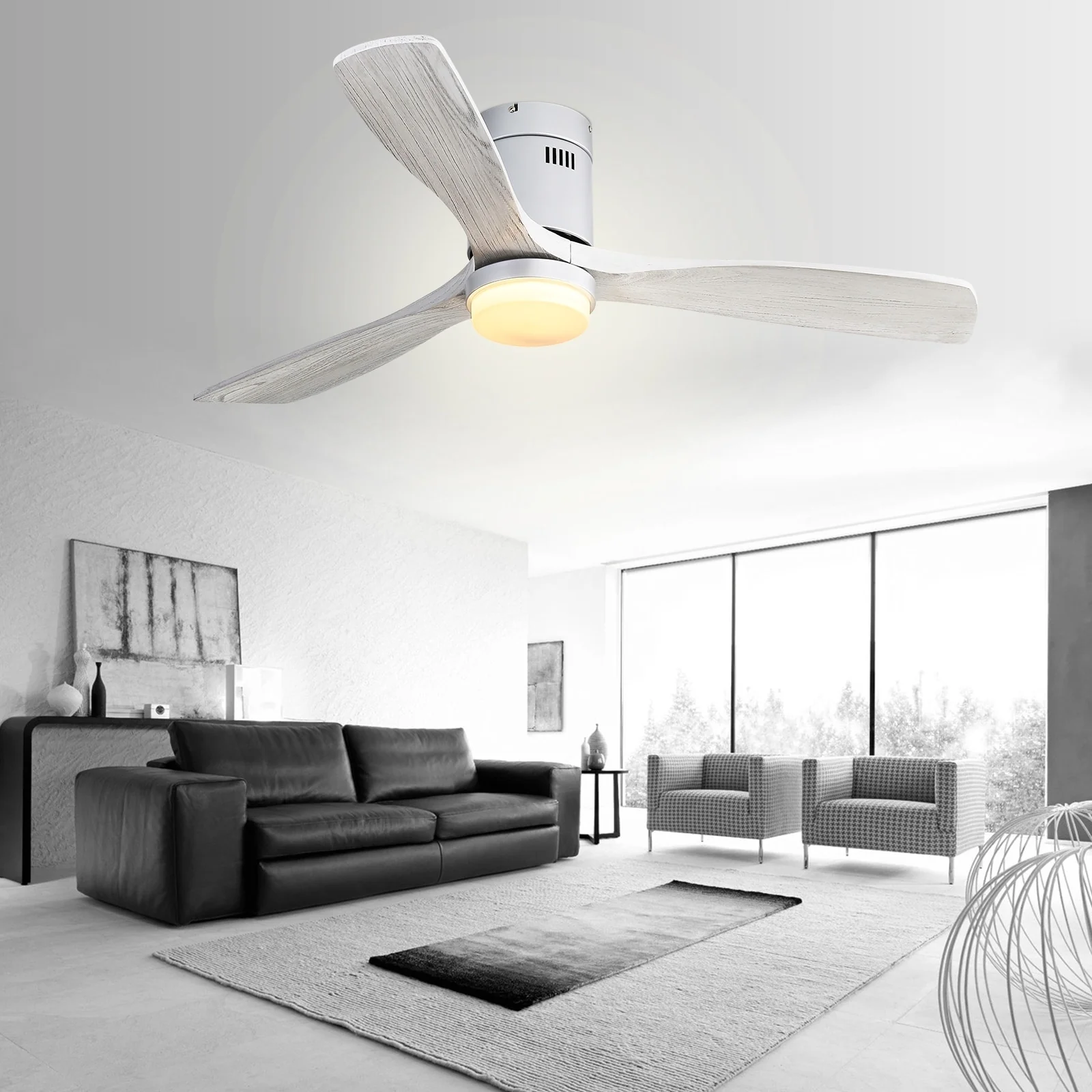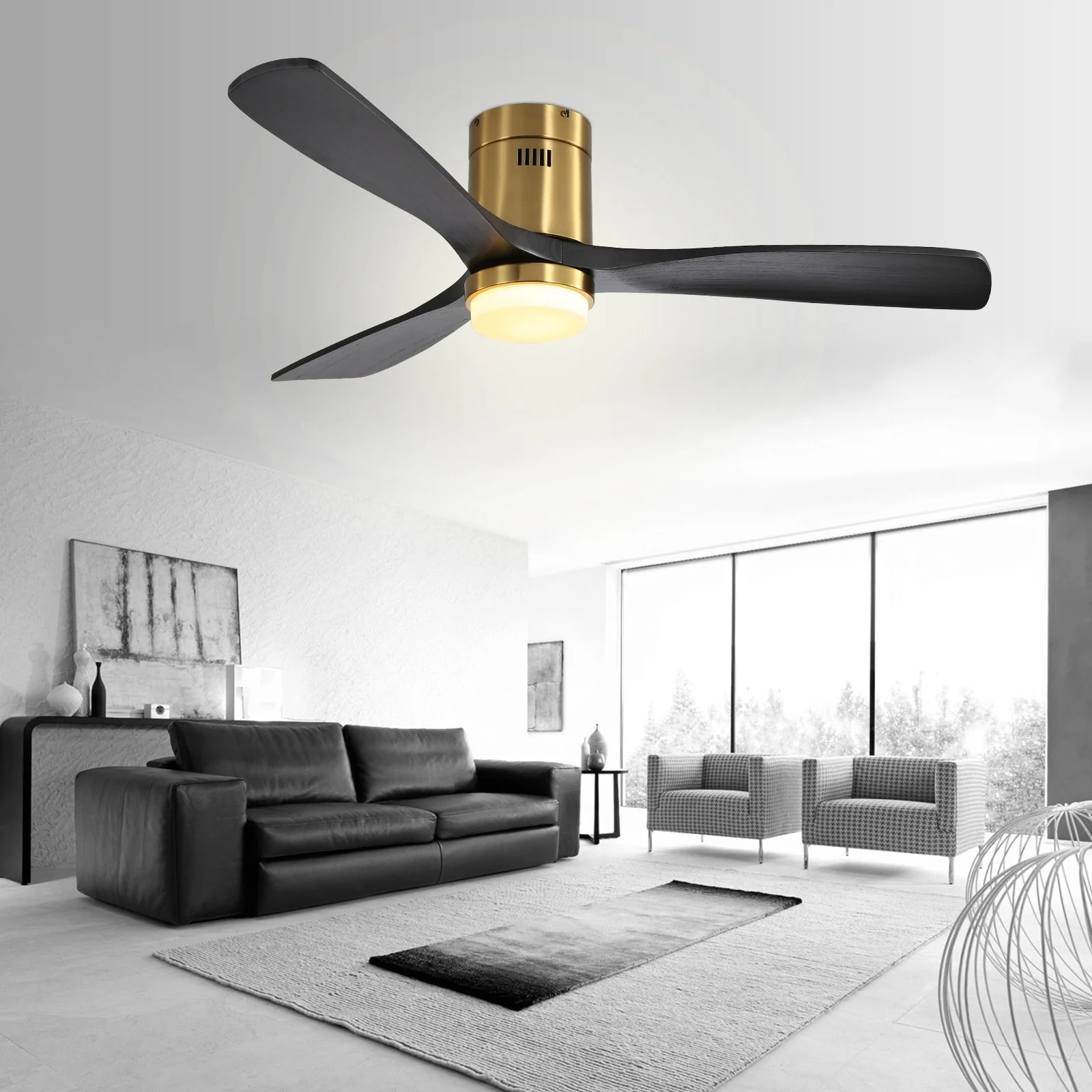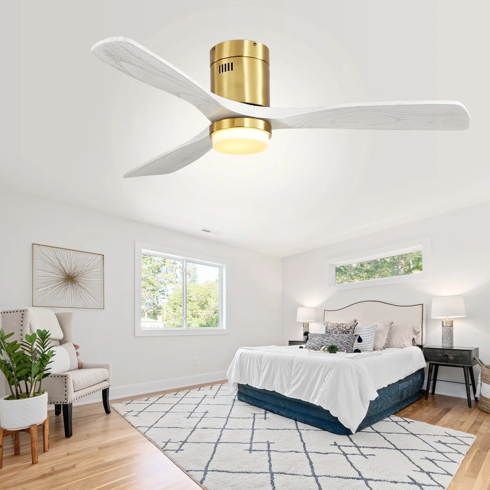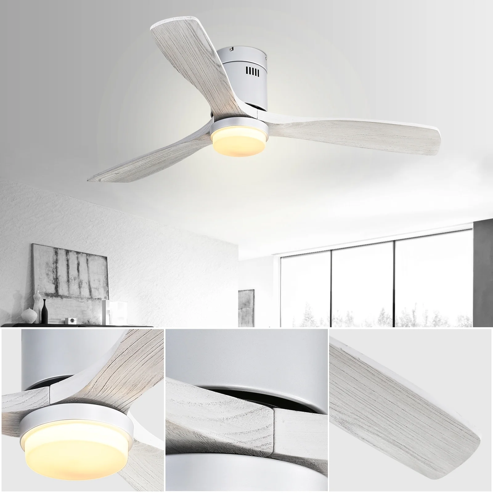 52 Inch Flush Mount Ceiling Fan With/without Light and Remote Modern Ceiling Fan Bedroom