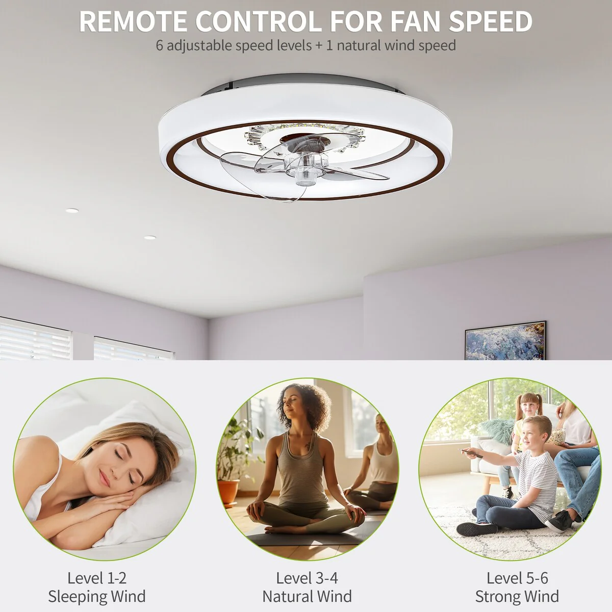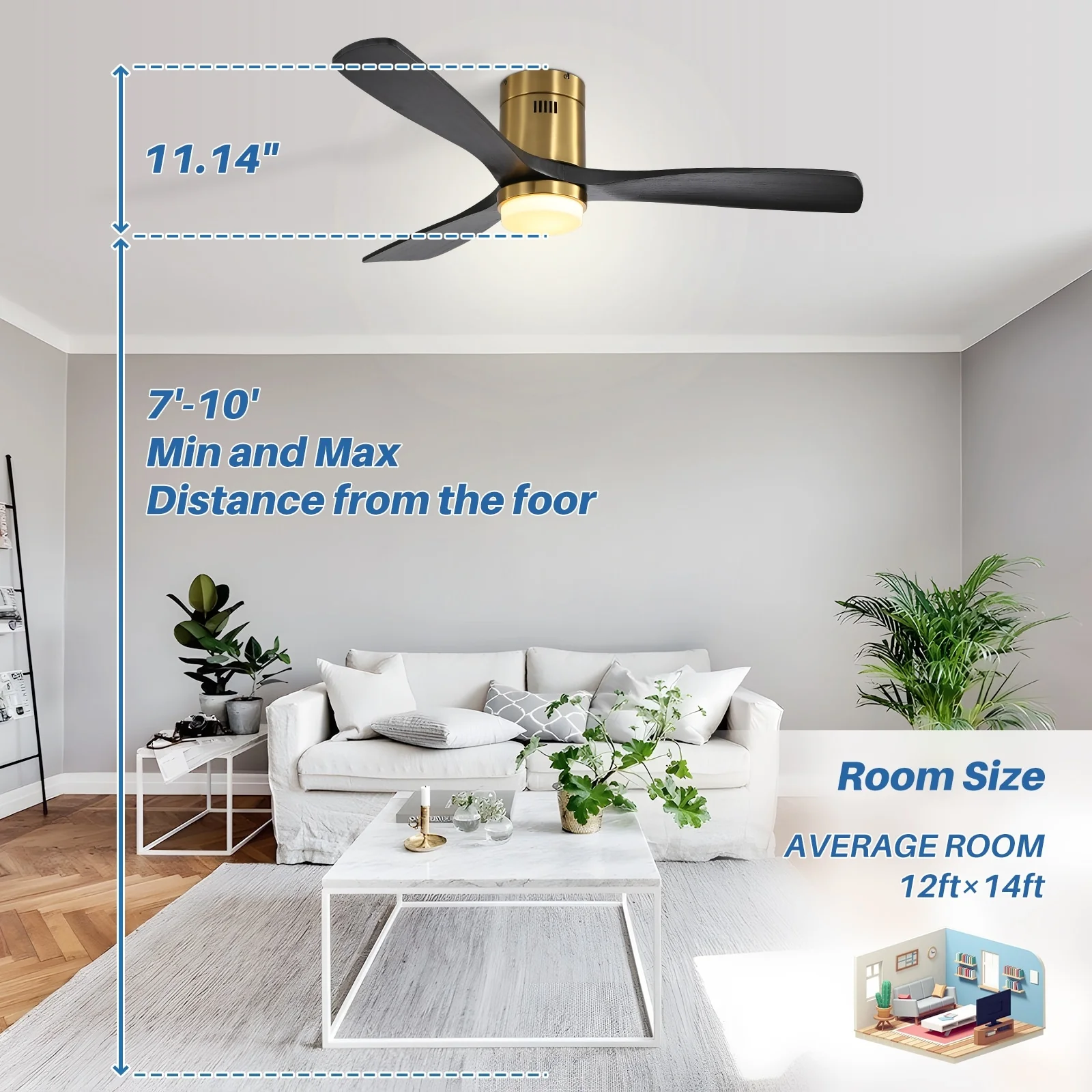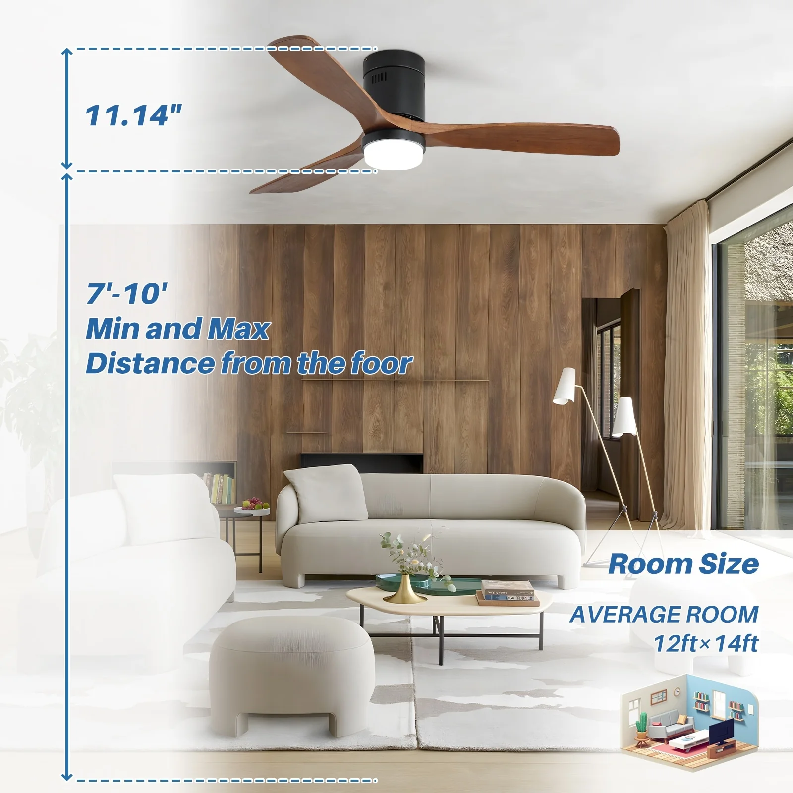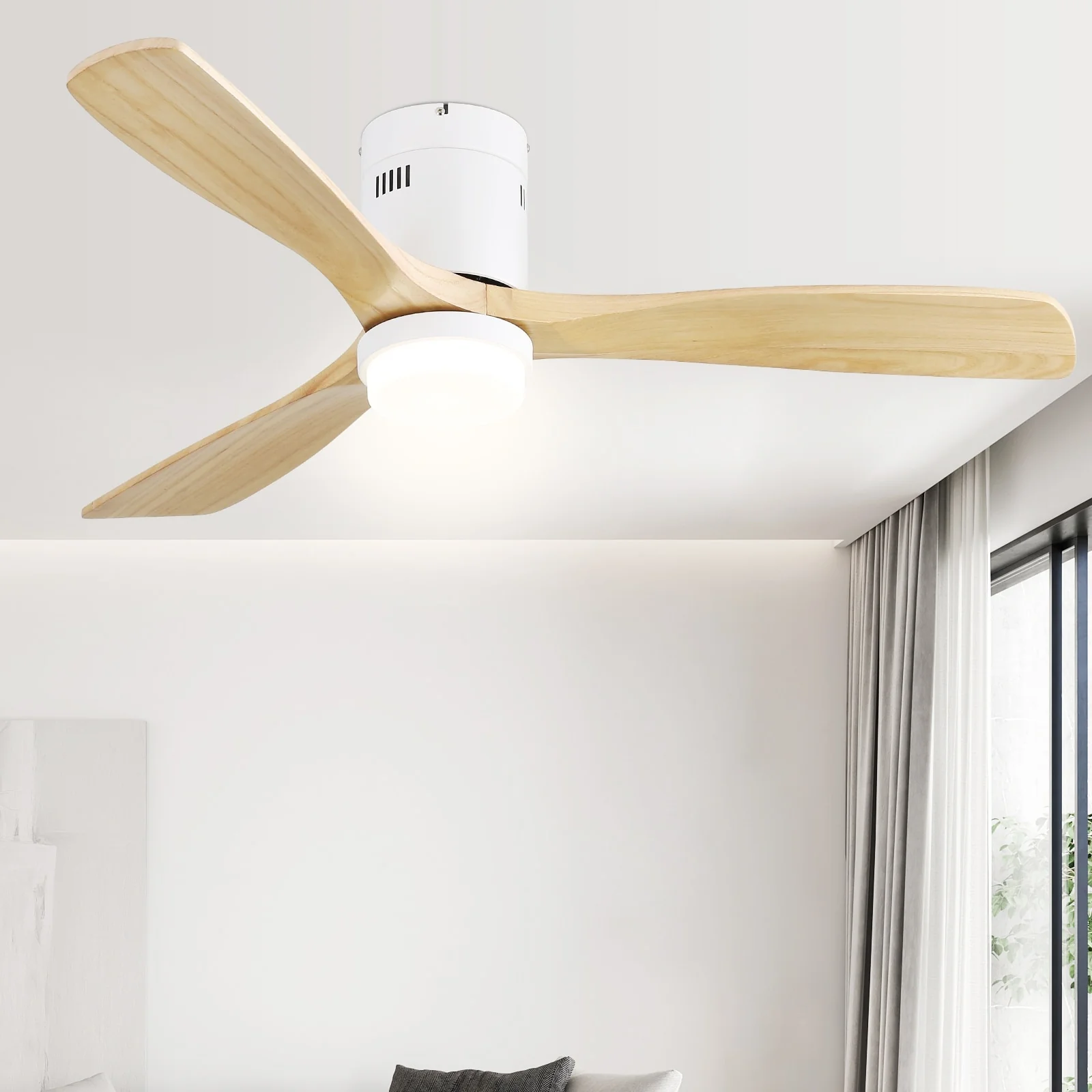 52 Inch Flush Mount Ceiling Fan With/without Light and Remote Modern Ceiling Fan Bedroom