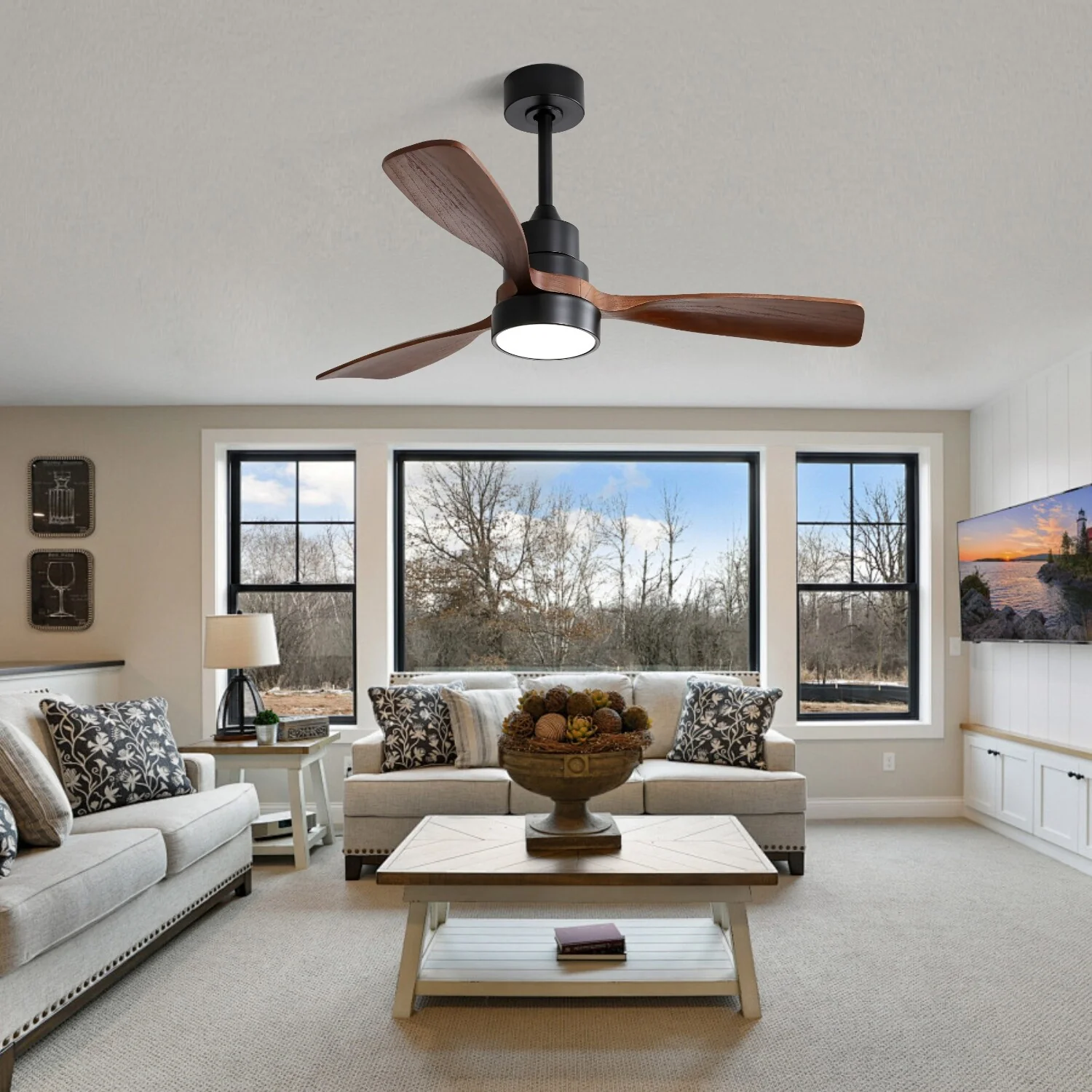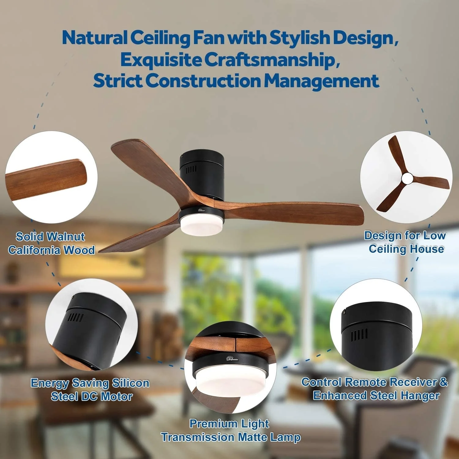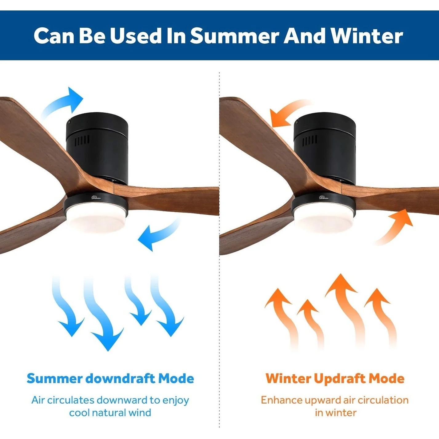 60 Inch Solid Wood Ceiling Fan with Light and Remote, Reverse Functions, Integrated Light Optional
