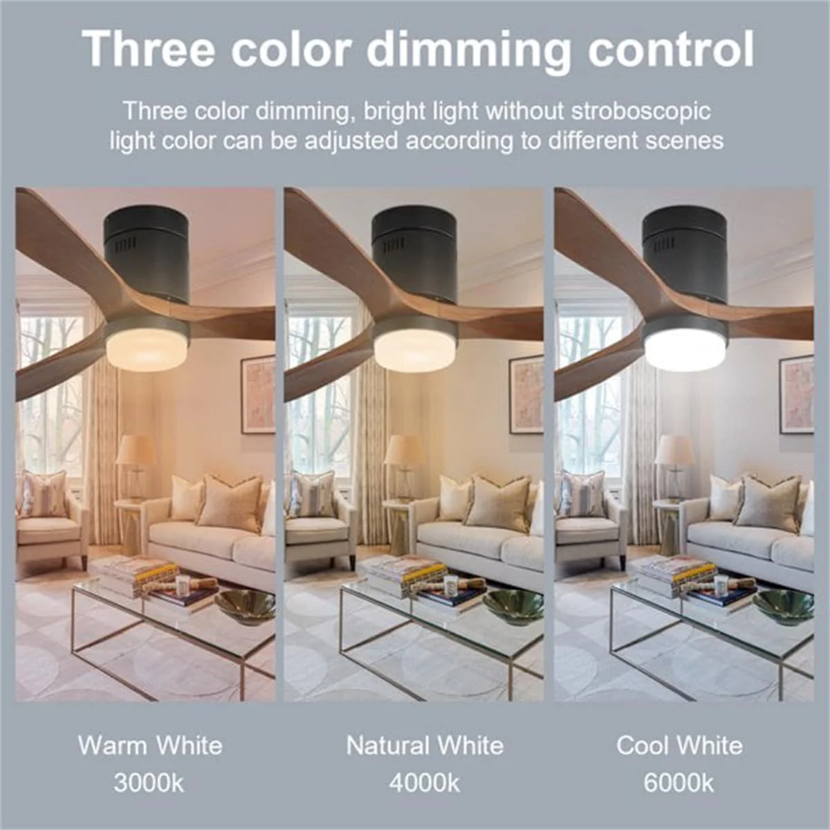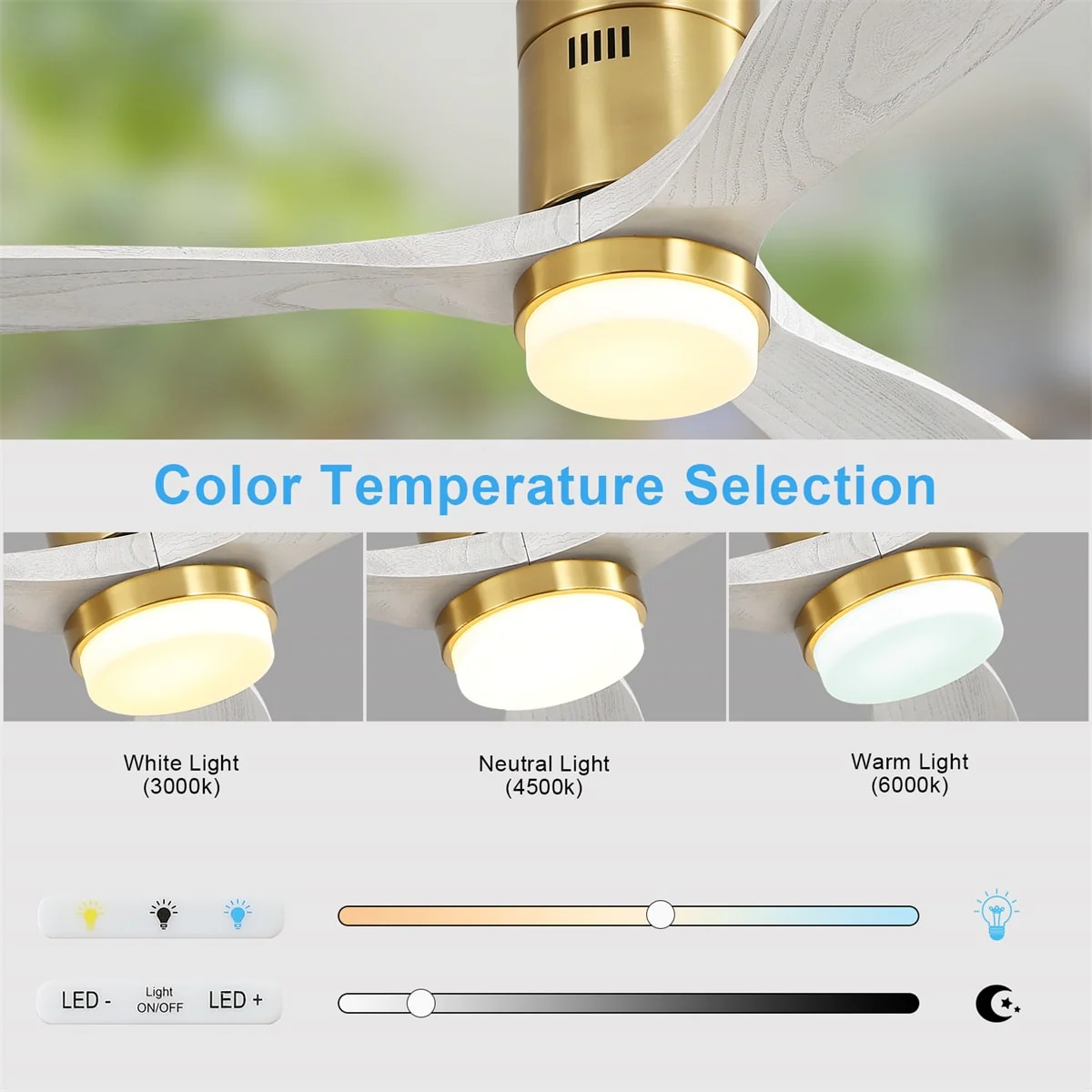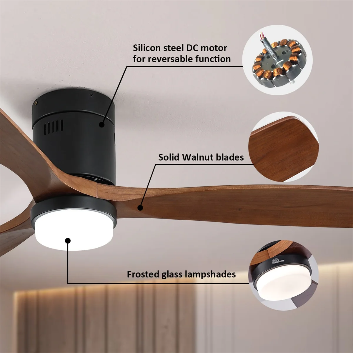 60 Inch Solid Wood Ceiling Fan with Light and Remote, Reverse Functions, Integrated Light Optional