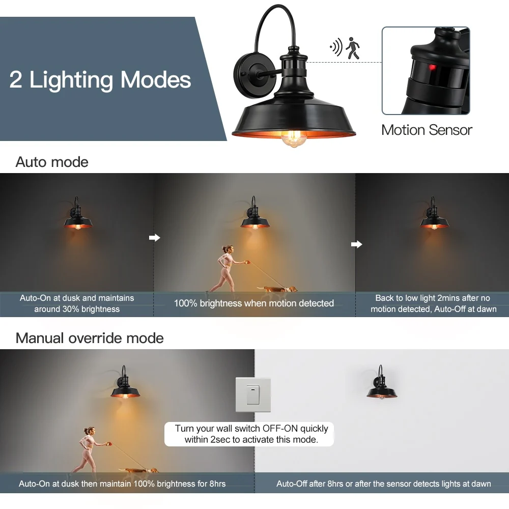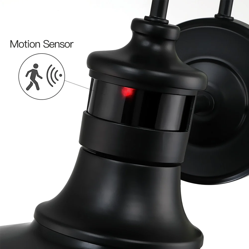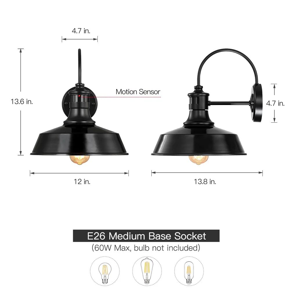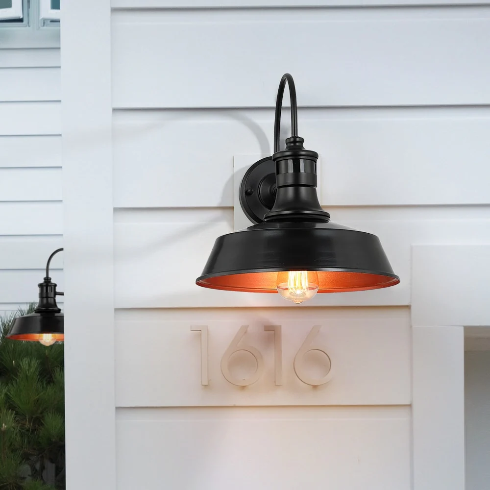1-Light Black Motion Sensor Outdoor Wall Sconce Barn Light - 12-in W