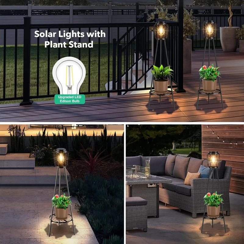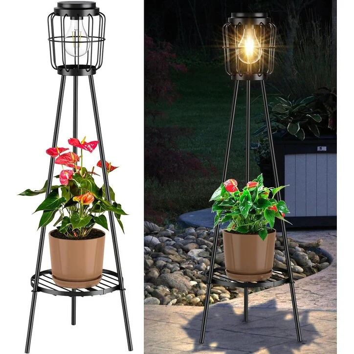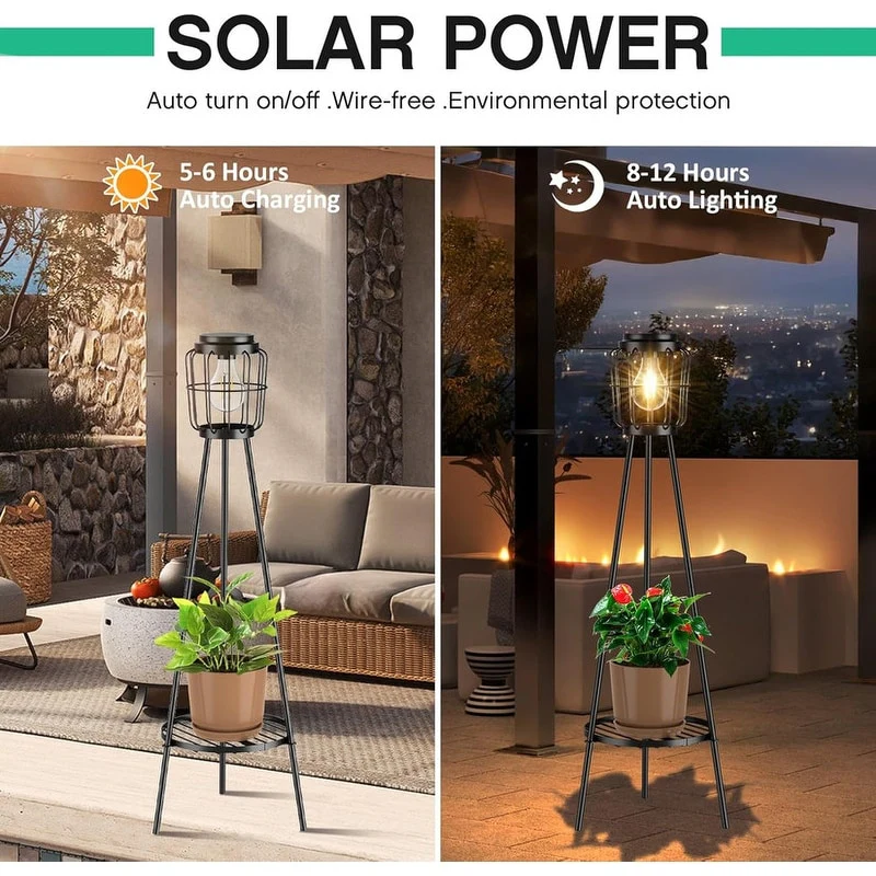2 Pack Solar Lights with Plant Stand, Outdoor Floor Lamps