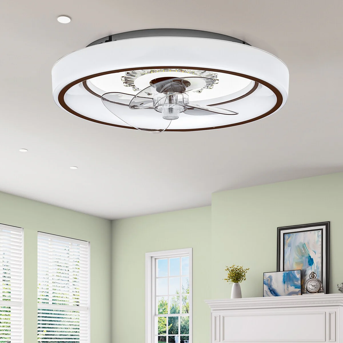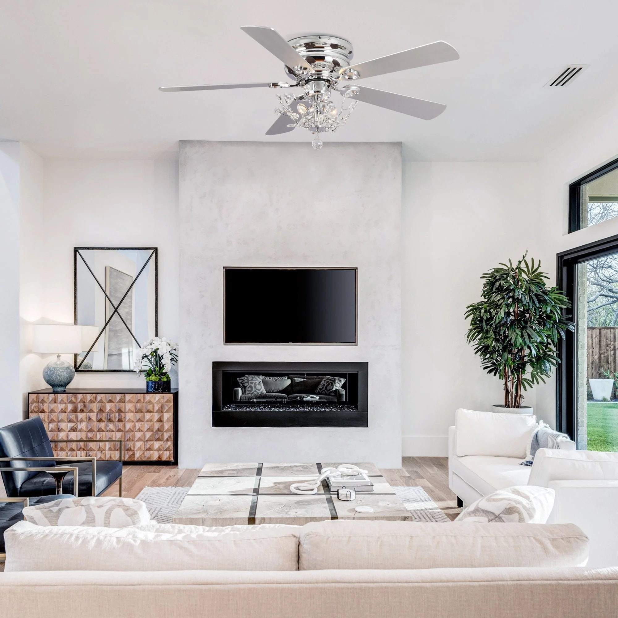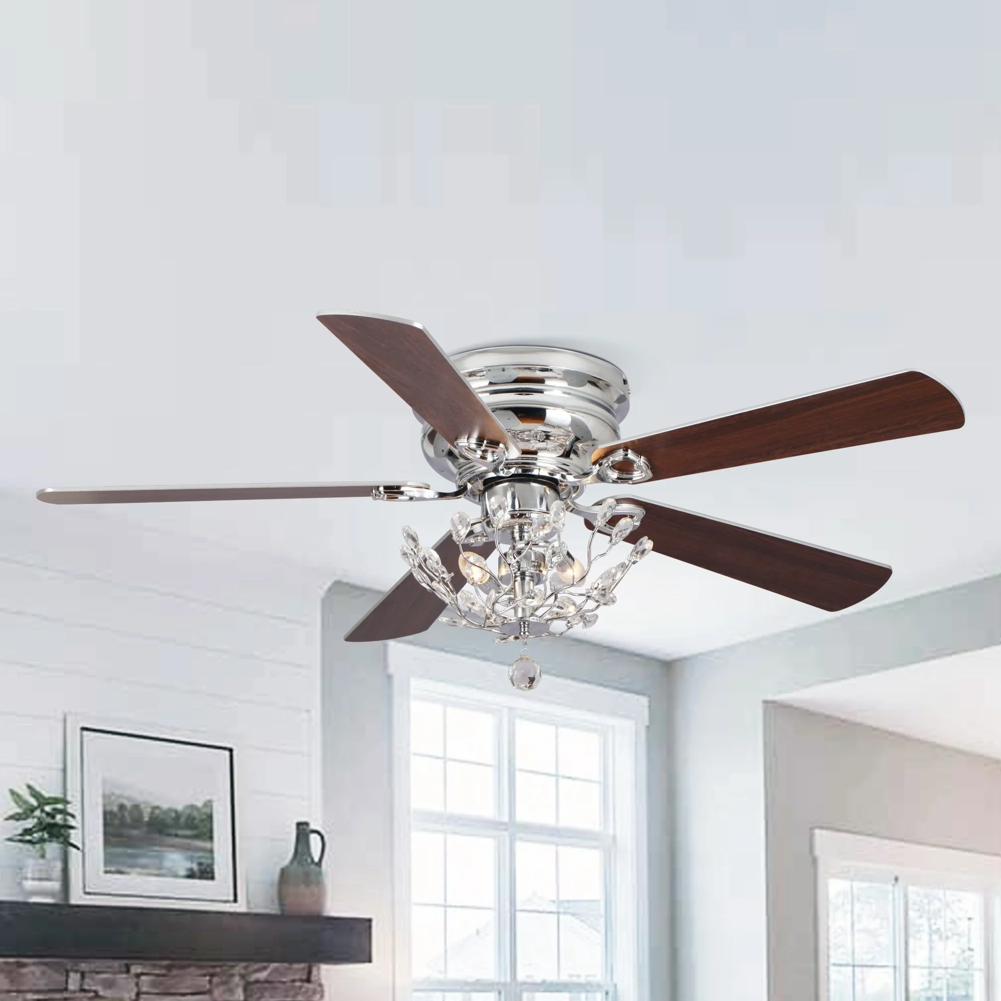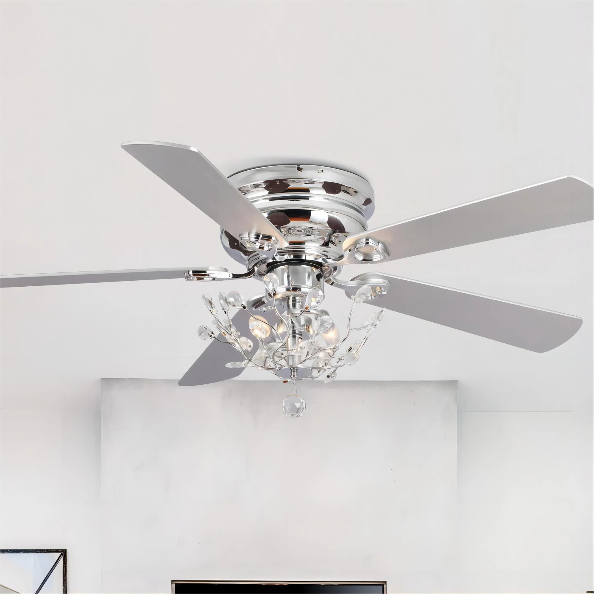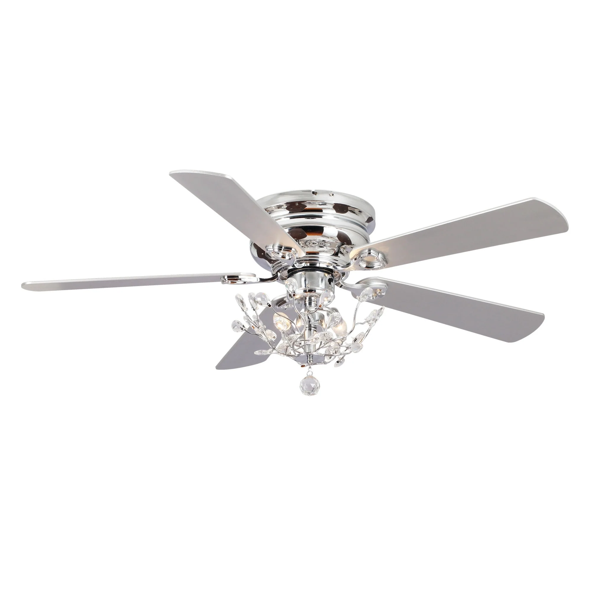 48" Modern Reversible 5-Blade Crystal Flush Mount Ceiling Fan with Remote