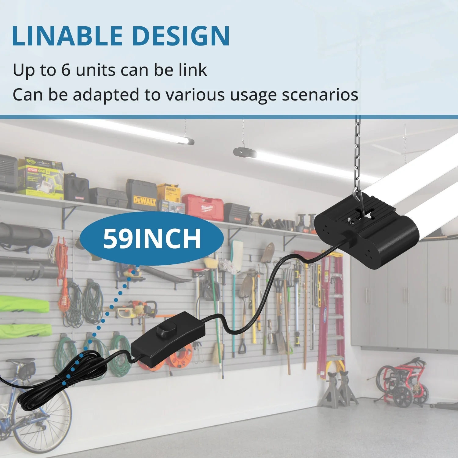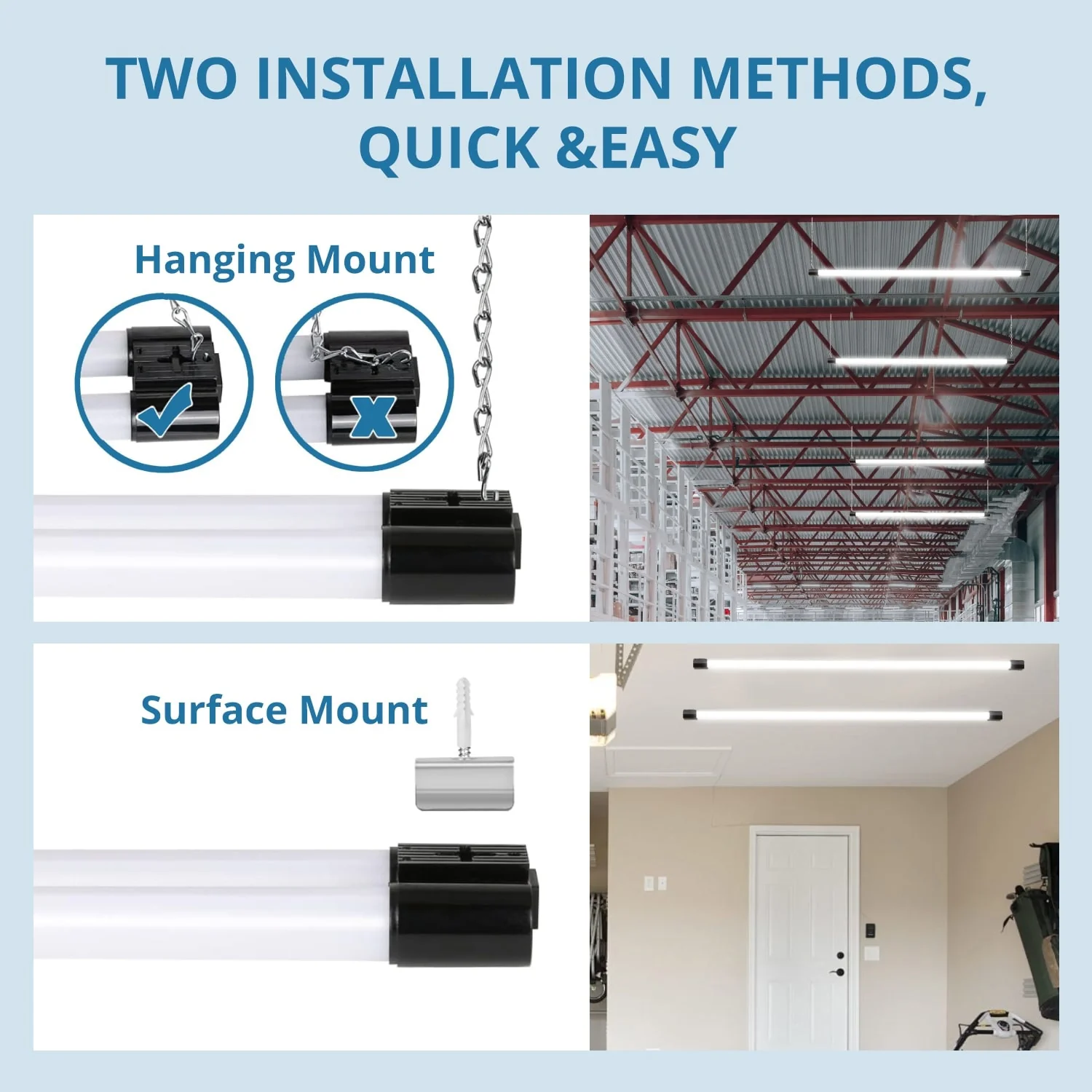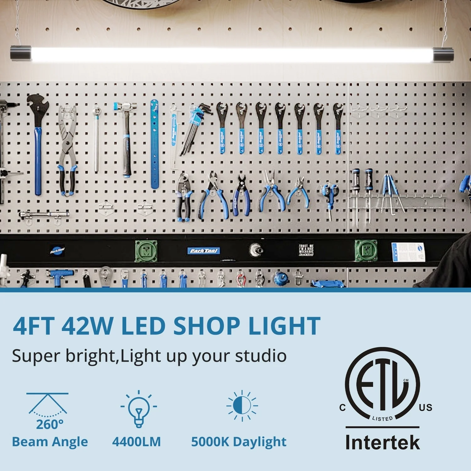4 Pack Linkable LED Shop Light, 4FT 42W [250W Equivalent], 4400lm, 5000K Daylight, Utility Light Fixture, Hanging Surface Mount