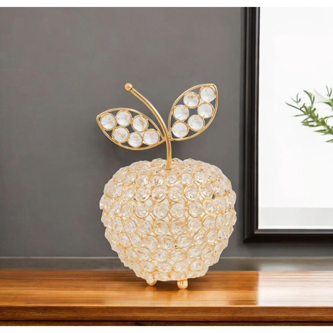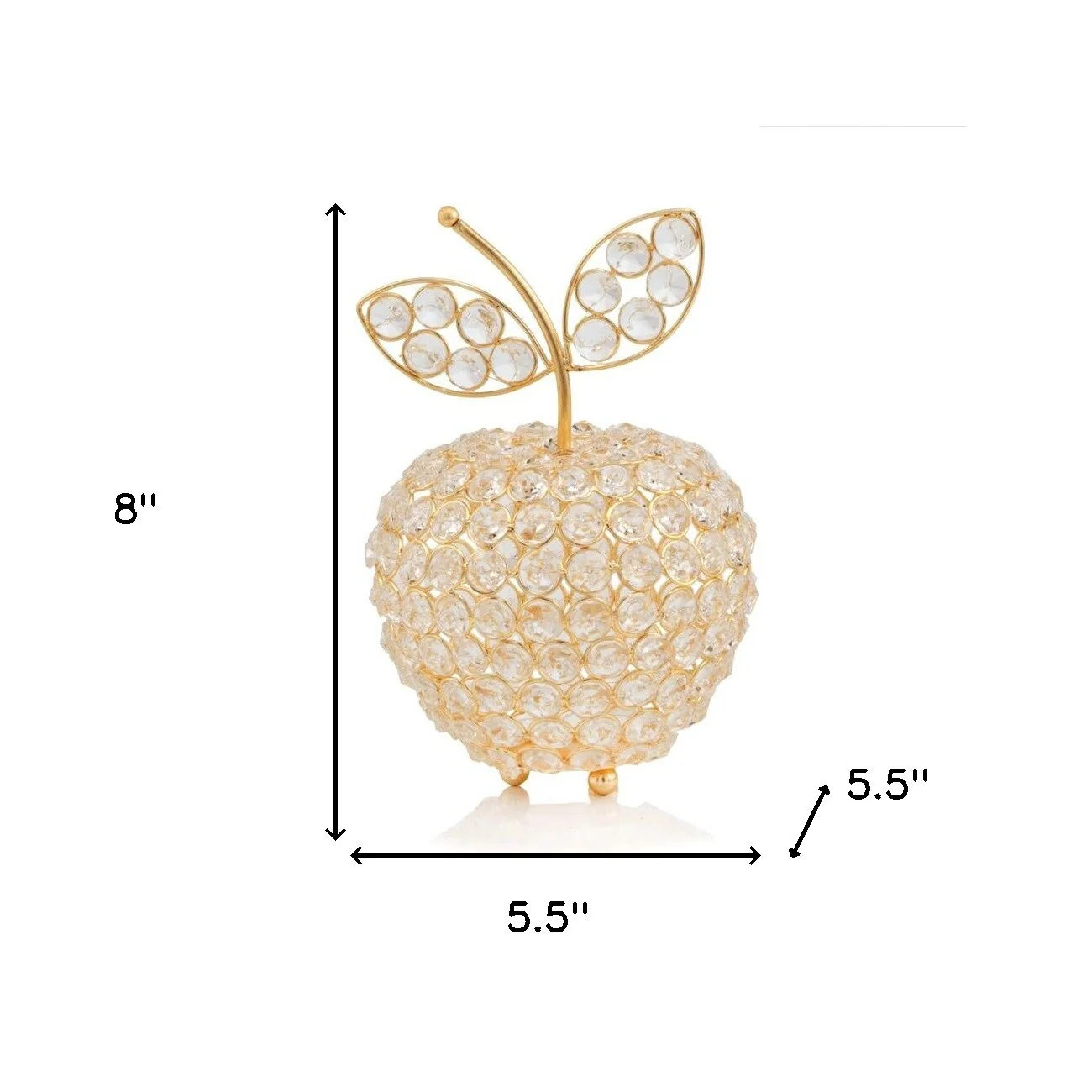 HomeRoots 8" Gold and Clear Faux Crystal and Aluminum Decorative Apple - 8 x 5.5 x 5.5