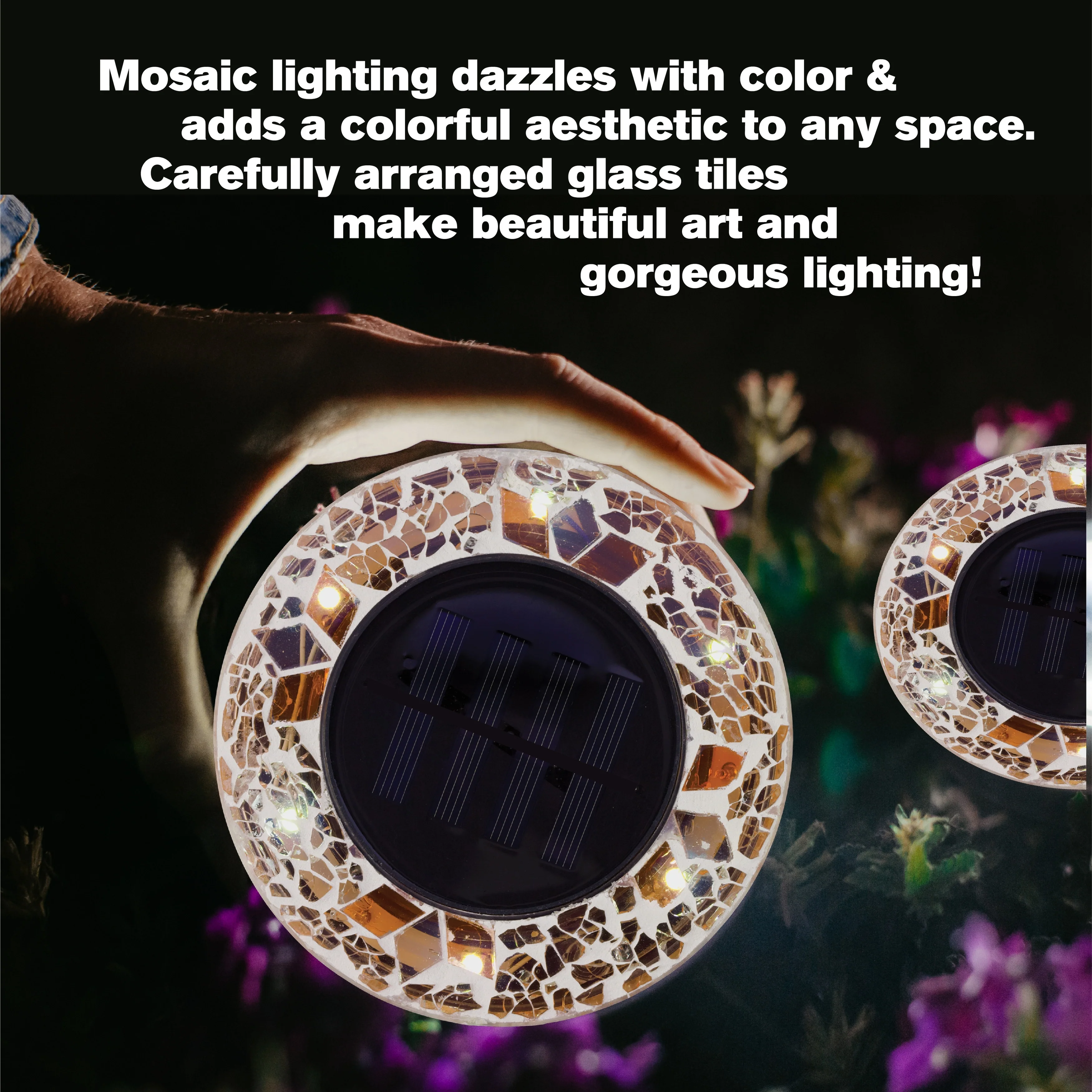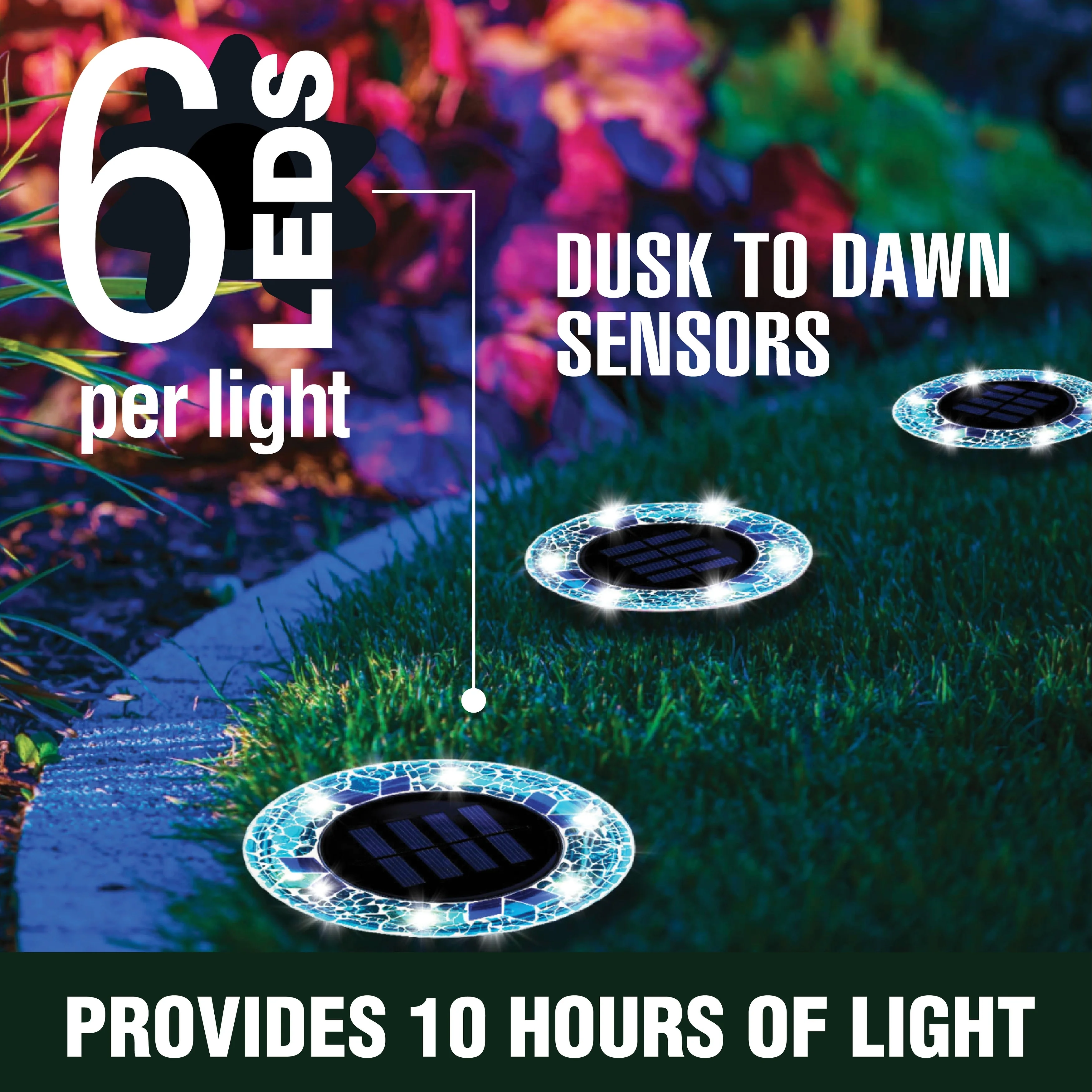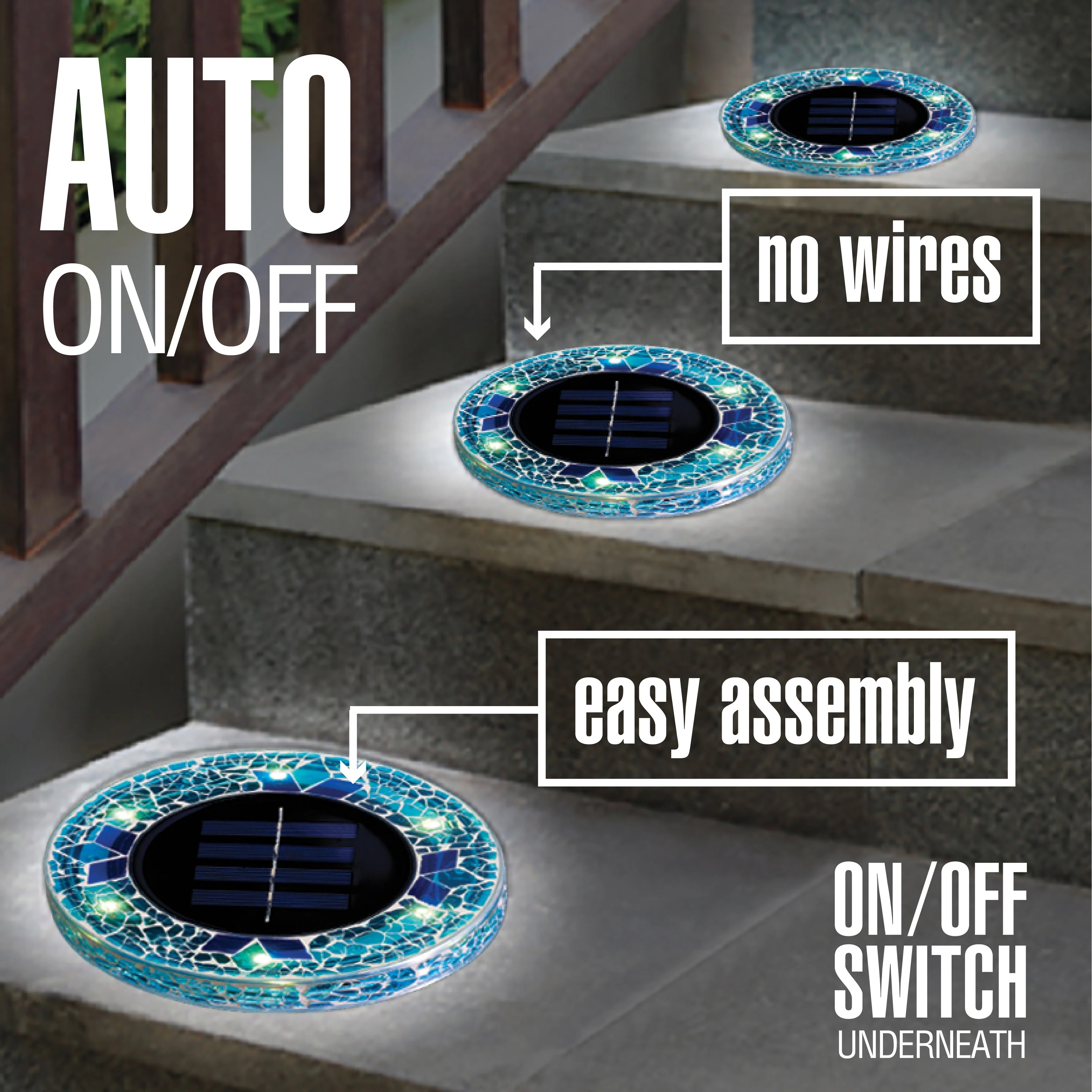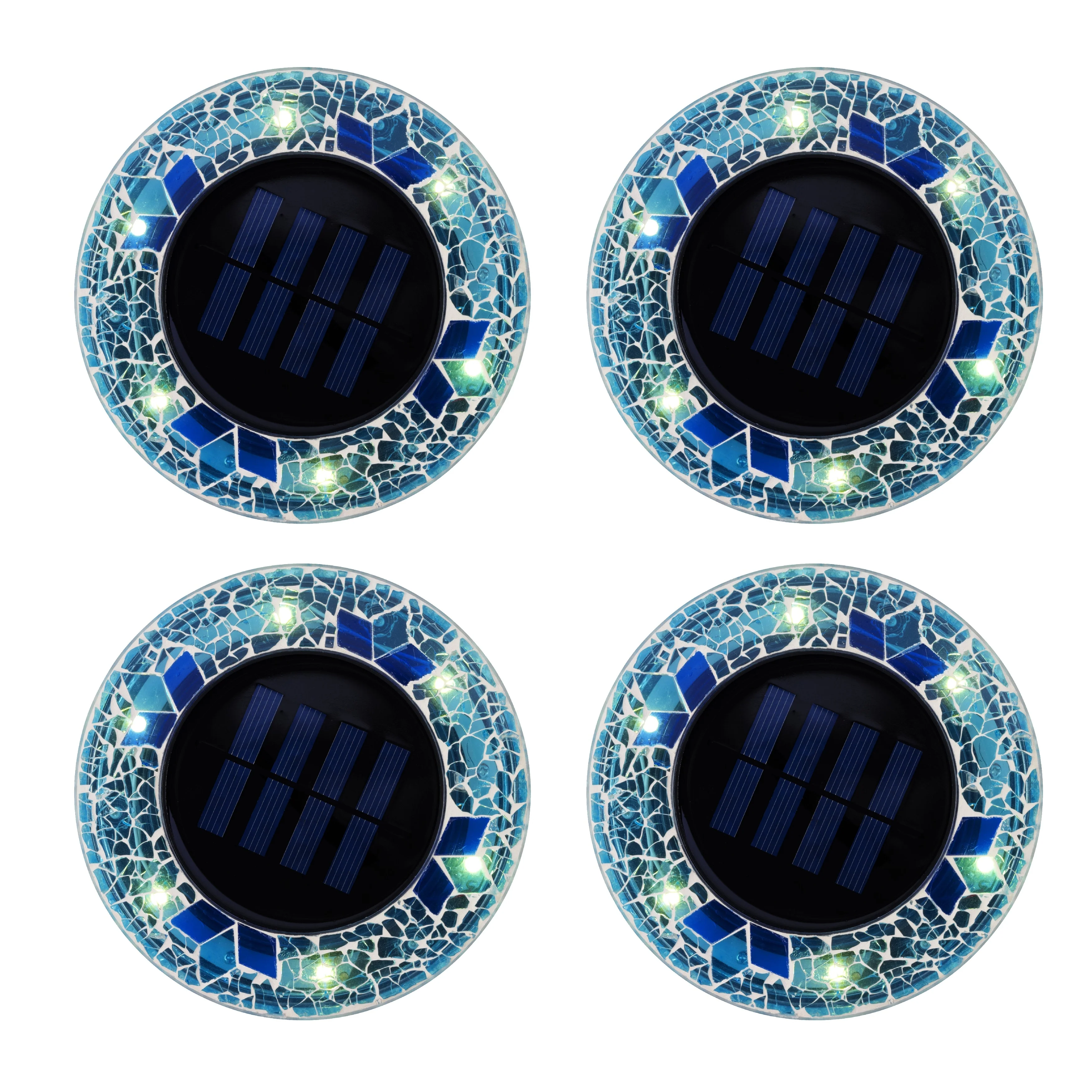 Bell + Howell 6 LED Round Blue Mosaic Solar Powered Disk Lights with Auto On/Off - 4 Pack