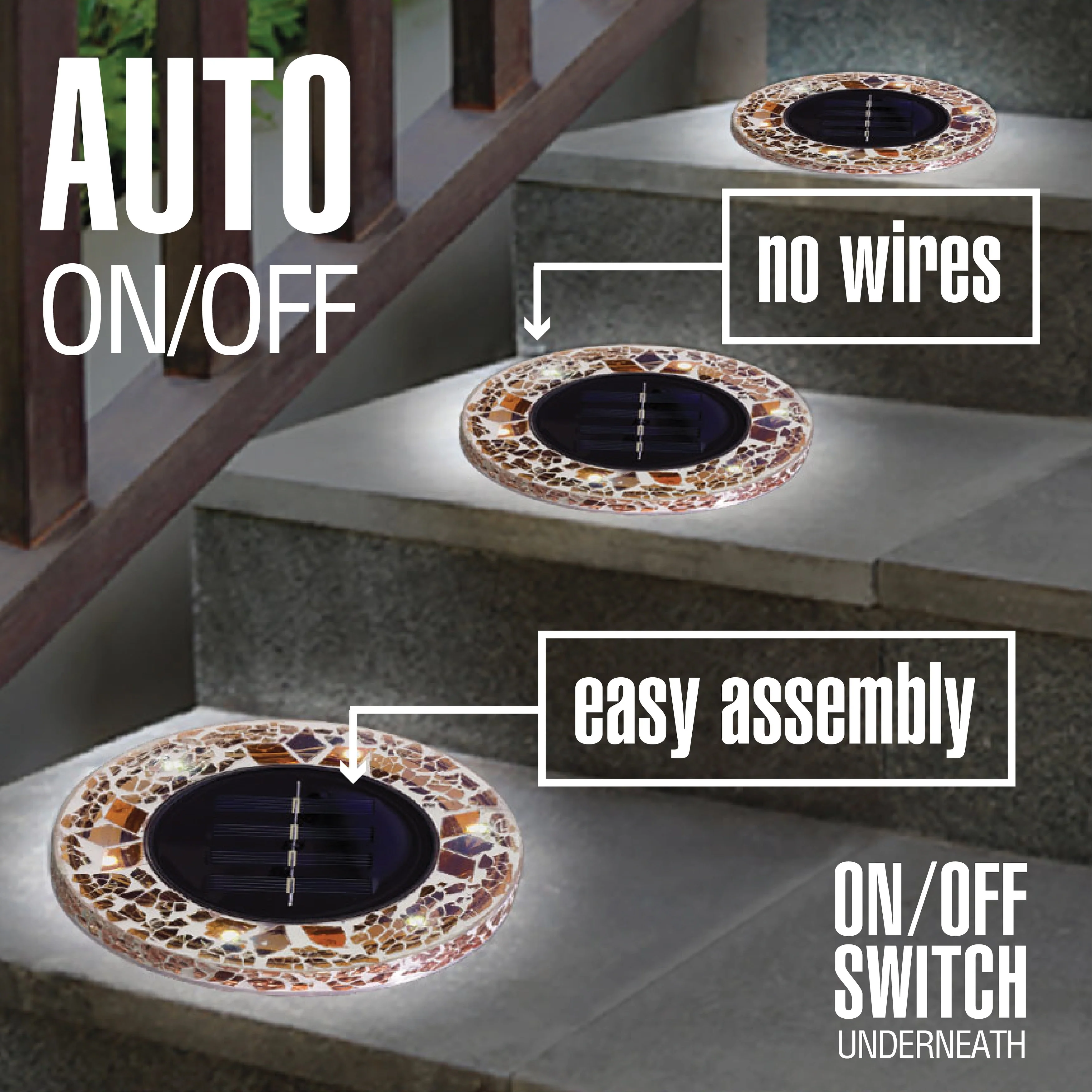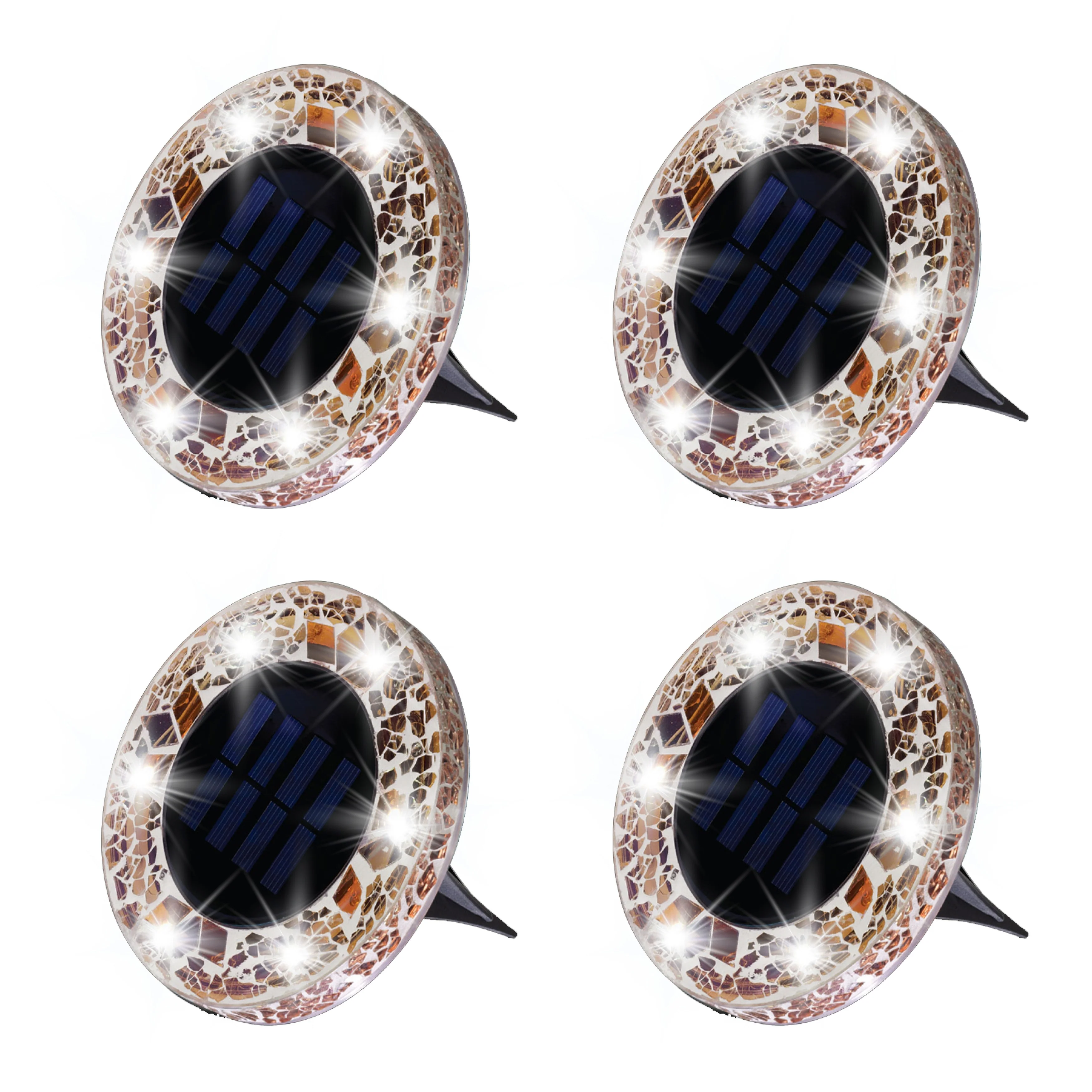 Bell + Howell 6 LED Round Tan Mosaic Solar Powered Disk Lights with Auto On/Off - 4 Pack - Brown
