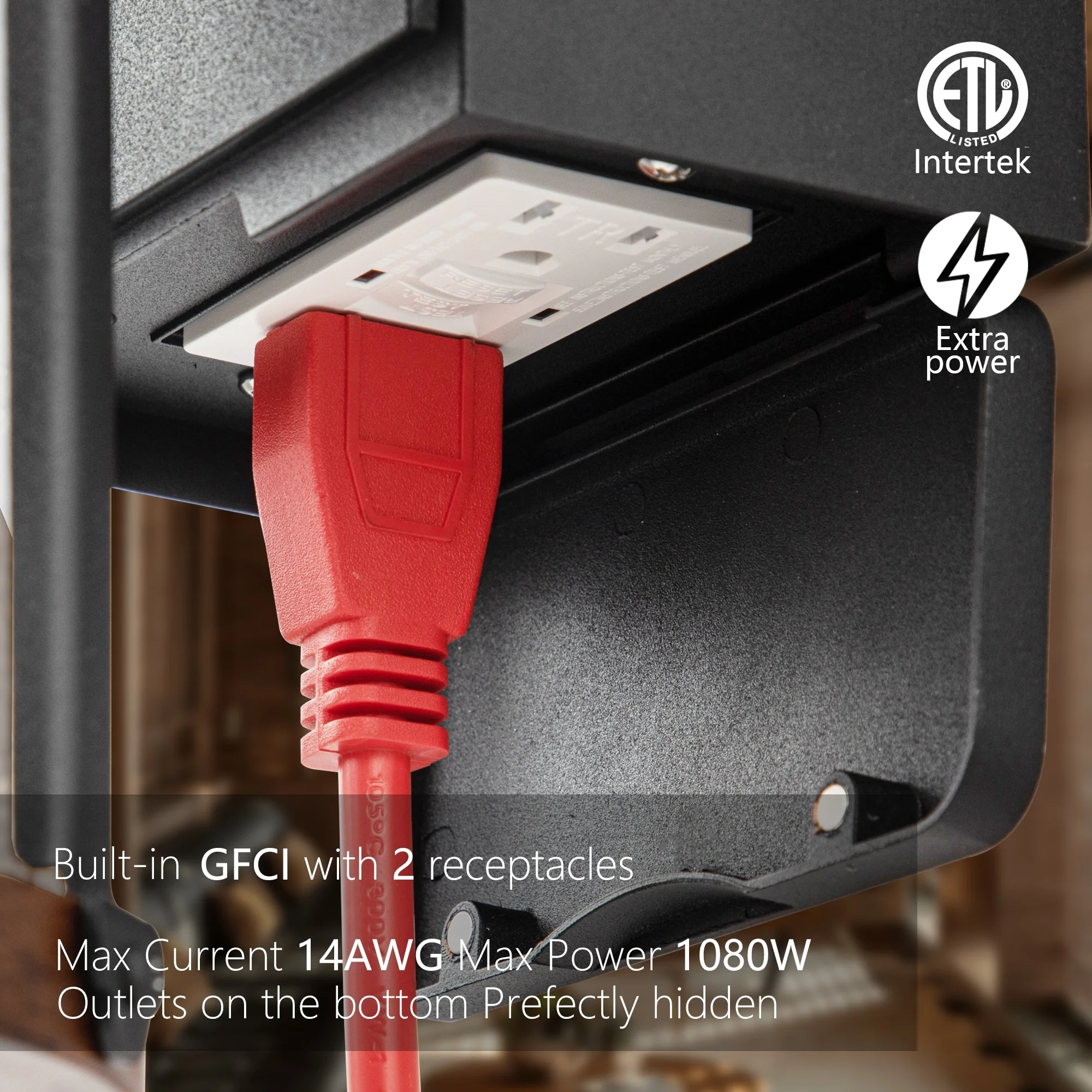 Bronze outdoor wall light with GFCI outlet