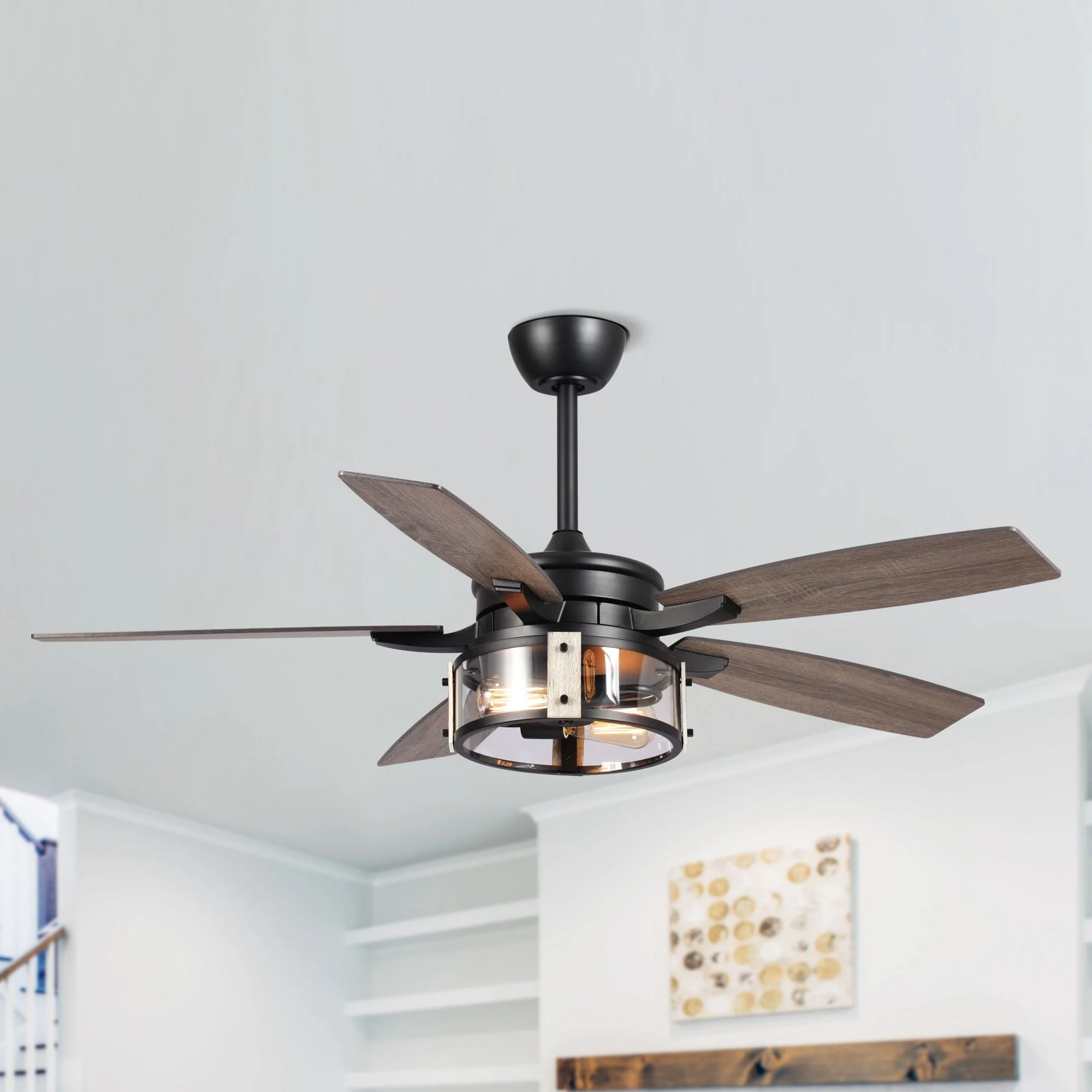52" Rustic Black Wood 5-Blade Indoor Ceiling Fan with Remote